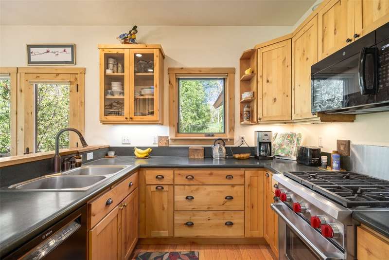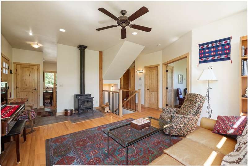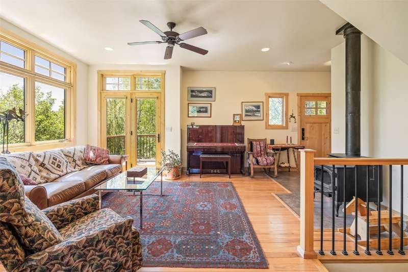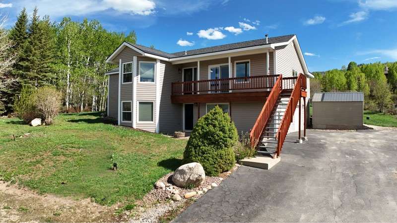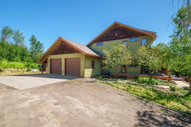 Discover the epitome of mountain living in the Eagles Watch neighborhood of Stagecoach in a secluded setting on 1.22 acres. Here you will find a thoughtfully designed home that offers not only the convenience of main level living but the intrinsic benefits of the privacy offered by a multi level home. The main floor not only features a bedroom, a 3/4 bathroom and laundry but also a mudroom as a transition from the large 2 car garage. Enjoy the bright and sunny living room with a wood burning stove and large windows that frame the beauty of the outdoors. In the kitchen find custom alder cabinets with antique handles, a wolf range, a 2 seat bar, and a cozy dining area. Upstairs find the primary suite, another bedroom, a full bathroom as well as a studio space that boasts gorgeous mountain views and its own deck.The garden level has its own exterior access, in floor heating, and can be converted into an apartment and locked off from the rest of the home. A spacious deck wraps around the front of the home. There is storage space above the garage, under eave storage on both sides of the upstairs loft, and outdoor covered storage on the south side of the home. Recent additions to the home include a new patio with a fire pit added in 2023, a sandstone pathway in 2024 and expanded parking off the side of the driveway and in the back of the home for snowmobile, raft trailers, or large vehicles. While in a rural setting this home benefits from city conveniences such as Morrison Creek Water and Sanitation services, and Luminate High Speed Internet. Located near Stagecoach Reservoir, with a 20 minute commute to Steamboat Springs and approximately an hour from the I-70 corridor/Vail Valley this home will serve well as either a primary or vacation home. SELLER OFFERING $20K CREDIT FOR RATE BUY DOWN!