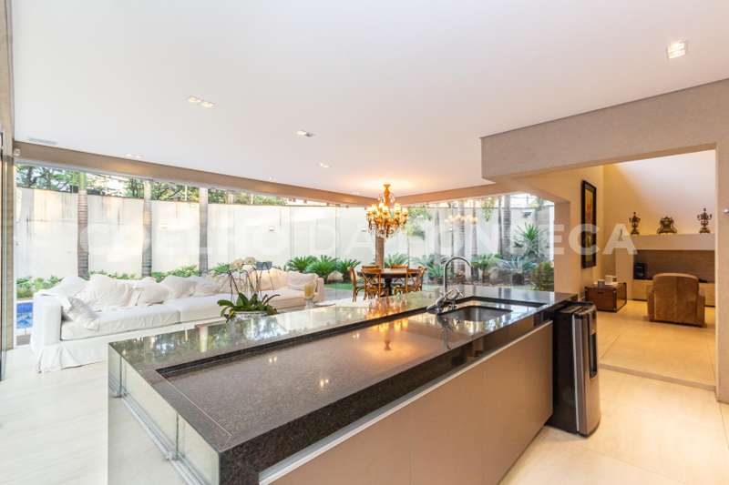 Para o lazer, a casa oferece uma deslumbrante área gourmet envidraçada, ideal tanto para momentos de descanso quanto para celebrações. O espaço conta ainda com um gazebo, academia equipada e uma piscina climatizada, garantindo o máximo de conforto.