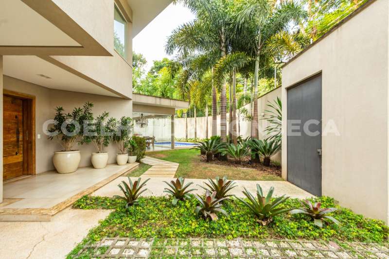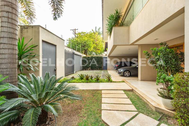 O paisagismo envolvente emoldura toda a residência, harmonizando perfeitamente as áreas internas e externas.