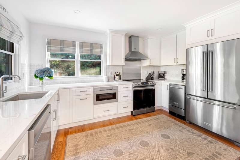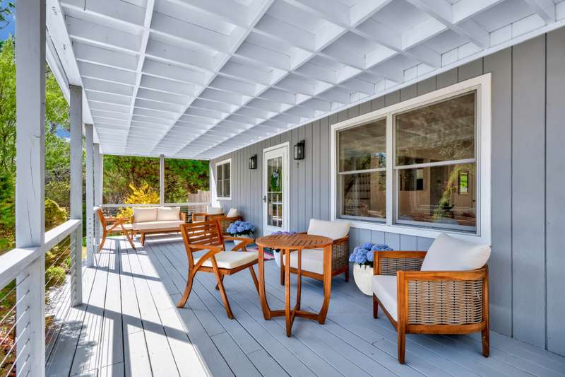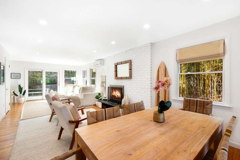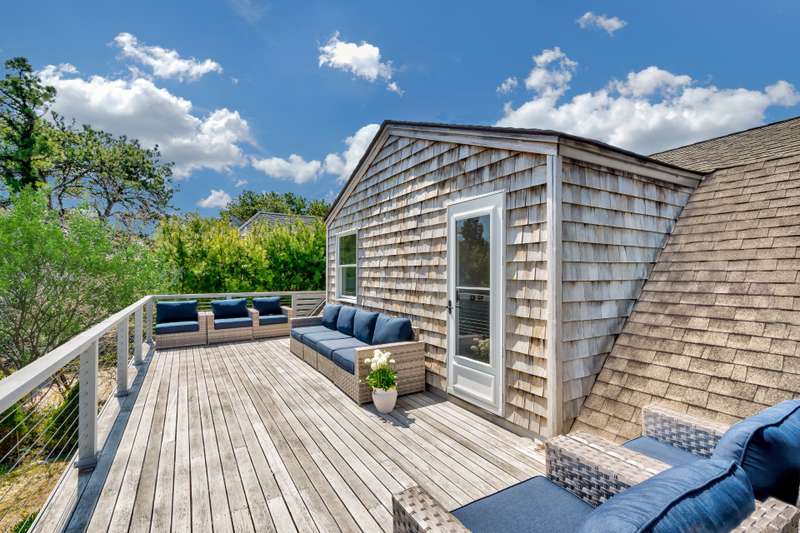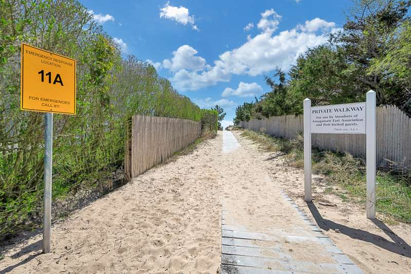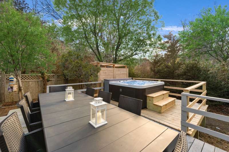 RR#: 24-156. *New 2025 hot tub and outdoor shower* Nestled in the Dunes that surround and continue to inspire its design, this newly reconstructed, classic Amagansett beach house has been beautifully restored and updated. The finest conveniences and comforts have been masterfully blended with the timeless style and vibe of this celebrated address and coastal community. A covered front deck sets an inviting tone with comfortable arrangements of beautiful teak furniture. The central foyer inside leads to an open living and dining area complete with designer furnishings and appointments set around a wood-burning fireplace and white brick surround. An all-new windowed kitchen showcases three walls of custom cabinets, quartz countertops and high-end appliances, including a built-in, high-capacity ice maker. The full bathroom beyond has been upgraded with designer fixtures and ceramic tiles throughout. The southwest facing primary bedroom completes the main floor and is large enough for its luxury king-sized bed. The second level features a cozy den and home office with an oversized sofa chair and desk beneath a wonderful skylight. From there, three guest bedrooms flow in ways that offer great separation and privacy. A second full bathroom has been expanded and masterfully transformed with custom fixtures, ceramic tiling, and a walk-in rain shower with bench seating. Off the front of the second level is a mahogany deck furnished with a 10-piece sectional sofa. Another deck off the back of the house extends across the main level and easily accommodates dining for eight, two loungers and a grill. A brick patio on the side of the house leads to an enclosed outdoor shower. A brand new hot-tub featuring ergonomically designed seats and massage jets is set alongside the deck and outdoor shower. There is also a 2-person hammock, an outdoor smokeless wood burning fire pit and a basketball goal. Located about 1000'+/- to the private ocean beach access point and only moments away from the village, this is a dream escape to the best of the Hamptons. Now available for monthly and two-week options during peak season 2026!
