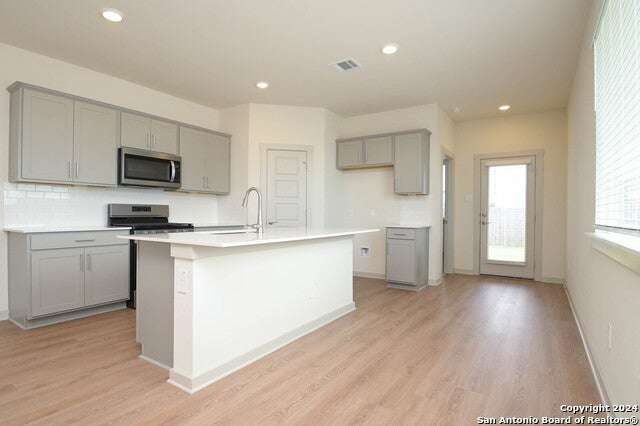 This Traditional home in Millbrook Park at 1530 sq. ft. of living area is a 3 bedroom, 2 bathroom, with a 2 car garage, single story home. As you enter the foyer you walk into the spacious family room open to the kitchen and dining area. The kitchen features Quartz countertops, decorative tile backsplash, black and stainless Microwave and Gas Stove and a kitchen island. The secondary bedrooms are located off the dining area. The private Master Bedroom is located off the kitchen and includes a huge walk-in closet and a walk-in shower. This home also features a covered patio and full sod and irrigation system and is also fully fenced. There will only be one neighbor to the left side of the home, since it is on a corner lot and a walk trail by the back side of the home.