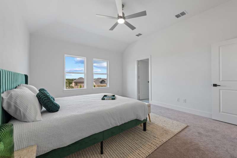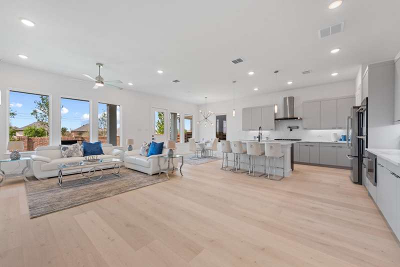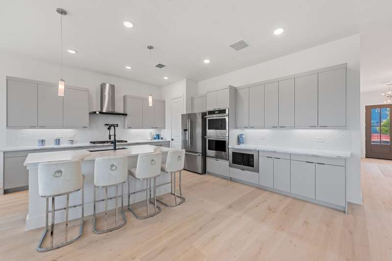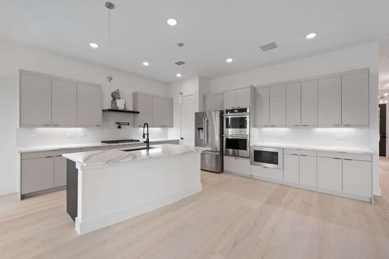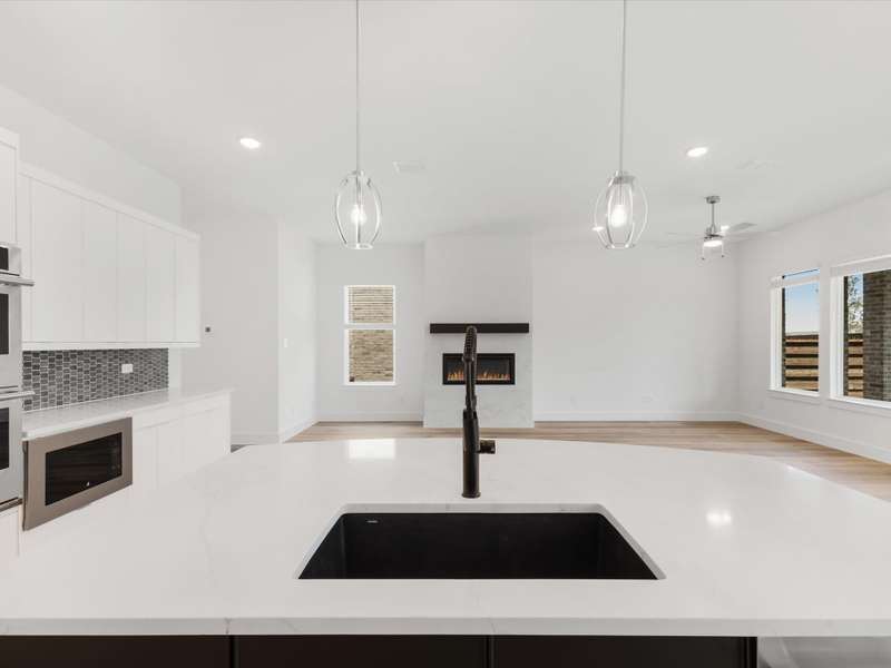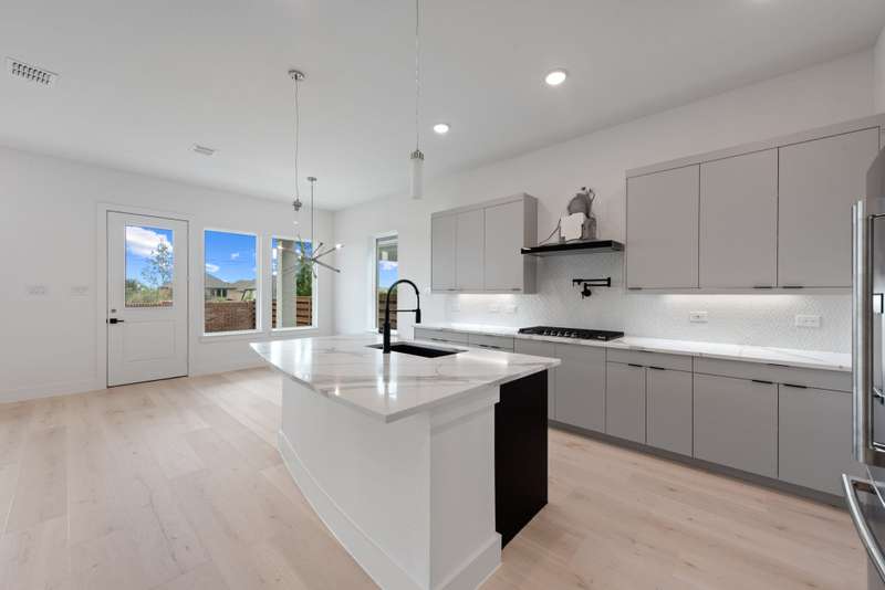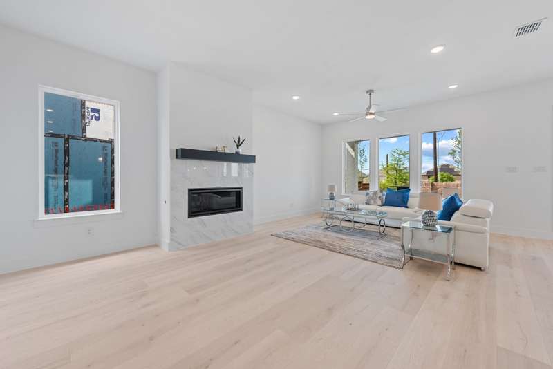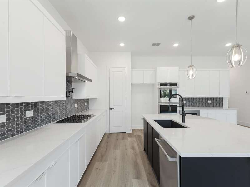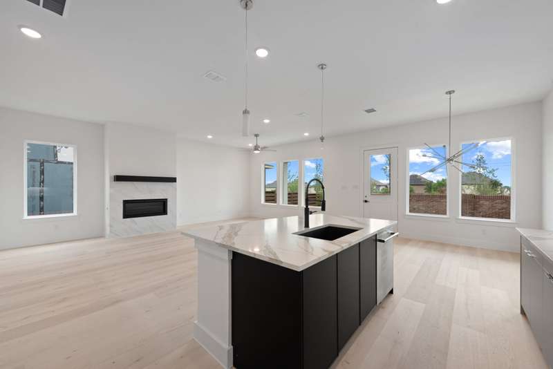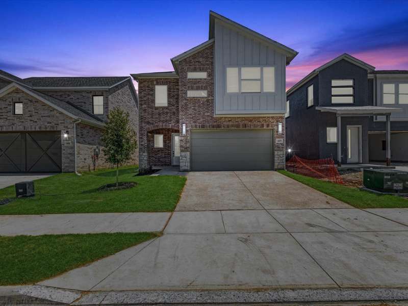 Ready Now! Feel like a Royal in our Elizabeth plan. Step into the epitome of modern living with this brand-new Monarch Home, where architectural sophistication blends seamlessly with everyday comfort. This 5-bedroom, 4.5-bath masterpiece includes a spacious game room and a functional pocket office, offering versatility for both entertainment and work-from-home lifestyles. Designed for discerning tastes, the home boasts premium finishes throughout. The Chef-Inspired Kitchen is outfitted with a JennAir appliance package, including double ovens and a 5-burner gas cooktop, making it a culinary dream. Enjoy the elegant touch of quartz countertops, a pot filler, Blanco Silgranit sink, and soft-close cabinetry with upgraded hardware. A decorative backsplash adds a sleek, modern flair. Gather around the crystal-accented gas fireplace under the ambient glow of luxury Kichler lighting. The Karastan Cultivated wood flooring in common areas downstairs, combined with 8-foot doors and 12x24 sleek tile accents, creates a clean and contemporary vibe. The Resort-Worthy Primary Suite has a luxurious primary bath featuring floating cabinets, a large frameless glass shower, decorative tiles, framed mirrors, and quartz countertops with undermount sinks. Enjoy effortless indoor-outdoor flow with a large covered patioperfect for entertaining, relaxing evenings, or weekend barbecues, rain or shine.Enjoy gridless modern windows that provide unobstructed views and flood the home with natural light. The community is in fabulous location near an abundance of shopping, dining, entertainment, just minutes from PGA. Located within the highly acclaimed Frisco Independent School District, this home ensures top-tier education in a thriving community. Every detail in this Monarch Home reflects a commitment to excellence and precision craftsmanship, promising a lifestyle of comfort, elegance, and modern flair.