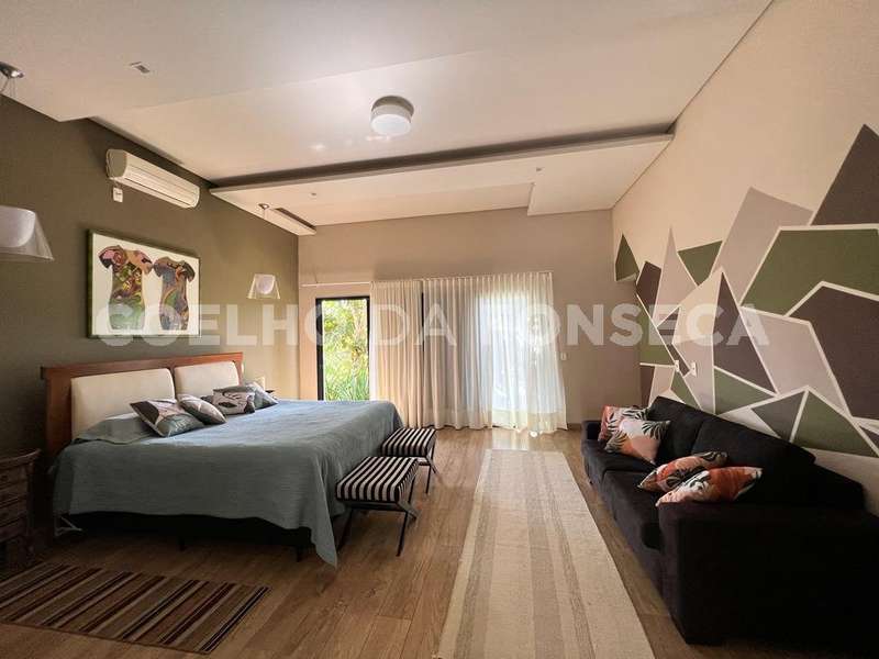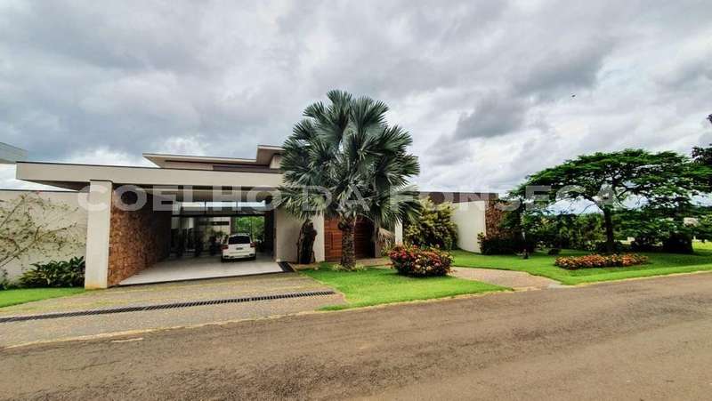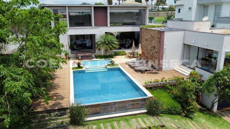 Conjunto residencial exclusivo, 3 lagos artificiais, instalações para eventos, piscina, quadras de tênis, caminhadas, poliesportivas e hípica. Casa à beira do lago, 5 suítes + externa, design sofisticado, lazer completo, cinema 105”, jogos, jardim, piscina, garagem temática