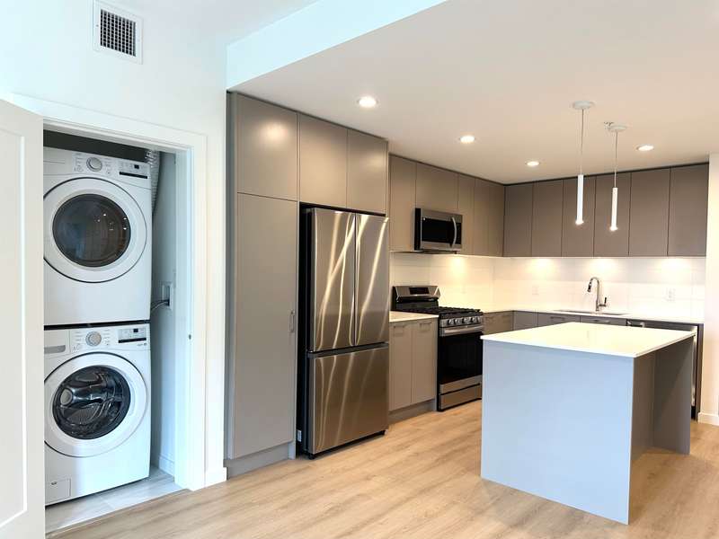 Latimer Village - this 2 bed / 2 bath plan faces west into the inner courtyard and features bedrooms on either side, each with their own walk in closets, oversized L-shaped kitchen with island, stainless steel appliances including gas range and built in pantry. Includes 2 parking and 1 storage. Walkable to all amenities and transit and move in ready!