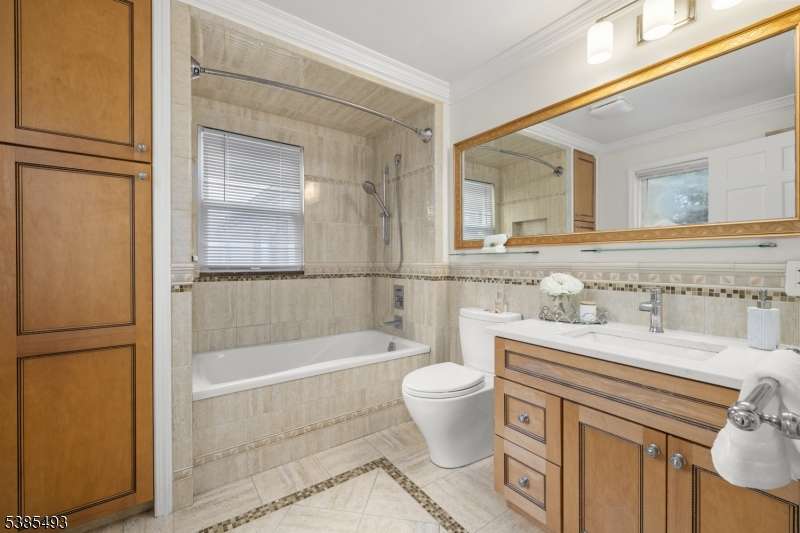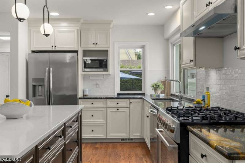 Welcome to this beautifully updated 5-bedroom Colonial, perfectly situated in Millburn's highly desirable South Mountain neighborhood. Blending timeless charm with modern convenience, this turnkey home is designed for effortless living. Step through the welcoming entry vestibule, complete with an oversized coat closet and foyer framed by French doors. The main level flows seamlessly, with open and sun-drenched living and dining areas, complemented by a cozy family room ideal for everyday gatherings. At the heart of the home, the chef's kitchen shines with a large center island, stone countertops, custom cabinetry, under-cabinet lighting, sleek finishes, and mostly new appliances. Upstairs, five spacious and versatile bedrooms provide comfort and flexibility for residents, guests, or home office needs, all served by renovated baths featuring fresh, modern design. The finished lower level adds even more living space with a bright recreation room, laundry, and ample storage. Outdoors, enjoy a private backyard retreat with newly designed patios and a level, fenced yard perfect for dining al fresco, lounging, or play. An oversized two-car garage and beautifully landscaped grounds complete the exterior. All this, in a prime location right next to the sought-after South Mountain Elementary School. Steps away from Millburn's top-rated upper schools, vibrant downtown, parks, direct train to Hoboken and NYC, and close to Newark Airport. This is more than a home, it's a lifestyle.