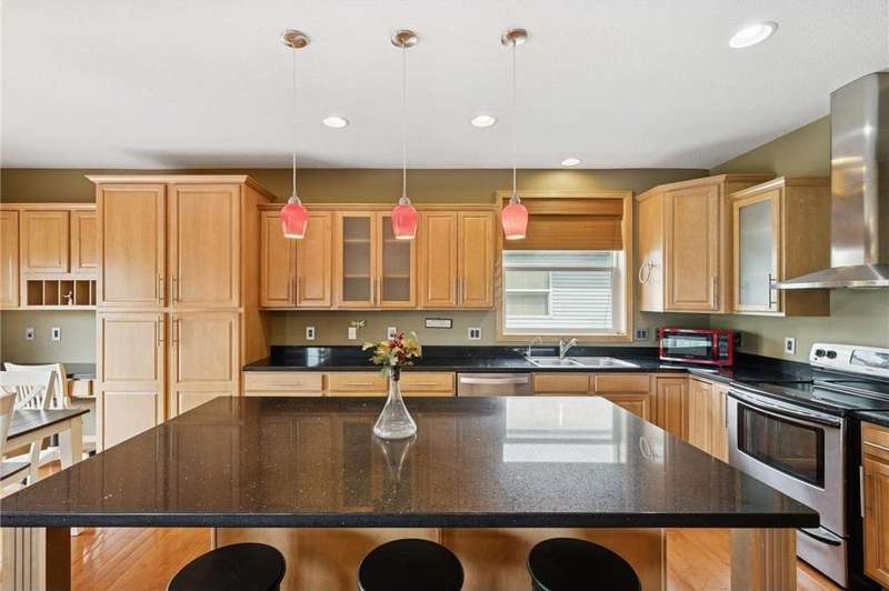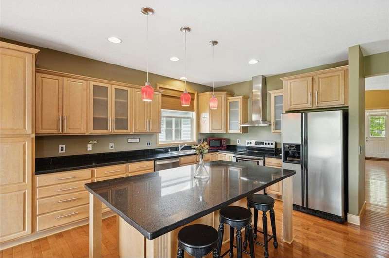 First Floor Bedroom * Reverse Osmosis Drinking Water * Deck With Pond Views * Walkout Basement * Indoor/Garage Basketball Hoop * Oversized Bedrooms. Welcome to this beautiful 4-bed, 3-bath former model home in the Garden Gate Community of Woodbury. The home offers an open-concept layout with hardwood floors, a two-story vaulted foyer, and a stylish kitchen featuring maple cabinetry, Cambria countertops and numerous built-ins throughout. The main level includes a flexible fourth bedroom. Upstairs, the owner’s suite boasts a soaking tub, extended walk-in closet, and stunning nature views. Two additional oversized bedrooms and a loft with built-in bookcases and a desk provide space for work or play. The unfinished walk-out basement offers room to grow, and the 3-car garage includes a winter-friendly basketball hoop. HOA covers lawn care, snow removal, and sanitation. Conveniently located near parks, shopping, and top-rated schools. New roof in 2023.