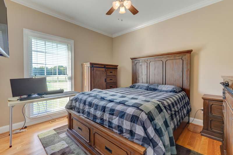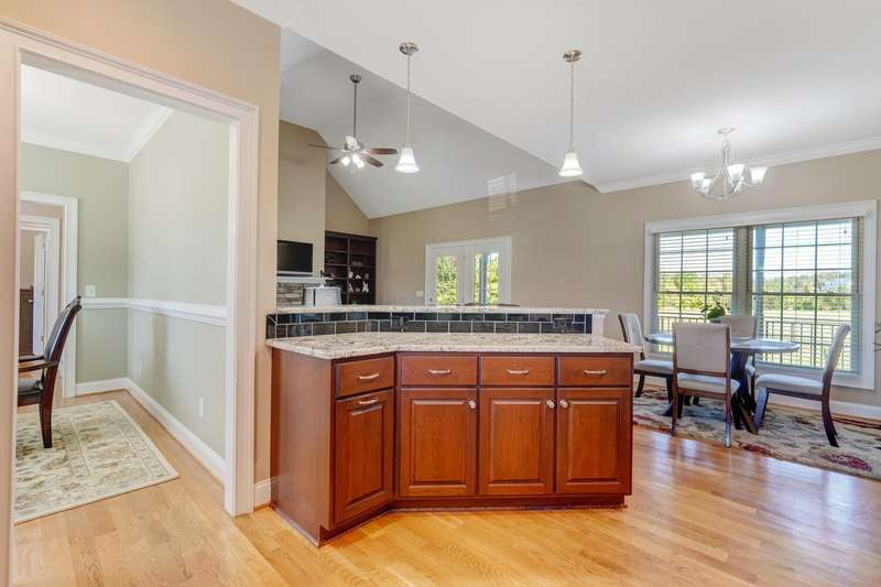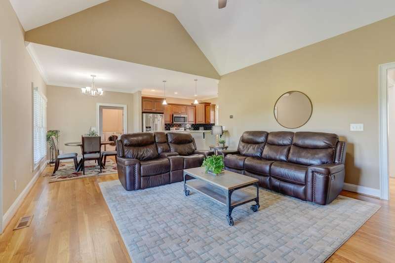 Experience the perfect blend of elegance, craftsmanship, and modern comfort in this like-new, all-brick custom home on 3.4 acres of Western Alamance County beauty. This stunning 3-bedroom, 2-bath residence welcomes you with vaulted ceilings, gleaming hardwood floors, and a warm stunning stone fireplace that anchors the open, inviting living space.The heart of the home is a chef's dream: a beautifully designed kitchen flows seamlessly into a formal dining area and bright breakfast room, perfect for everyday meals or entertaining with flair. Step outside to the expansive stamped concrete covered porch, overlooking a breathtaking backyard with a fenced area ideal for four-legged friends or for simply soaking in the peace and privacy.Added bonus: an attached 2-car garage plus a detached, custom-built garage provide plenty of space for vehicles, projects, or storage. Nestled in Sartin Shores near Lake Cammack, this home offers a tranquil retreat with room to breathe, play, and live beautifully. Every detail has been thoughtfully designed this is a home ready to welcome your next chapter.