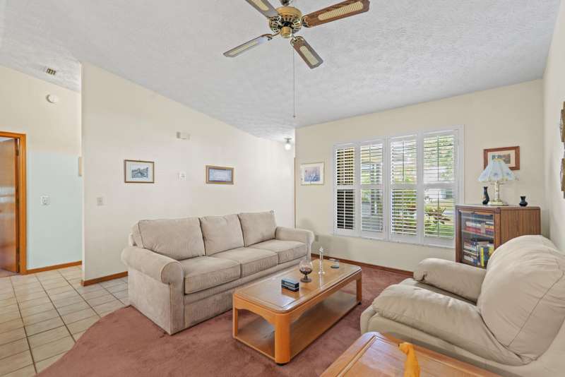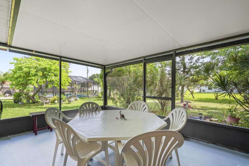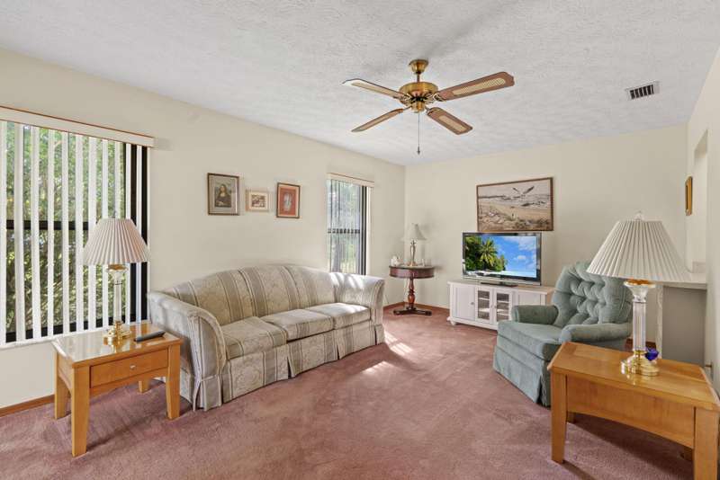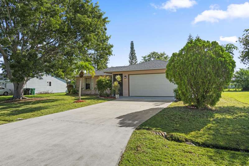 This home is clean, well-maintained, and ready for comfortable move-in. Come see this 3-bedroom, 2-bath, 2-car garage home featuring a split-bedroom layout and an open floor plan--perfect living and entertaining. Enjoy a screened patio that opens to a spacious yard, ideal for your dream pool or beautiful gardens.The home is equipped with complete accordion shutters for hurricane protection and is conveniently located just minutes from schools, the hospital, shopping, and dining. Youre also only 15 minutes from the beach and Jensen Beachs restaurants.