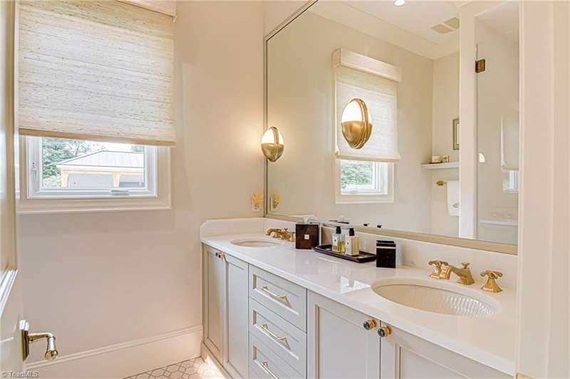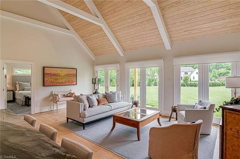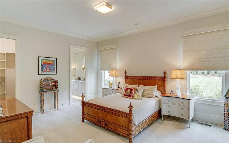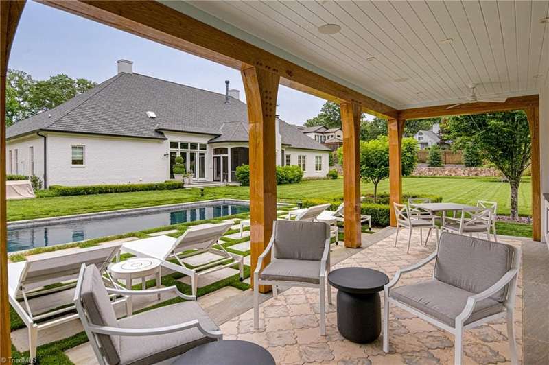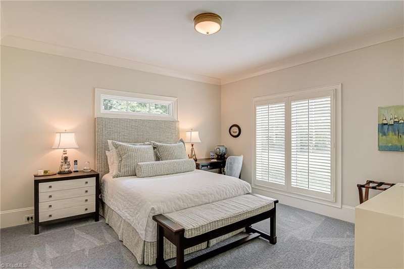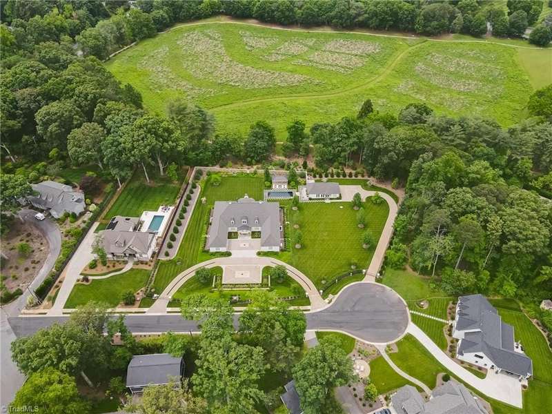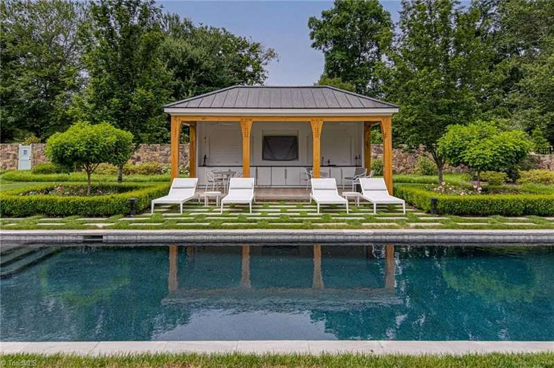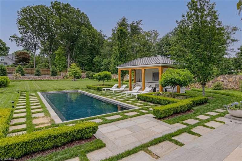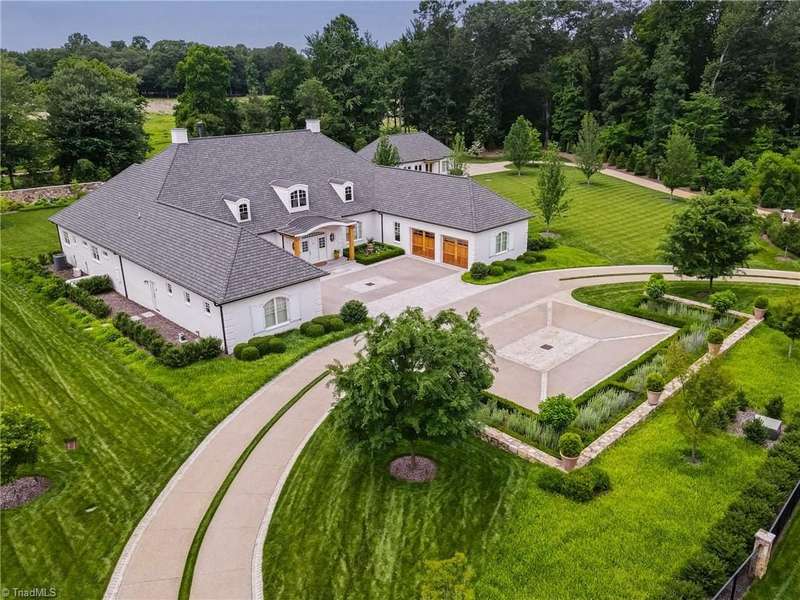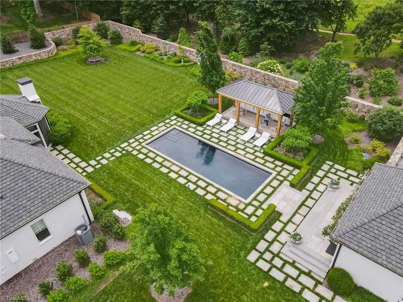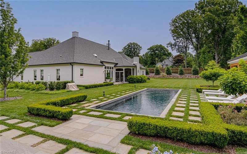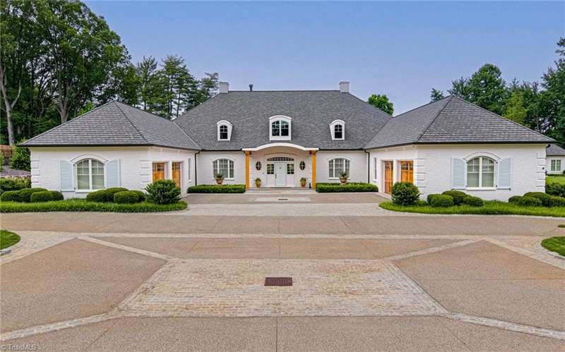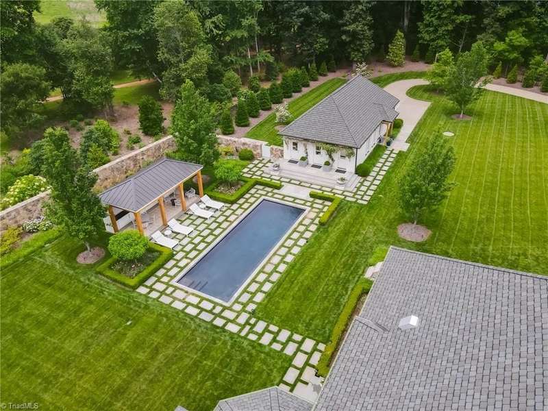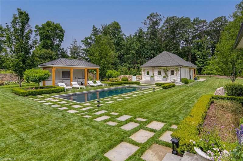 This sophisticated one-story home epitomizes quality and craftsmanship rarely seen! The main house features large open living spaces, fabulous primary suite with sumptuous marble bath and unbelievable dressing room. The living room opens to a large porch with fireplace overlooking the Reynolda Estate. Dining room with custom built-ins and glamorous lacquered ceiling. The kitchen is lined with custom cabinetry and top of the line appliances, breakfast room and fully equipped pantry. Two guest rooms each have ensuite baths and are discreetly situated away from the primary suite. The idyllic swimming pool and cabana offer wonderful outdoor entertaining opportunities. A fully self-contained guest cottage houses a pool bath, vaulted open living space with a fully equipped kitchen, bedroom, additional bath, and laundry. The distinctive design offers a motor court and separate double garages. The exquisite landscape was designed by Jeff Allen and is fully fenced and gated. True masterpiece!