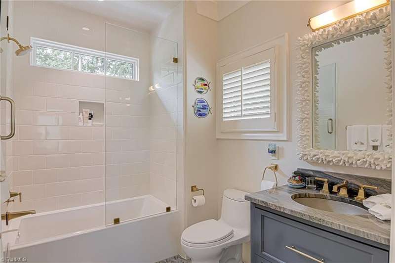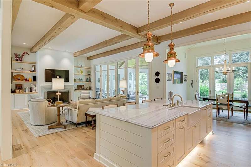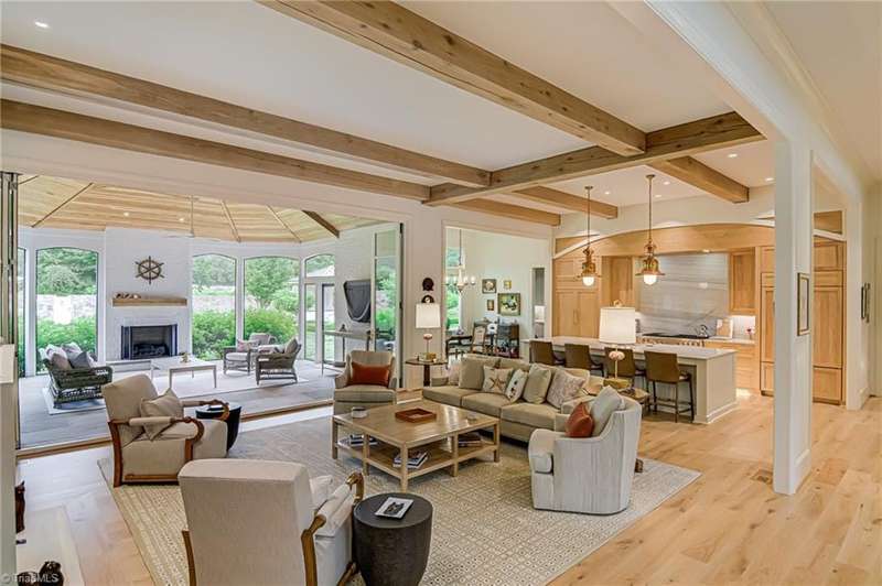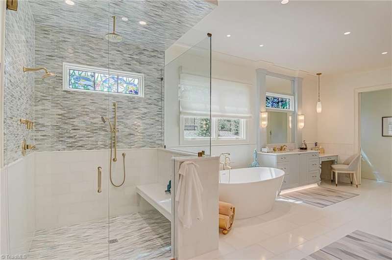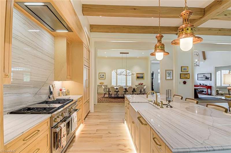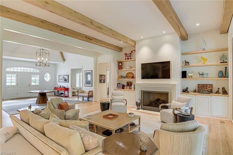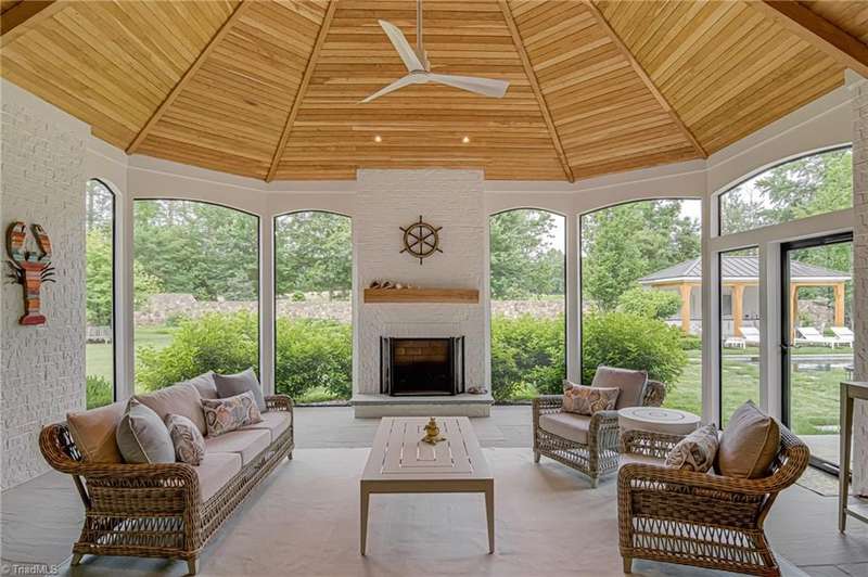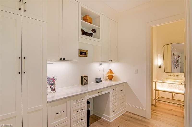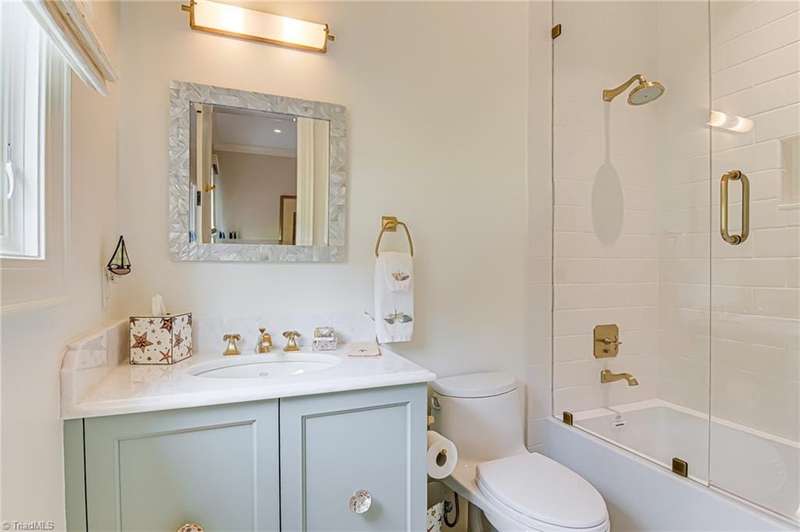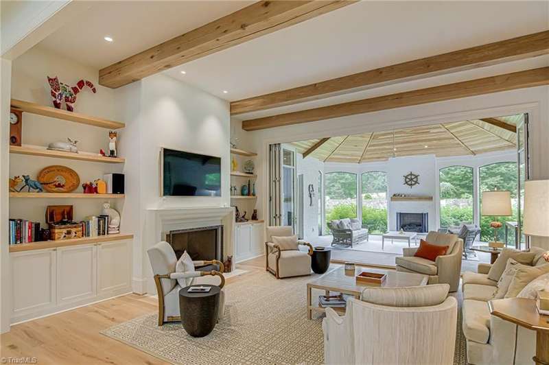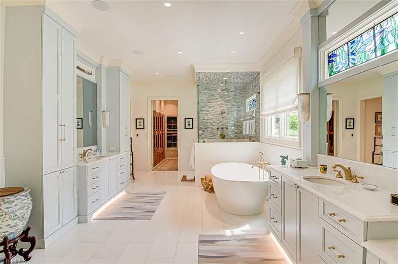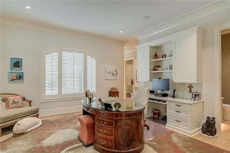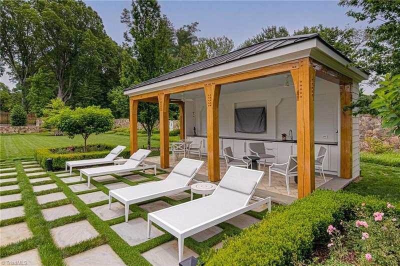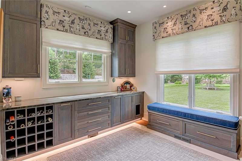 This sophisticated one-story home epitomizes quality and craftsmanship rarely seen! The main house features large open living spaces, fabulous primary suite with sumptuous marble bath and unbelievable dressing room. The living room opens to a large porch with fireplace overlooking the Reynolda Estate. Dining room with custom built-ins and glamorous lacquered ceiling. The kitchen is lined with custom cabinetry and top of the line appliances, breakfast room and fully equipped pantry. Two guest rooms each have ensuite baths and are discreetly situated away from the primary suite. The idyllic swimming pool and cabana offer wonderful outdoor entertaining opportunities. A fully self-contained guest cottage houses a pool bath, vaulted open living space with a fully equipped kitchen, bedroom, additional bath, and laundry. The distinctive design offers a motor court and separate double garages. The exquisite landscape was designed by Jeff Allen and is fully fenced and gated. True masterpiece!