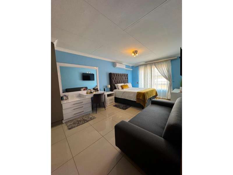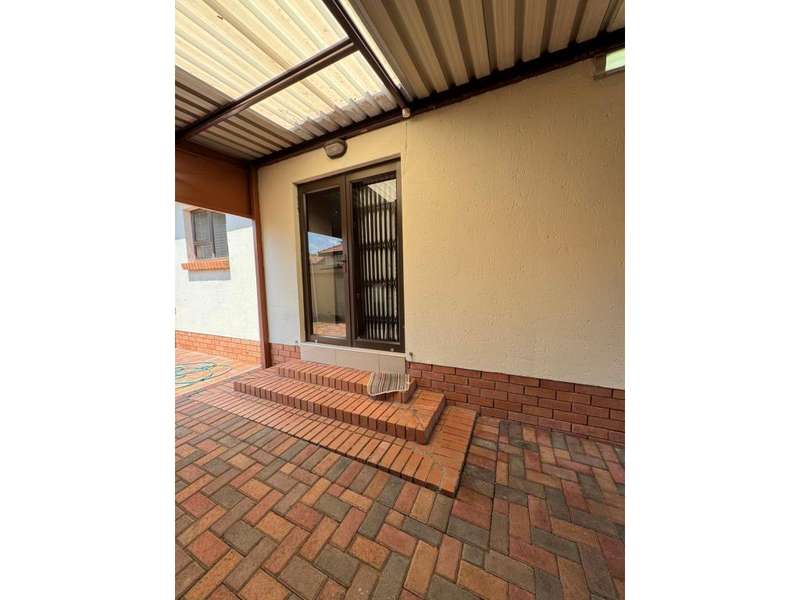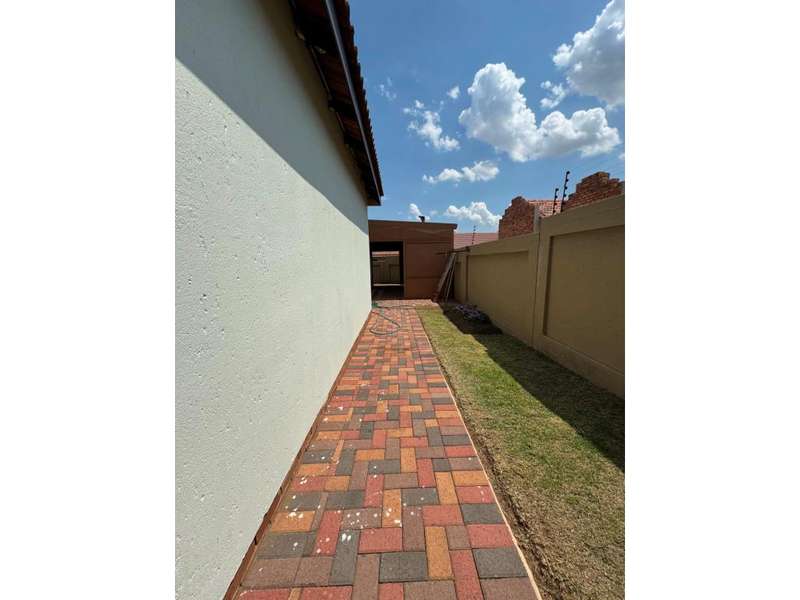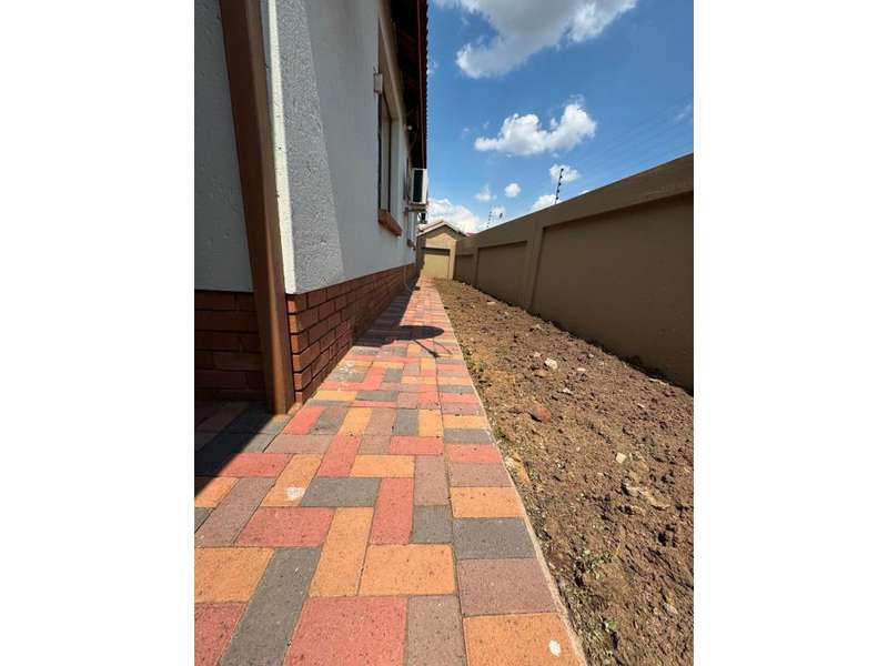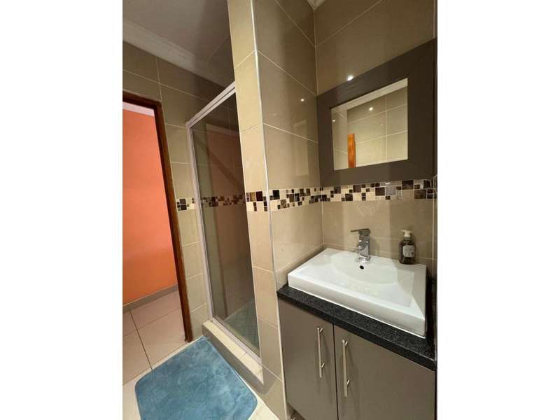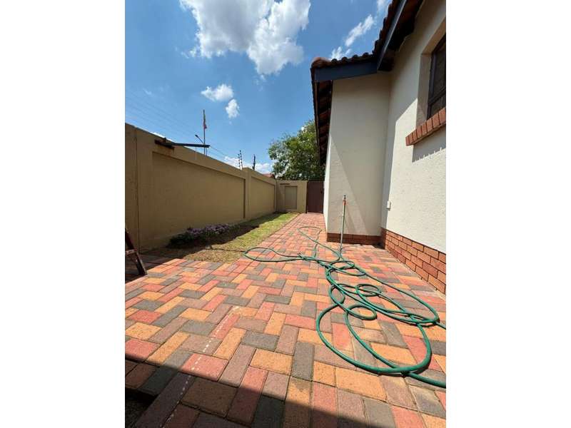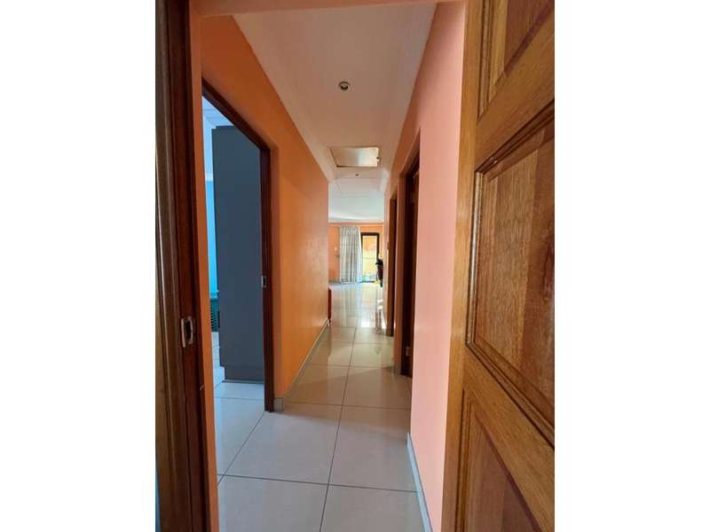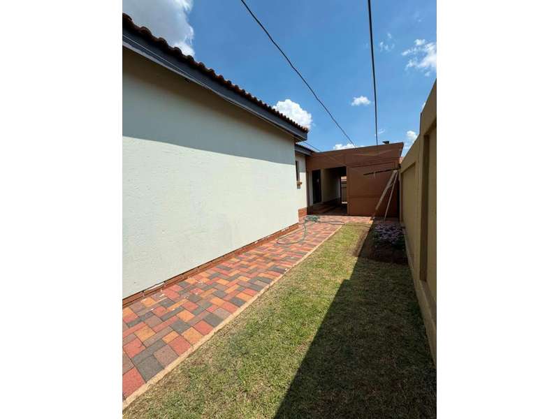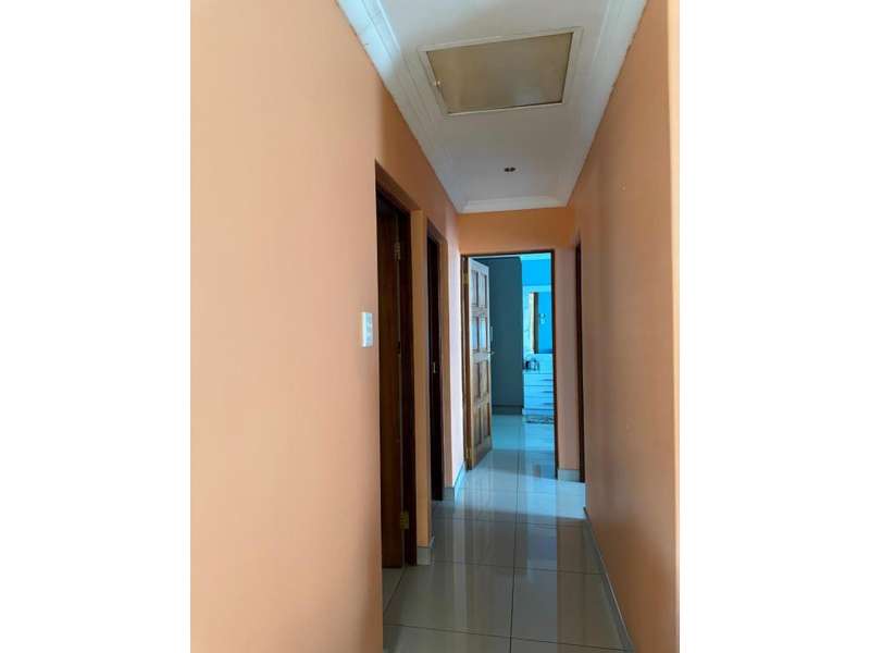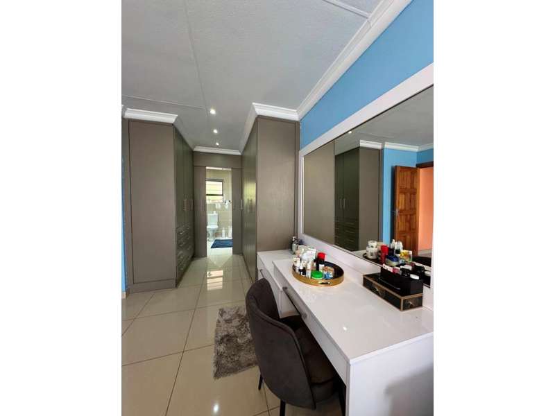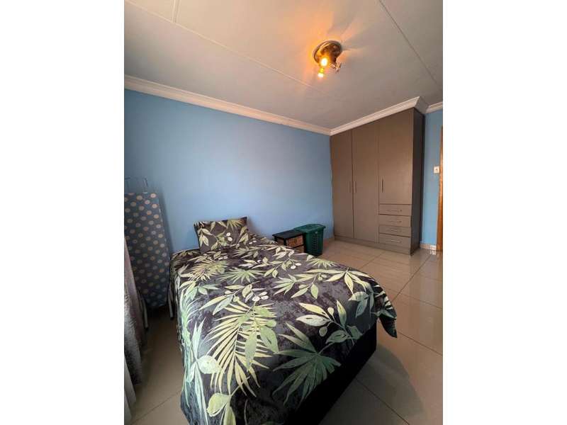 Modern Family Home with Exceptional Features Welcome to this stunning 3-bedroom, 2-bathroom family home, complete with a spacious 4-car garage, offering the perfect blend of comfort, convenience, and style. Interior Features: The heart of the home is a modern, open-plan kitchen and lounge area. The kitchen boasts sleek finishes, an electric stove, and ample counter space. A long passage from the living area leads to: A family bathroom featuring a shower, toilet, and basin. Three generously sized bedrooms, all fitted with built-in cupboards. A luxurious ensuite master bedroom with ample storage space. The ensuite bathroom is equipped with his-and-her basins, a bathtub, and a toilet. Outdoor Features: Step out from the lounge to a covered, built-in braai area, perfect for entertaining guests. A well-maintained garden offers a peaceful retreat for relaxation and play. Additional Amenities: Stay comfortable year-round with air conditioning. The property is equipped with a JoJo tank, ensuring water security, and a 7.5 kVA solar inverter system for energy efficiency. For added safety, the home is surrounded by an electric fence. This property is perfect for families seeking a modern lifestyle in a secure and serene environment. Don?ÇÖt miss the opportunity to make this your forever home!