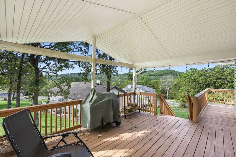 Wake up each day surrounded by the peace and beauty of Table Rock Lake in this well-maintained 2-bedroom, 2-bath home located in the highly sought-after Twin Island Estates. Set on a spacious half-acre double lot, this 1,710-square-foot two-story property offers the perfect blend of comfort, charm, and convenience with direct lake access and a welcoming community atmosphere.Inside, you are greeted by warm, light-filled spaces designed for everyday living and easy entertaining. Enjoy cozy evenings by the beautiful stone wood-burning fireplace or host friends and family in one of two spacious living areas that provide plenty of room to relax. The kitchen features freshly painted cabinets, updated fixtures, and a practical layout ideal for both cooking and conversation.Both levels have been freshly painted, giving the home a bright, move-in-ready feel. A roof that is only seven years old adds peace of mind for the years ahead. The lower level includes a versatile workshop area that can serve as a creative space, home gym, or extra storage for lake gear and equipment.Outside, the large lot provides ample room for gatherings, gardening, or simply enjoying the peaceful surroundings. Spend your summer days swimming or paddleboarding just moments away in Table Rock Lake, and take advantage of the many amenities offered by Twin Island Estates, including a community pool, clubhouse, basketball court, and more.Whether you are seeking a full-time lake residence or a relaxing weekend retreat, this home delivers an exceptional lake living experience. Peaceful mornings by the water, cozy evenings by the fire, and a welcoming neighborhood are all waiting for you here.
