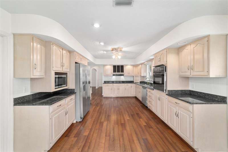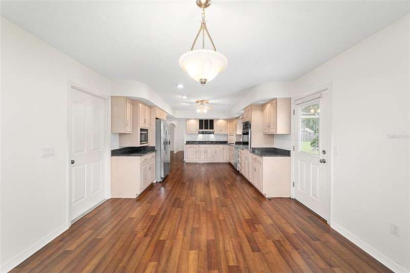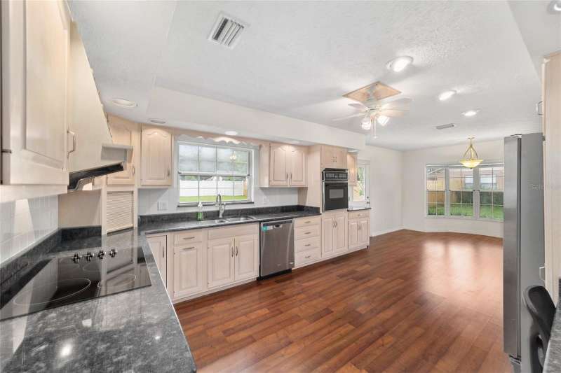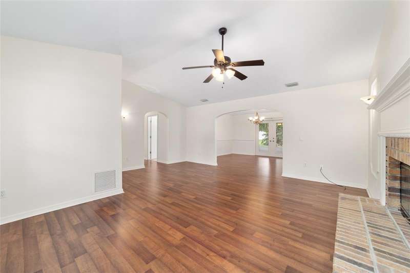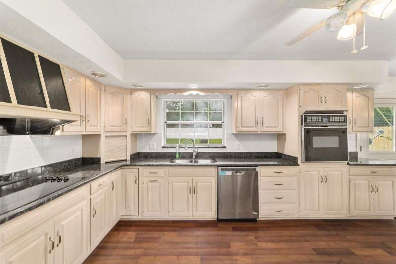 Wonderful home ready for new owner. Wood laminate featured throughout living areas. Great room features a wood burning fireplace. Large dining area with French doors opening to great backyard. Kitchen has plenty of cabinet space, granite and stainless appliances. Huge breakfast nook surrounded by windows - perfect for starting the day. Master bedroom is a good size with a walk in closet and updated bathroom. Two guest bedrooms - one featuring a wall of built ins, perfect for those working remotely. Great fenced in back yard.