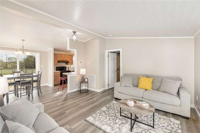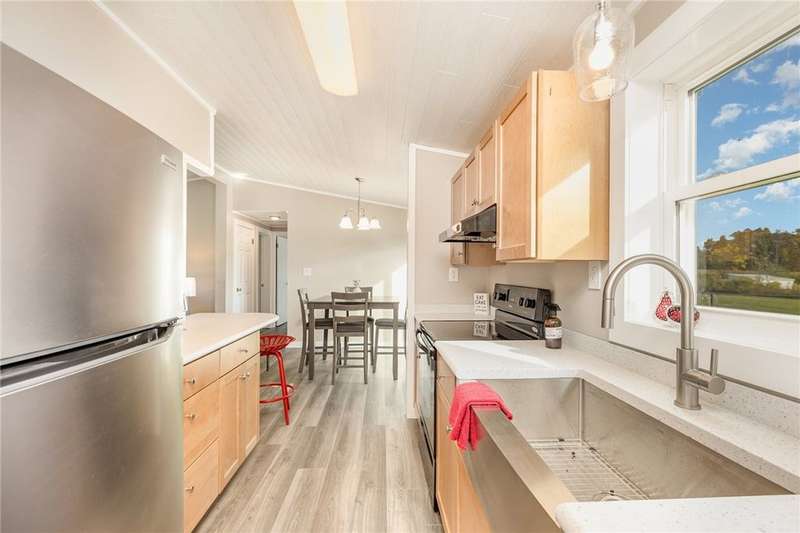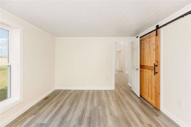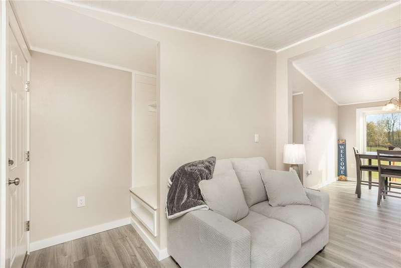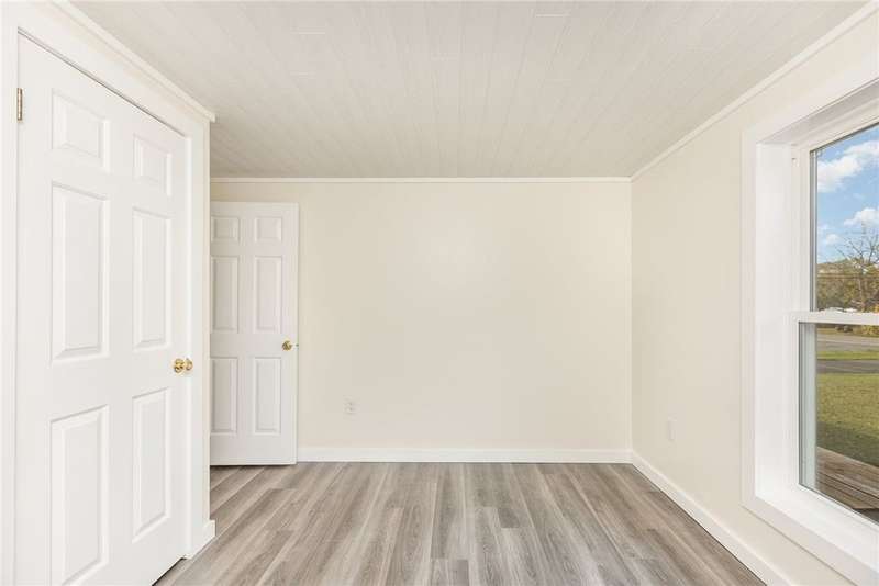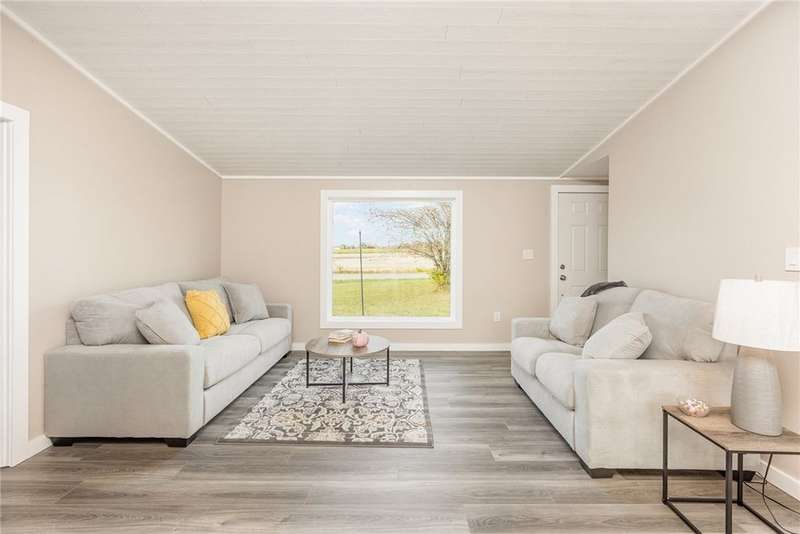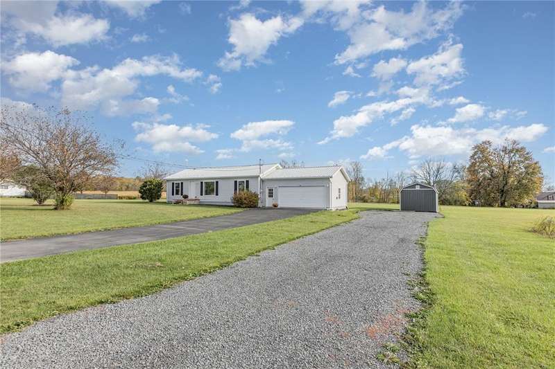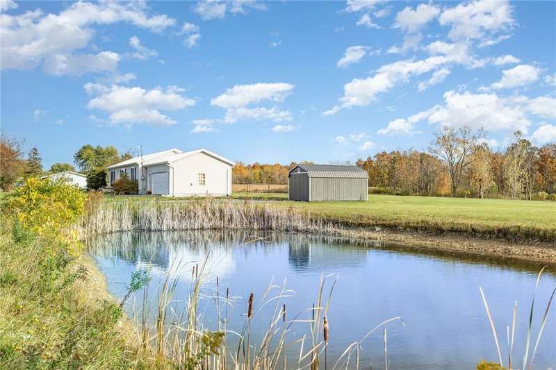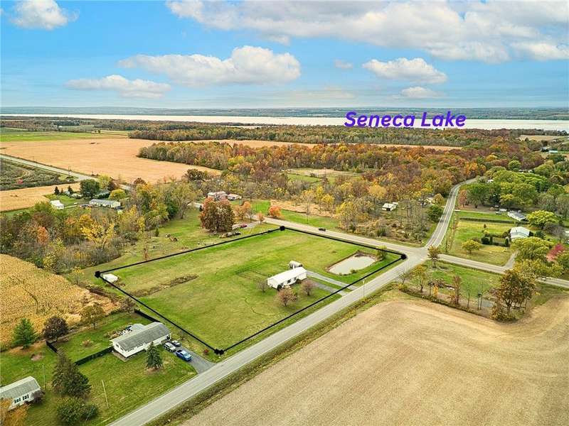 Immaculate and totally renovated 3-bedroom, 2-Full bath ranch home sitting on over 4 acres with a stocked pond ? where the views are absolutely priceless! The partially fenced backyard still leaves plenty of open space, including a main paved driveway leading to a large two-car garage and a second gravel driveway that leads to a spacious new storage shed with electric. This delightful home offers a contemporary feel with a slightly pitched ceiling and an open dining and living room area. The newer kitchen is stunning, featuring Corian counters, a deep sink, and all updated appliances. The bright dinette area offers space for casual dining and includes glass sliding doors that open to a fenced area ? perfect for pets or simply relaxing while taking in the pristine grounds. The flowing floor plan continues into the roomy living room with its large picture window and plenty of natural light. Newer, same-tone flooring runs throughout for a seamless look, complemented by freshly painted walls in neutral tones. The owner's suite is generously sized to accommodate any furniture arrangement and includes a full bath and spacious closet. Two additional bedrooms also feature the attractive vinyl plank ceilings and ample closet space. A second full bath for convenience has been updated with granite sink! A separate laundry area adds convenience. You'll appreciate the full basement with high ceilings, offering abundant storage or potential for finishing. Mechanical updates include a newer furnace with central air, dual sump pumps, a dehumidifier, and an Aquasana air system for cleaner air throughout. This home truly needs nothing ? it's maintenance-free, economical, spotless, and move-in ready! Agents, please share "Private Remarks" for recent mechanical updates! Located just minutes from Sampson State Park on Seneca Lake, as well as local wineries and all the beauty the Finger Lakes region has to offer.