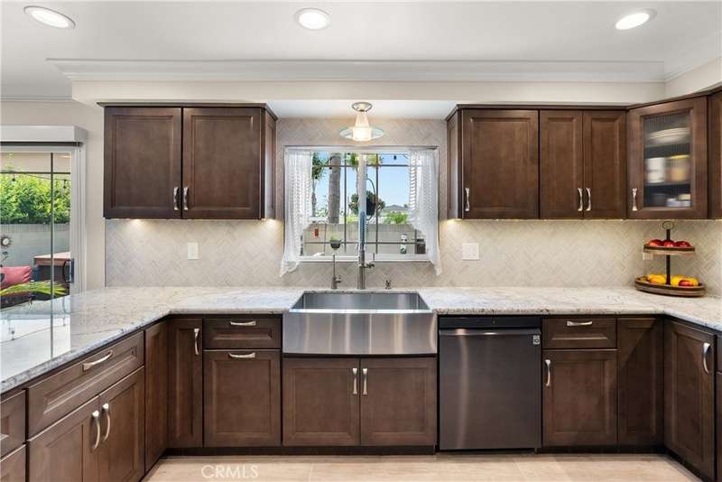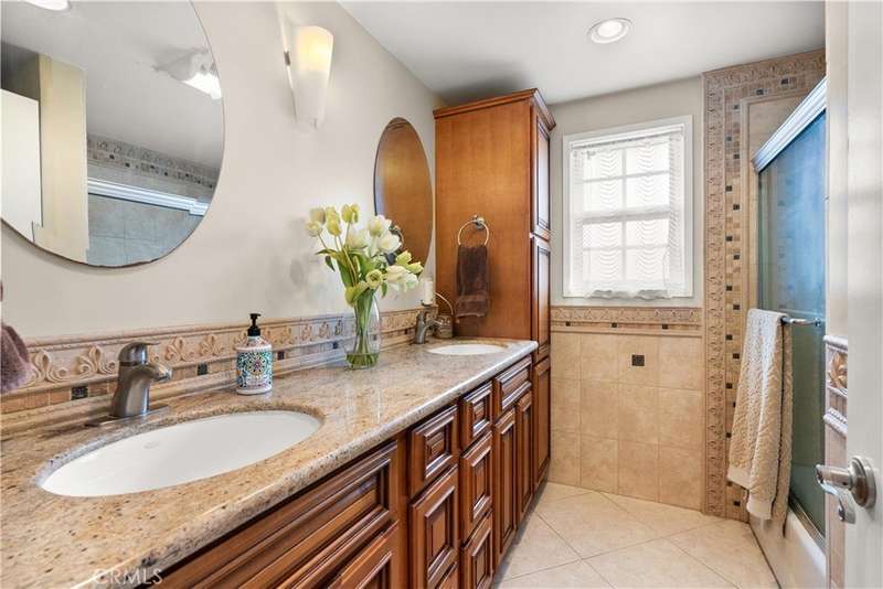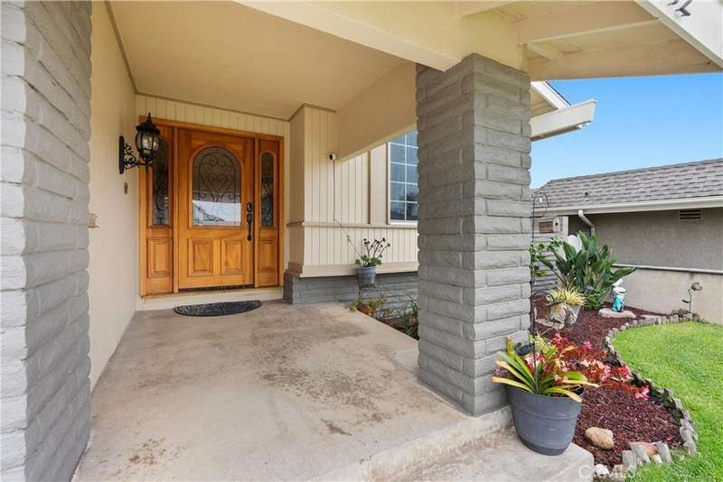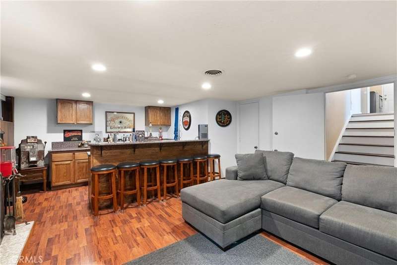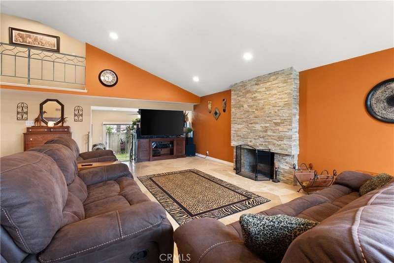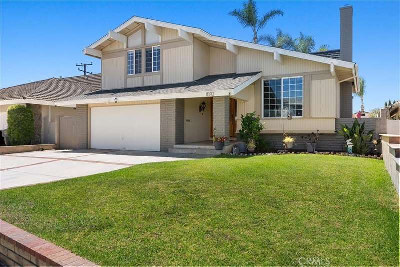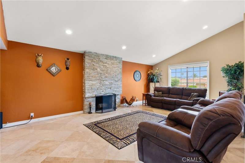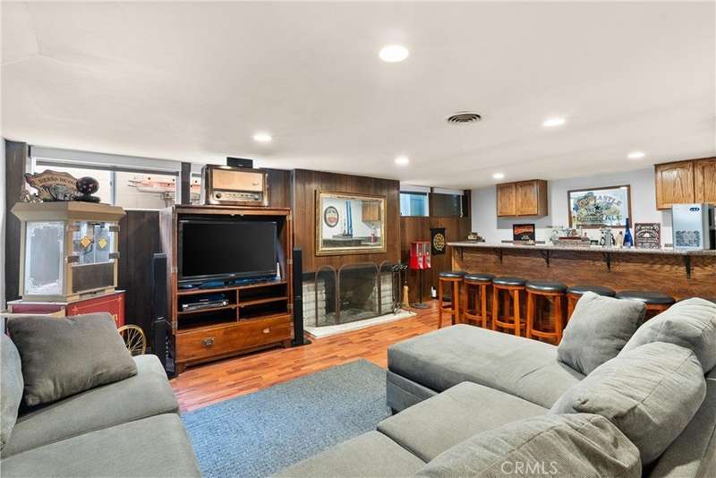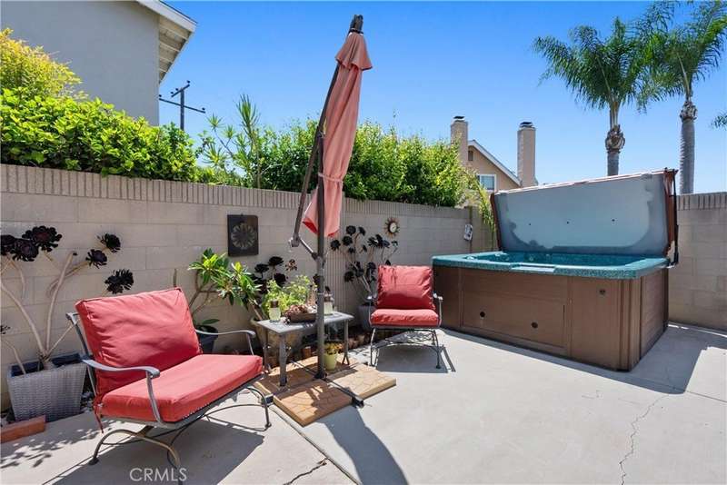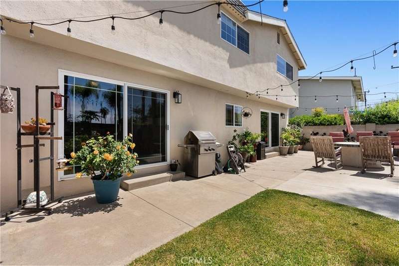 Paid off Solar! This beautifully updated Huntington Crest split level home boasts 4 Bedrooms, 2.5 Bathrooms, a Basement, Flex Space, Dual Paned Windows & Sliding Glass Doors and tasteful updates throughout. Open and airy entry with tall ceilings, large living room with a fireplace. Off the living room is a flex space currently being used an office. This area provides opportunities for many uses such as a formal dining room, playroom, reading area, etc. Stunning kitchen remodel that opens to the dining room and backyard make this home perfect for entertaining. Just around the kitchen are the steps to the finished basement complete with a built in bar and fireplace. Upstairs you will find all the generously sized bedrooms and spacious closets. The primary bedroom has a nice bathroom en-suite with tiled shower with a glass door, walk in closet and secondary closet. The upstairs hallway bathroom has dual vanity sinks. Take advantage of the beautiful Southern California weather in the low maintenance back yard while soaking in the above ground jacuzzi or relaxing around the fire pit. Prime interior track location, close to beaches, parks, shops, restaurants and more. This is one you won't want to miss!
