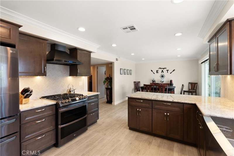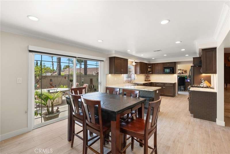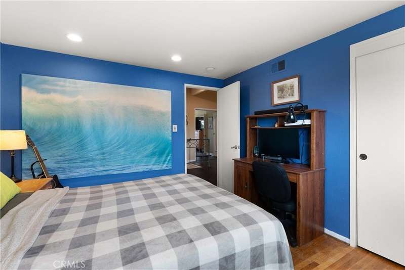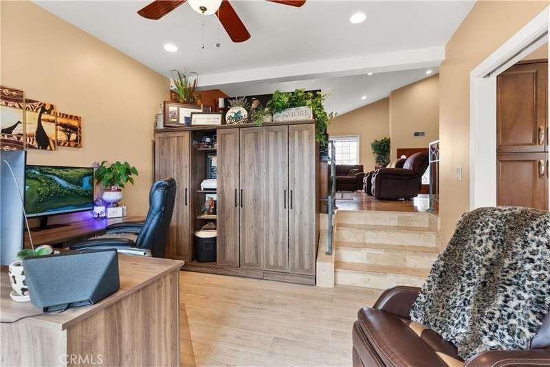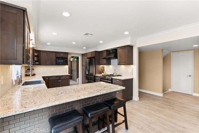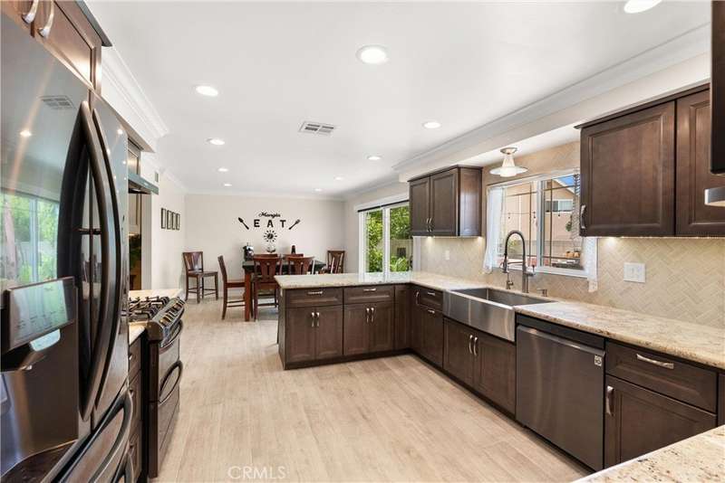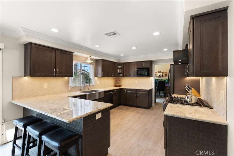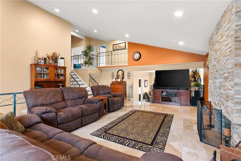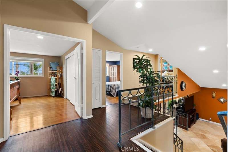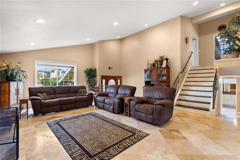 Paid off Solar! This beautifully updated Huntington Crest split level home boasts 4 Bedrooms, 2.5 Bathrooms, a Basement, Flex Space, Dual Paned Windows & Sliding Glass Doors and tasteful updates throughout. Open and airy entry with tall ceilings, large living room with a fireplace. Off the living room is a flex space currently being used an office. This area provides opportunities for many uses such as a formal dining room, playroom, reading area, etc. Stunning kitchen remodel that opens to the dining room and backyard make this home perfect for entertaining. Just around the kitchen are the steps to the finished basement complete with a built in bar and fireplace. Upstairs you will find all the generously sized bedrooms and spacious closets. The primary bedroom has a nice bathroom en-suite with tiled shower with a glass door, walk in closet and secondary closet. The upstairs hallway bathroom has dual vanity sinks. Take advantage of the beautiful Southern California weather in the low maintenance back yard while soaking in the above ground jacuzzi or relaxing around the fire pit. Prime interior track location, close to beaches, parks, shops, restaurants and more. This is one you won't want to miss!