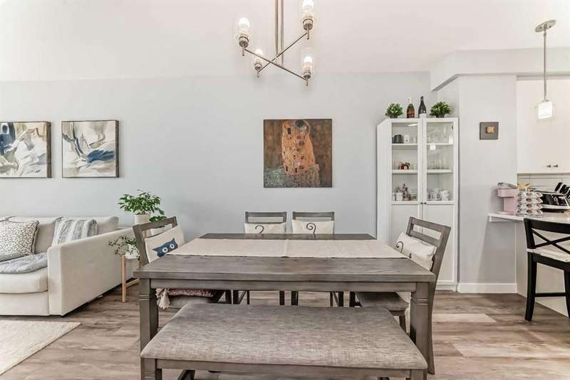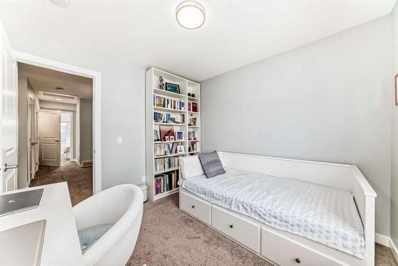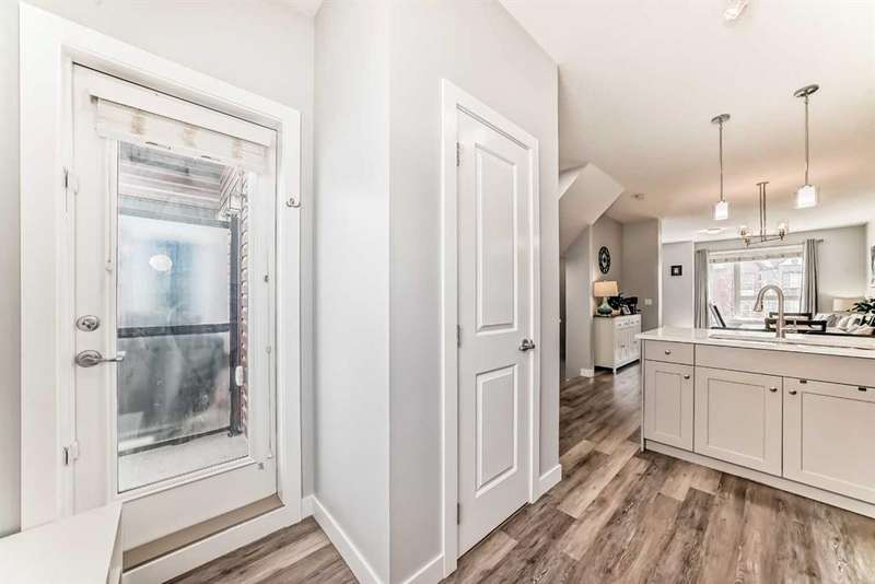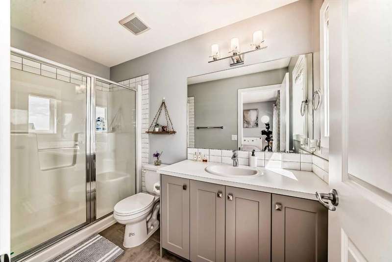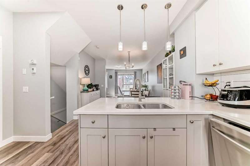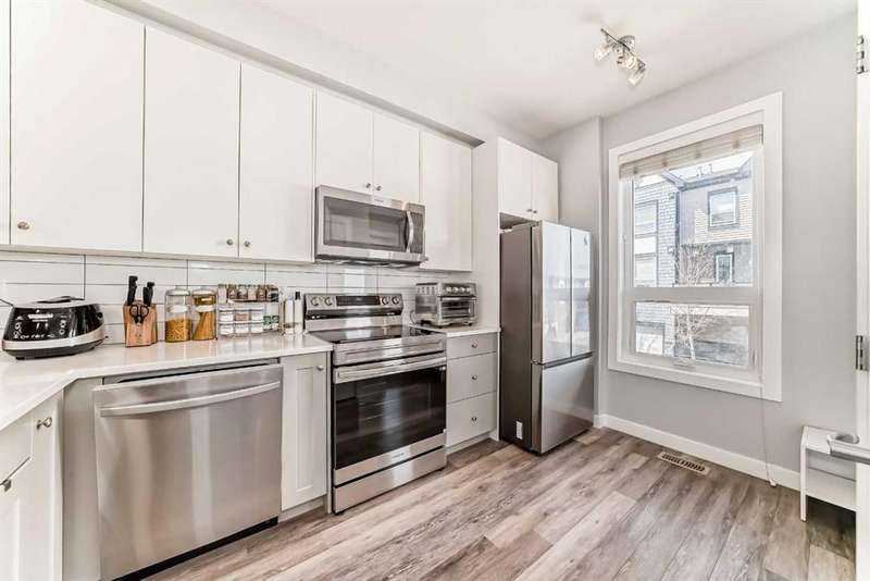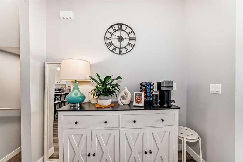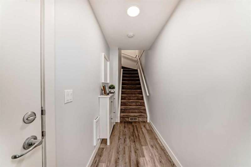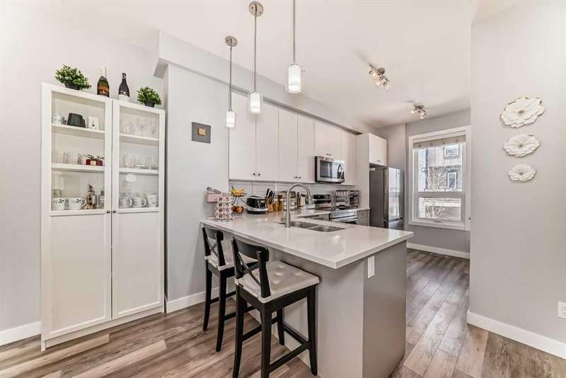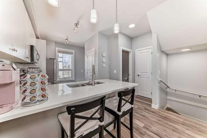 BEAUTIFULLY MAINTAINED Townhouse awaits in the sought-after Evanston neighborhood. This townhome features 2 BEDROOMS, 2.5 BATHS, the addition of a BONUS ROOM/OFFICE on the upper floor, 1,425 sq. ft. of living space. This home also includes the convenience of an oversized double attached garage (tandem parking) with a window. As you enter, you are introduced to a large foyer, utility room and garage all situated on the lower floor. As you walk up the stairs, you will be greeted by the bright and open concept designed for use with NEW PAINT & NEW LIGHTING FIXTURES throughout (Main & upper level), featuring 9 foot ceilings and beautiful vinyl plan floors. The spacious kitchen offers a raised breakfast bar, a closet pantry and stainless steel appliances (NEW DISHWASHER, ELECTRIC STOVE & REFRIGERATOR purchased in 2025). Also, a generously sized kitchen equipped with abundant cabinets and ample counter space. Additionally, there's a half bath, a sizable dining area and a spacious living room flooded with natural light from numerous windows. The balcony is accessed from the kitchen with a gas-line for BBQ completes this level. The upper level features a primary bedroom walk-in closet and 3-piece en-suite. As you follow the hallway, you will find another 4-piece bathroom, and another sizable bedroom with a walk-in closet. These two bedrooms allow a ton of natural light from the large windows, have an extensive amount of room and storage with the closets. A BONUS room which can be used as an office and convenient upper-level laundry complete this level. Excellent location!! Located in a family-friendly neighborhood, this townhouse is close to excellent schools, parks, shopping, and major roadways. It's just minutes from Costco, Wal-mart, T & T supermarket and easy access to the Stoney Trail offering the perfect balance of convenience and comfort. Don't miss the opportunity to make this townhouse your own!