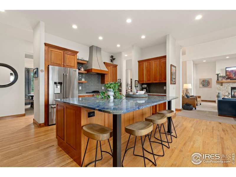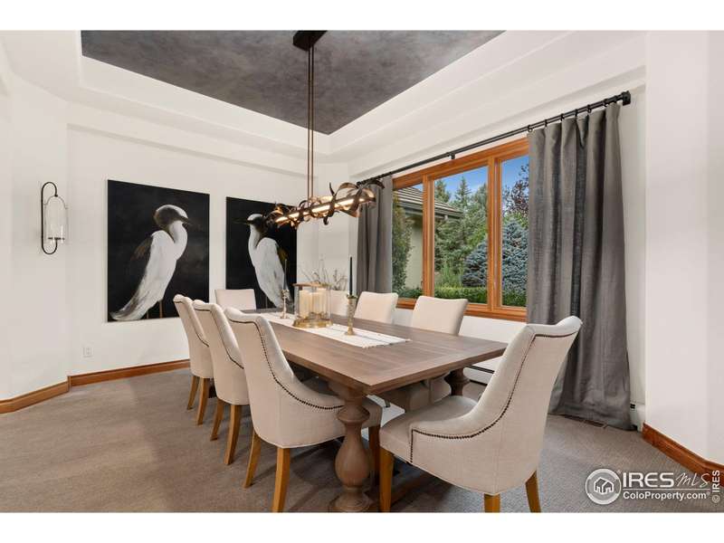 Discover this spectacular Miramont residence, perfectly positioned on a private cul-de-sac with stunning mountain views and direct access to neighborhood green space. Designed with both comfort and sophistication in mind, this home offers a spacious open floor plan filled with natural light, soaring ceilings, and high-end finishes throughout. The main floor features a luxurious primary retreat, complete with convenience of main-level laundry. A gourmet, upgraded kitchen anchors the heart of the home, ideal for both everyday living and entertaining, while multiple living spaces provide versatility and room to gather. The walkout lower level expands your lifestyle options with a brand-new wine cellar, wet bar, and generous entertaining space that flows seamlessly outdoors. Outdoor living shines here, with a huge back deck to take in the mountain views, a shaded patio, and mature landscaping that enhances privacy and beauty year-round. Car enthusiasts and hobbyists will appreciate the oversized three-car garage plus a large finished and heated shop. With thoughtful design, unique details, and a prime southeast Fort Collins location, this home balances luxury with livability. New Boiler, Humidifier, and AC & Air Handler! $5000 concession for wood floor refresh.