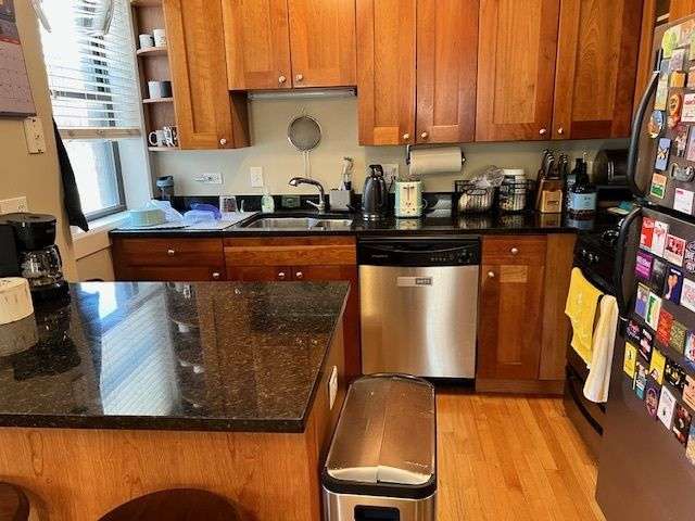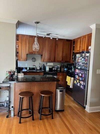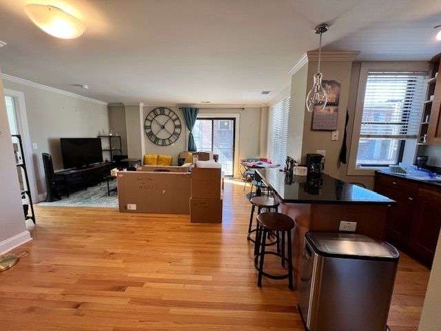 Welcome to this spacious 2BR/2BA home featuring a smart layout and high-quality finishes. Garage parking and storage are included in the price! Hardwood floors flow throughout the main living area and kitchen, accented by crown molding and tall ceilings. The kitchen boasts maple cabinetry, stainless steel appliances, and thick stone countertops. Both bathrooms are finished with beautiful tile work and matching stone counters. Enjoy the convenience of in-unit laundry, abundant closet space, and a generously sized second bedroom. Natural light pours in through large windows, and a private balcony offers the perfect spot to relax. The building offer has a workout room. Small pet negotiable with non-refundable deposit. Google fiber installed and ready for your work from home days.