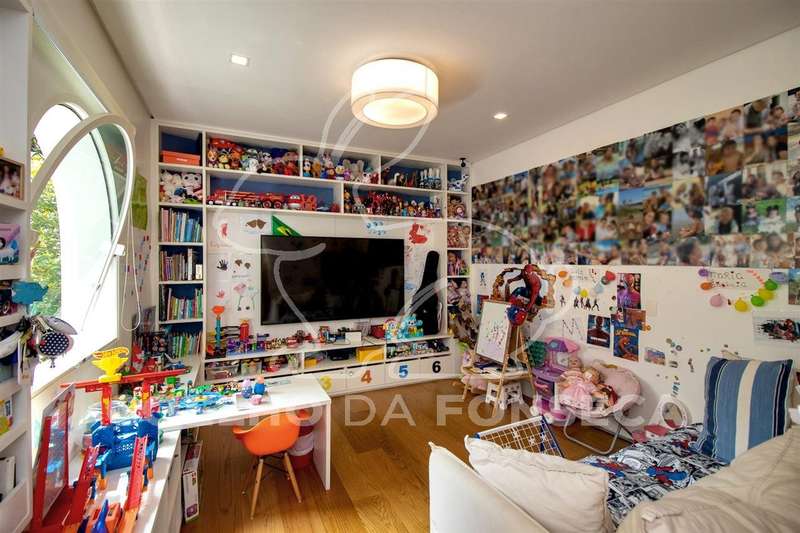 São 3 suítes repletas de armários e a master ainda tem um closet enorme . Copa , cozinha , área de serviço e dormitório de empregada . São 3 garagens , sendo uma com kit para carro elétrico , e também um depósito no subsolo