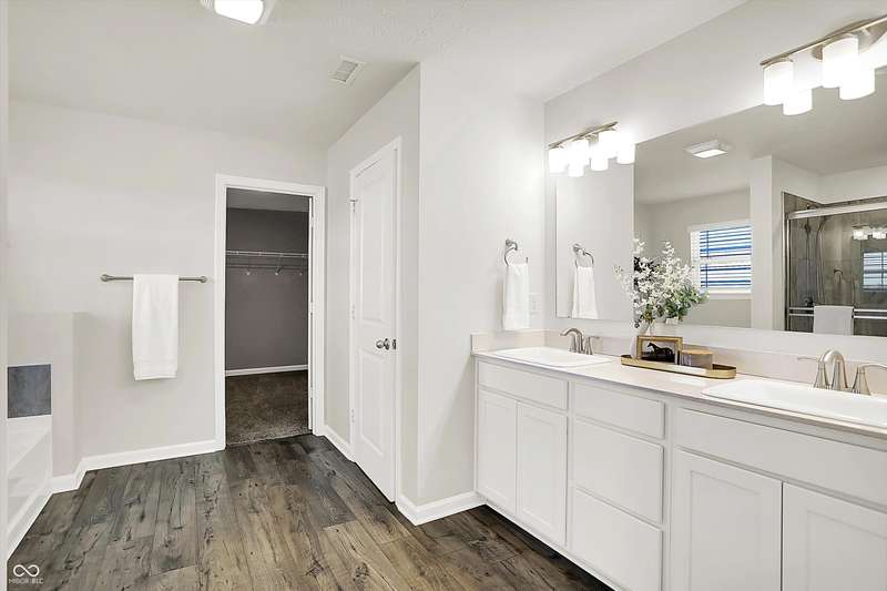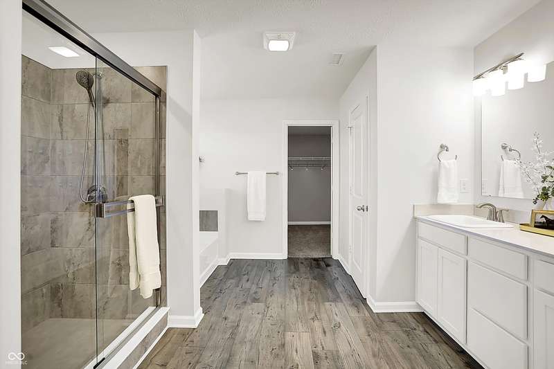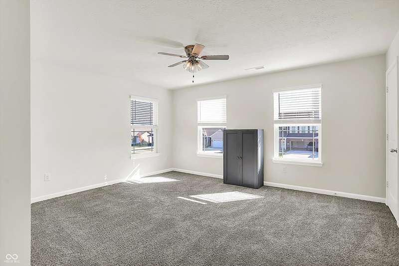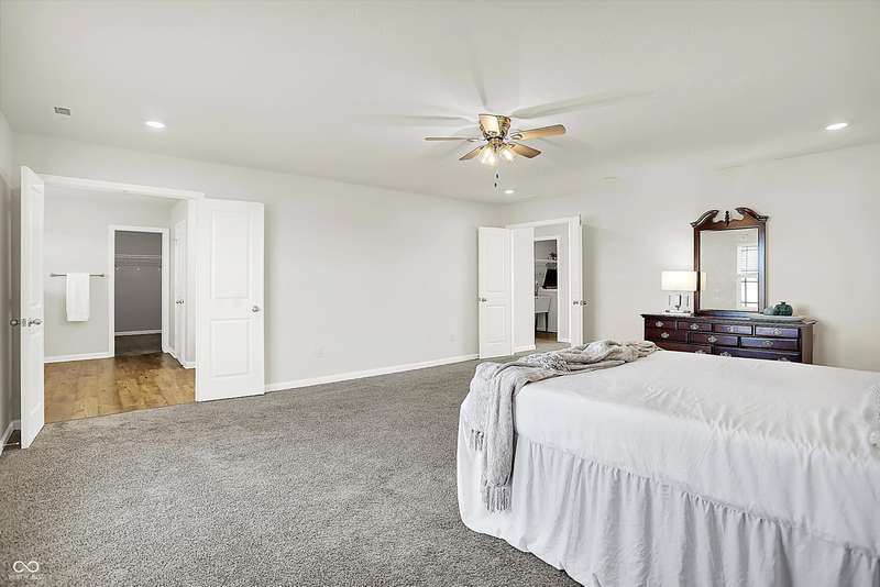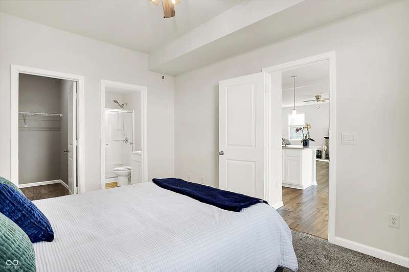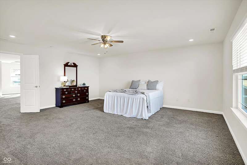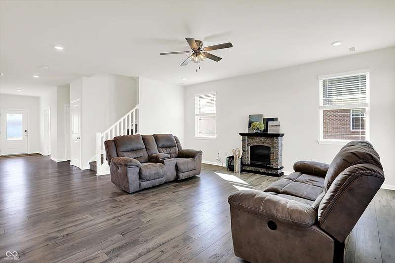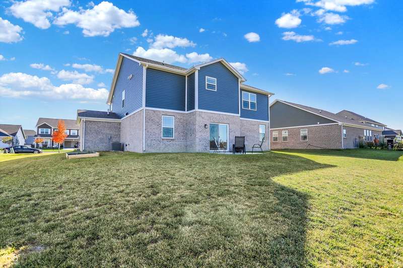 Built in 2022, this nearly new home already has the upgrades, details, finished-yard, window treatments, and fresh paint-so you can move right in. The floorplan offers flexibility with a main-floor bedroom featuring a private ensuite, plus a dedicated office with the upgraded French doors. Upgraded flooring throughout the main level. The open kitchen design boasts upgraded cabinets, stainless steel appliances (including a gas stove), a large island, and plenty of space to gather. The 3-car garage includes a workshop with built-ins that stay. Extras like a water softener, reverse osmosis system, a drop zone off the garage for shoe & clutter collection, and ceiling fans in each bedroom add everyday comfort. There is a second level loft for work or play. This fun neighborhood offers incredible amenities-pool, fitness center, bocce ball, pickleball-and direct access to the Big 4 Rail Trail.
