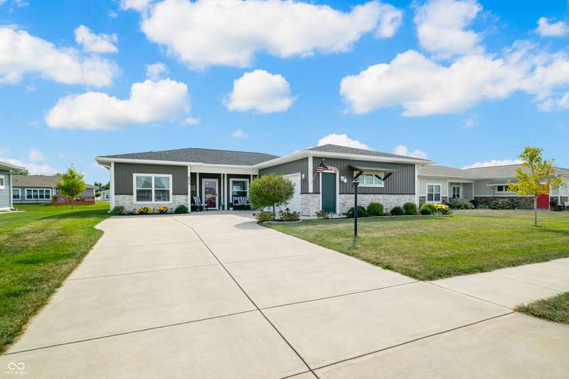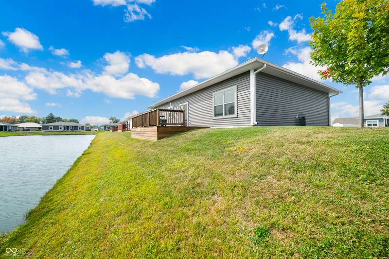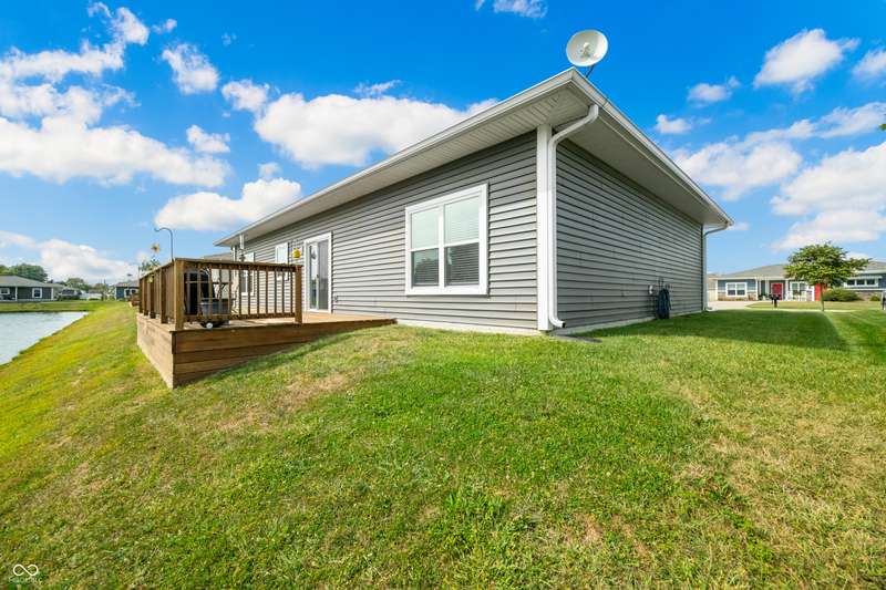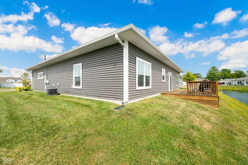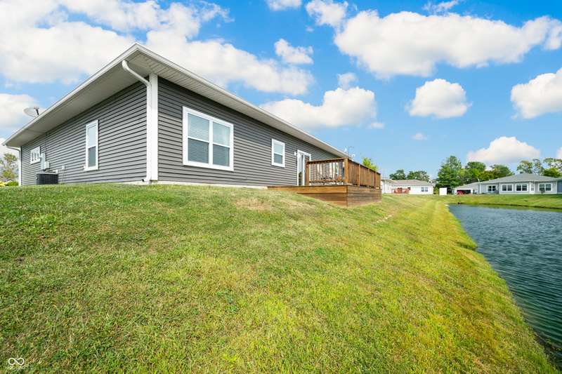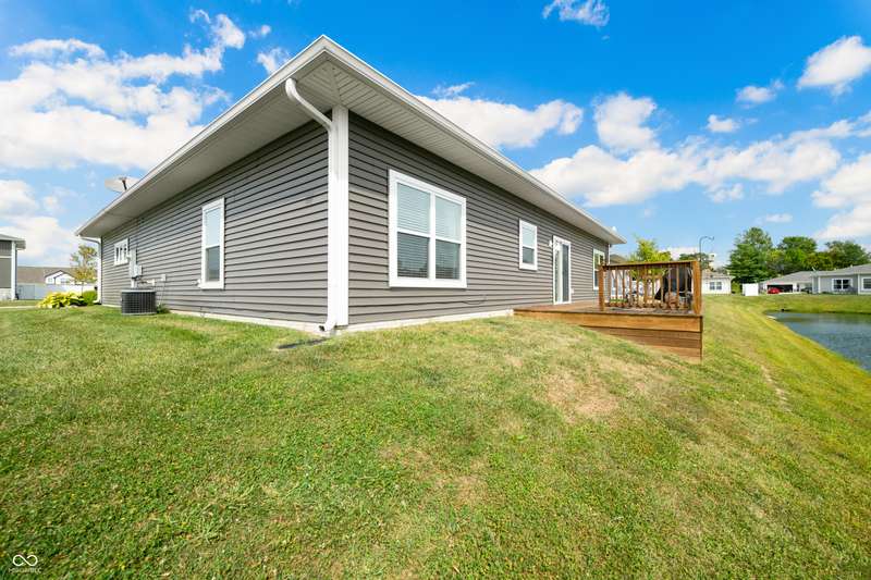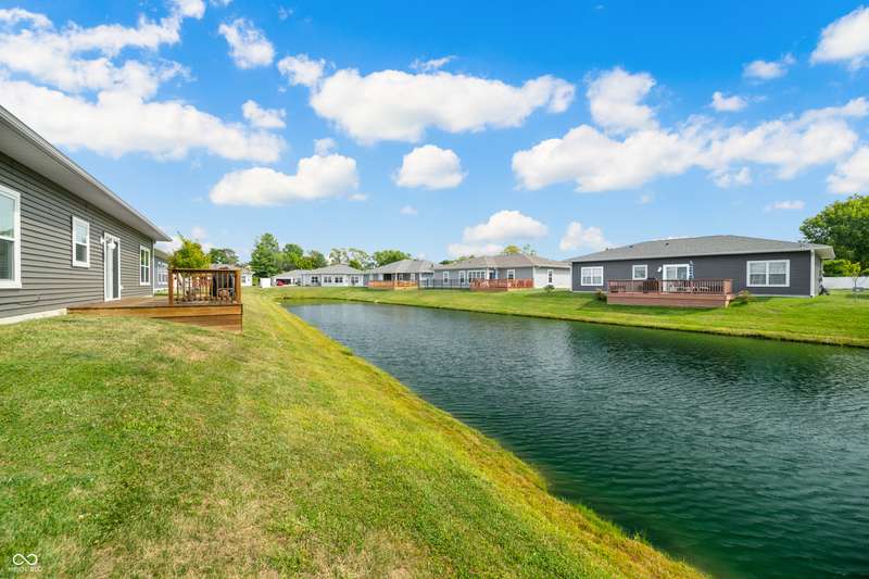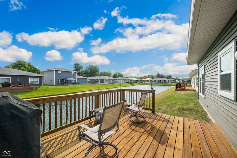 Meticulous owners have offered this jewel to the next owner. Built in 2019 it sits on the pond with a lovely wood deck to enjoy the view. The Mid-Century design of this community is not your 'cookie cutter' norm. 9 ft. ceilings add to the open concept making it feel very spacious. Kitchen Center Island will be a favorite spot. Washer/Dryer stays (5 yrs old) and all other appliances remaining are 2 years old. Plenty of storage with walk in closet owners suite and floor-to-ceiling tiled shower. Large concrete driveway leads into the side load XL garage that is clean and neat! Plenty of patio space on the front side also. If you need move-in ready with immediate possession, schedule a showing today! No matter where you need to go - N-E-S-W - this is a wonderful location.