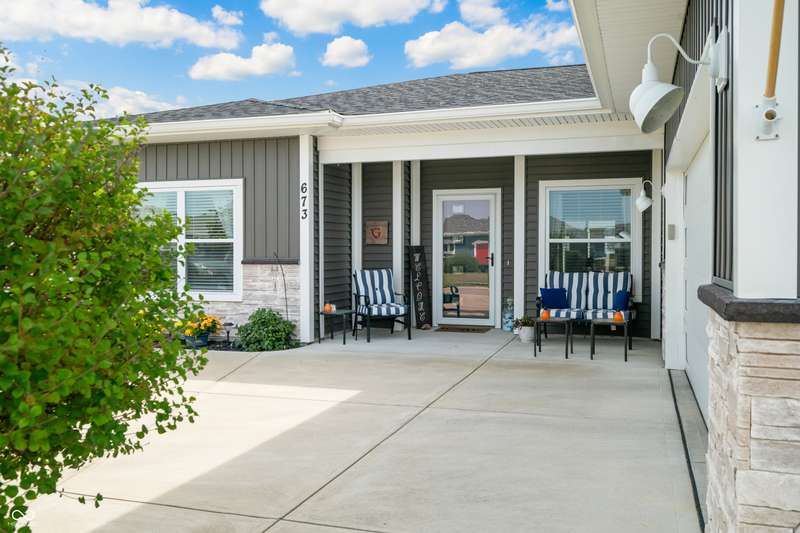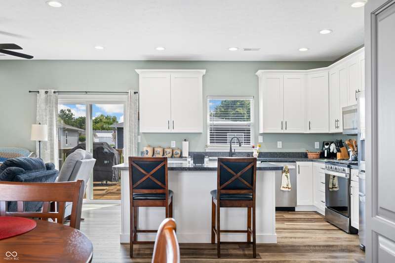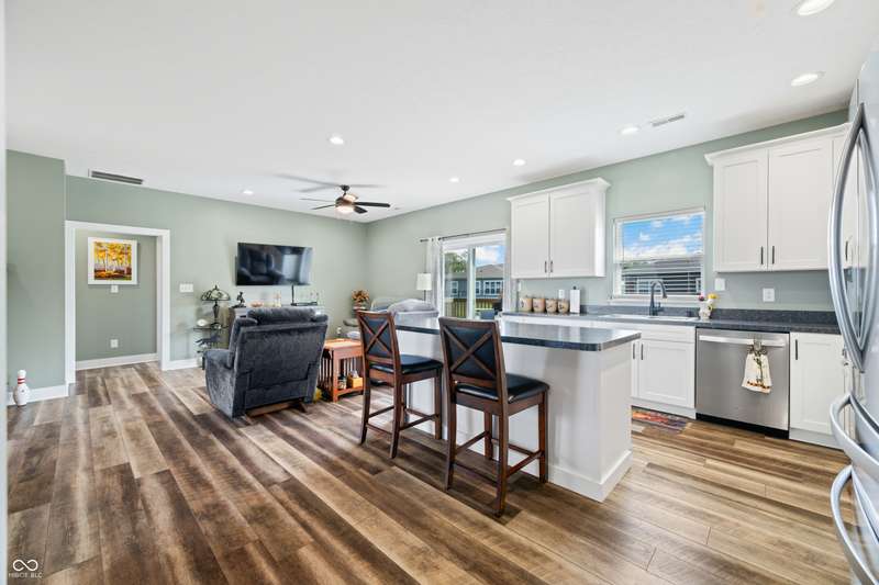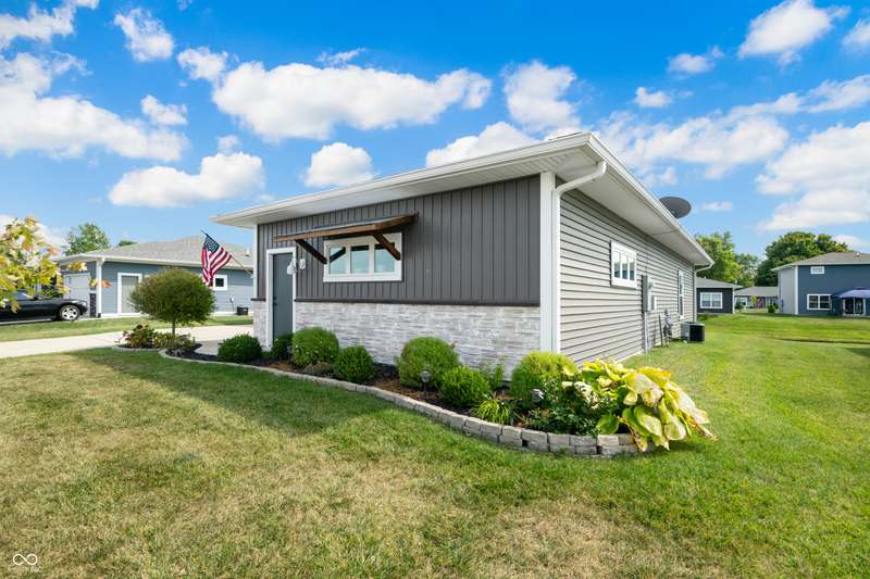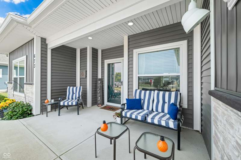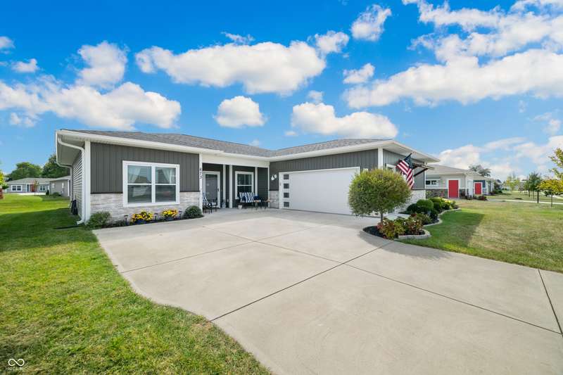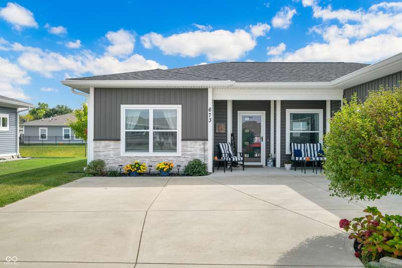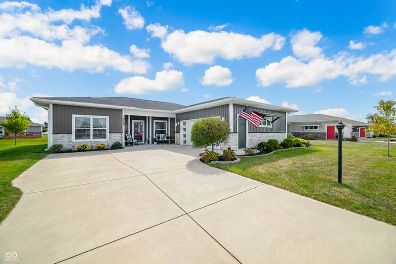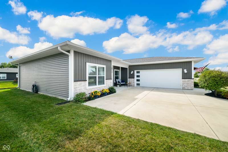 Meticulous owners have offered this jewel to the next owner. Built in 2019 it sits on the pond with a lovely wood deck to enjoy the view. The Mid-Century design of this community is not your 'cookie cutter' norm. 9 ft. ceilings add to the open concept making it feel very spacious. Kitchen Center Island will be a favorite spot. Washer/Dryer stays (5 yrs old) and all other appliances remaining are 2 years old. Plenty of storage with walk in closet owners suite and floor-to-ceiling tiled shower. Large concrete driveway leads into the side load XL garage that is clean and neat! Plenty of patio space on the front side also. If you need move-in ready with immediate possession, schedule a showing today! No matter where you need to go - N-E-S-W - this is a wonderful location.