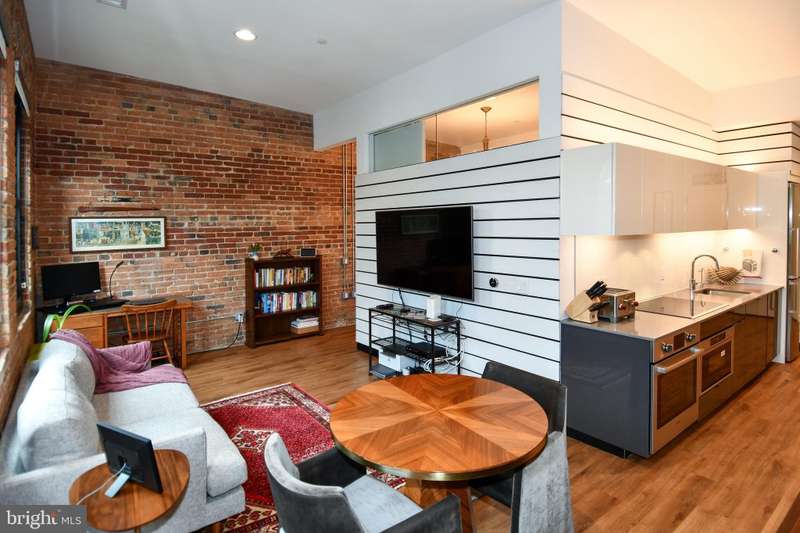 Step into history in DC's iconic Chapman Stables. This 1-bed, 1-bath condo blends historic character-11' ceilings, original exposed brick, and three grand arched windows-with sleek modern finishes. The open layout features a Bosch kitchen, quartz countertops, and in-unit washer/dryer across 725sqft of refined space. The custom built-ins add an elegant level of storage as well. Primary bedroom also has a rare find in the building with a custom closet to provide even more storage. Located in a nationally registered landmark, the building showcases unique architectural touches like the restored car-elevator lobby with original pulleys. Residents enjoy luxury amenities including a rooftop terrace with Capitol views, a landscaped courtyard, concierge service, lounge, and secure elevator access. Garage parking and storage are available for purchase. A true bonus of the building is having a great restaurant at your front door, Republic Cantina. Set in the heart of Truxton Circle, between NoMa and Shaw, you're moments from the metro, top restaurants, and downtown. Chapman Stables offers the rare opportunity to live in a modern home with soul-where heritage meets elevated urban living.