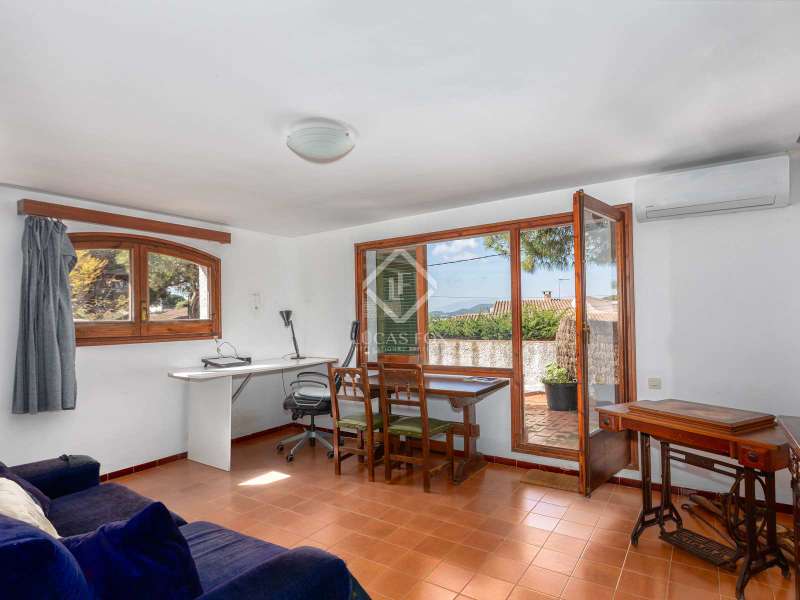 Lucas Fox presents this excellent house in the Mongoda development in Lloret de Mar. It is a large Mediterranean-style house located on a plot of more than 2,300 m², something unusual in an area so close to the sea and the city. The property has a double entrance, including one for vehicles. The main house has an area of 392 m² and consists of five bedrooms, two living rooms, kitchen and access to the garage through a patio. Upon entering the main house, we find the kitchen with access to the garage, a spacious living-dining room with a fireplace and a guest bathroom . Moving on to the bedroom area on the ground floor, there are four bedrooms and three full bathroom . One of the bedrooms has its own bathroom, while the other three double bedrooms share two bathroom. On the same floor, there is a living room that could be converted into an additional bedroom . On the first floor is the main bedroom with a private bathroom. This same floor could be connected to the guards' property , to expand the main bedroom or divide it into several bedrooms. Annex to the main building and with a separate entrance, we have a property for the guards with a living room, kitchen and bedroom with its own bathroom. In addition to the main building, there is a guest property located next to the pool. This guest property is divided into two identical units, each with its own living-dining room and two bedrooms. In the same building, there is a shower and a bathroom for the pool area. As an additional point, there is an independent building that houses a bar and games area where one or two vehicles can also be parked. In the pool area, the building currently has 183 m² built and has a bathroom and a shower for the pool area, as well as two apartment-type homes with a living-dining room open to the kitchen and two bedrooms and full bathroom each. The property has a stunning rustic style and with some updates could be converted into a stunning home with a timeless Mediterranean style. Likewise, it enjoys a privileged location, with a unique plot size. Do not hesitate to contact us if you want to visit this exclusive property located in one of the best areas of Lloret de Mar.