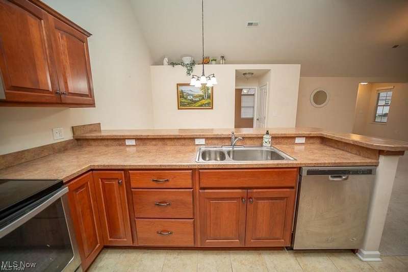 Welcome to this beautifully designed two-bedroom, two-bath condo offering comfort, accessibility, and an unbeatable location near Lake Erie. This corner unit features vaulted ceilings and abundant natural light that enhance its open, airy feel. The spacious living and dining areas flow effortlessly into a large sunroom, perfect for relaxing or entertaining year-round. Each bedroom includes a walk-in closet and a full private bath, ideal for guests or dual ownership. The kitchen is generously sized, with ample cabinetry and workspace for cooking and gathering. Thoughtfully planned wide doorways throughout ensure easy wheelchair accessibility, and there's in-house laundry plus an extra storage room for added convenience. Set in a desirable Huron community just minutes from Cedar Point, Sandusky's waterfront attractions, and Lake Erie marinas, this property offers an active lifestyle surrounded by recreation and leisure options. The community itself features walking paths, a fitness room, a clubhouse, and a sparkling pool, all located across from Plum Brook Country Club and Golf Course. This is low-maintenance living at its best. Spacious, accessible, and close to everything that makes Huron and Sandusky so vibrant. Perfect for year-round enjoyment or a carefree Lake Erie retreat.
