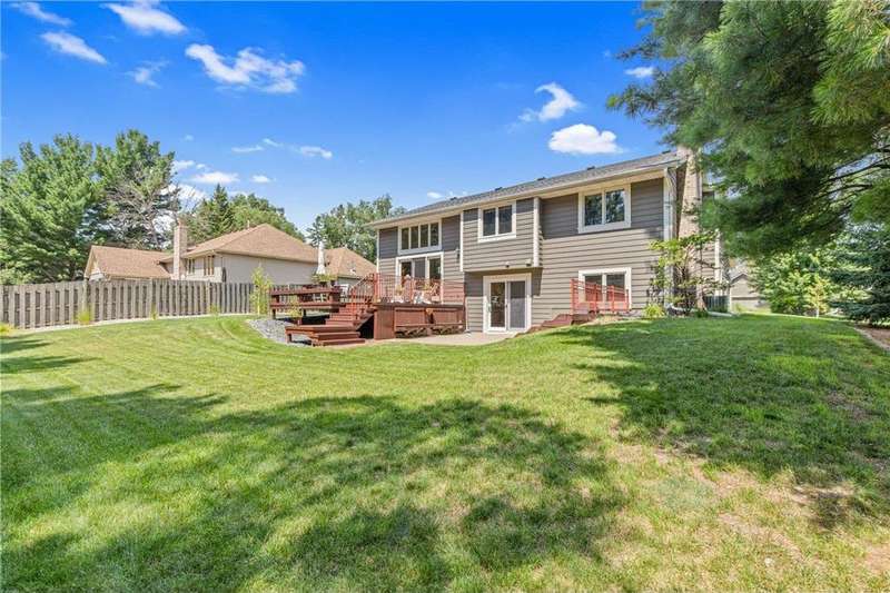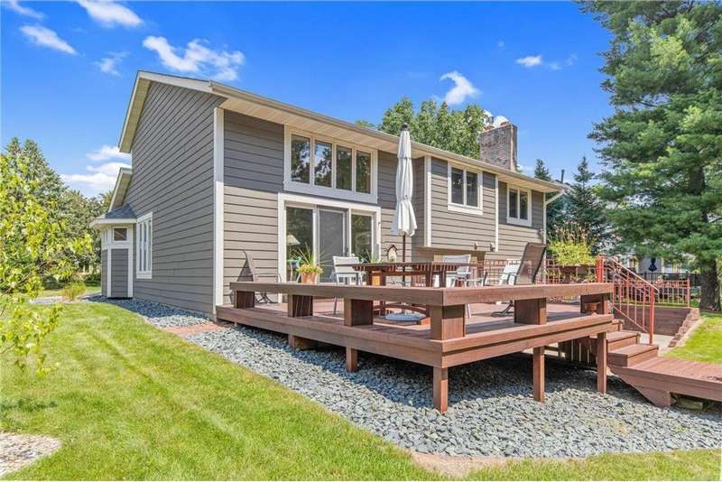 Multiple Offers Received, Highest and Best due Monday 8/4 by 8PM. Welcome to this beautifully maintained one-owner tri-level home nestled on a tranquil dead-end street in the heart of Shoreview. Boasting 1,798 sq ft of livable space, this residence offers 3 spacious bedrooms and 3 bathrooms, all within the prestigious Mounds View Public School district. Key features and updates include: open-concept layout perfect for entertaining, gleaming red oak hardwood floors throughout, new roof (2023) for peace of mind, beautiful Douglas fir 3 panel doors and woodwork throughout, expansive redwood deck overlooking a private wooded backyard, additional patio ideal for summer BBQs and relaxation. This home offers unmatched privacy while being just steps from scenic walking trails, lakes, and parks, perfect for outdoor enthusiasts and families seeking a quiet retreat. Live moments away from Turtle Lake's natural beauty, with easy access to shopping, dining, and major highways. Experience the perfect blend of suburban tranquility and urban convenience.