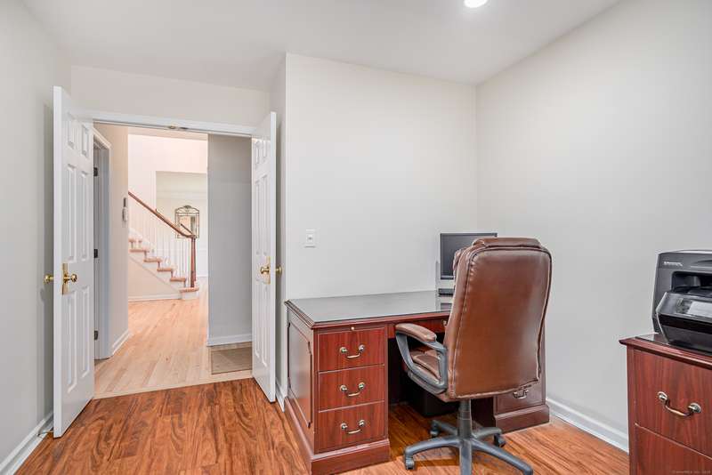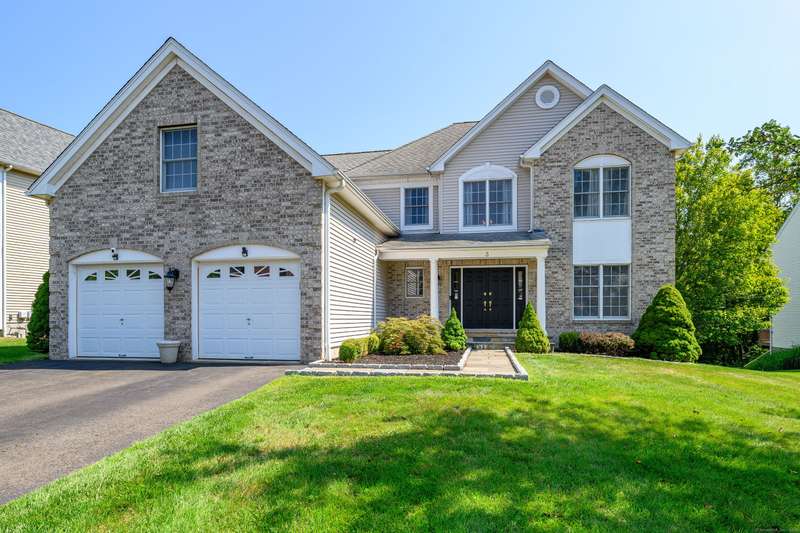 Rare offering at Ridgebury Estates, a Toll Brothers community near the NY border. Perfectly sited at the end of a quiet cul de sac and professionally landscaped, you'll find this spacious well loved home. Step inside to a sun-drenched two story foyer where newly refinished hardwood flooring leads you to an open living room and dining room space. Continue to the culinary kitchen hosting brand new stainless appliances and a center island with seating. Additionally there's room for a generous table and chairs. Company is never far away while meals are being prepared since the space blends seamlessly into the family room heralded by a gas fireplace and flanked by tall windows. Step out onto the deck to barbecue or read a book overlooking a private wooded setting. Need a work space at home? Revel in the oversized office on the main level where no one can see you. Head upstairs to be pleasantly surprised by the spacious primary suite with a sitting area and a custom dressing room which can e