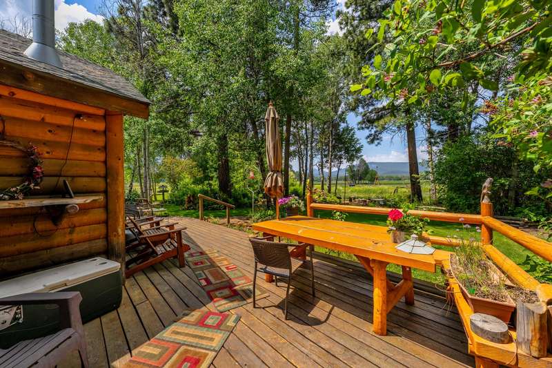 Mountain view ranch with cattle grazing in the summer and abundant wildlife year-round. This incredible 82.95-acre property features a 2,432 sq. ft. home with 3 bedrooms, 2 bathrooms, a 3-car garage, a large deck with covered porch, and stunning views of the ranch pasture and surrounding mountains. Forest service borders the property on three sides for added privacy and access to nature. Wildlife is everywhere—daily visits from 30-50 elk, Sandhill cranes in spring, summer, and fall, plus over 190 bird species recorded. Deer, coyotes, otters, wolves, weasels, mountain lions, bobcats, beavers, and bears all call this area home. Property highlights include a 24' x 30' log cabin hobby and craft room with spiral staircase to loft, a 40' x 48' barn, a seasonal pond, and a landscaped lawn with water feature and full sprinkler system powered by a 35 GPM well. A working ranch, wildlife retreat, or private mountain paradise—this property has it all!