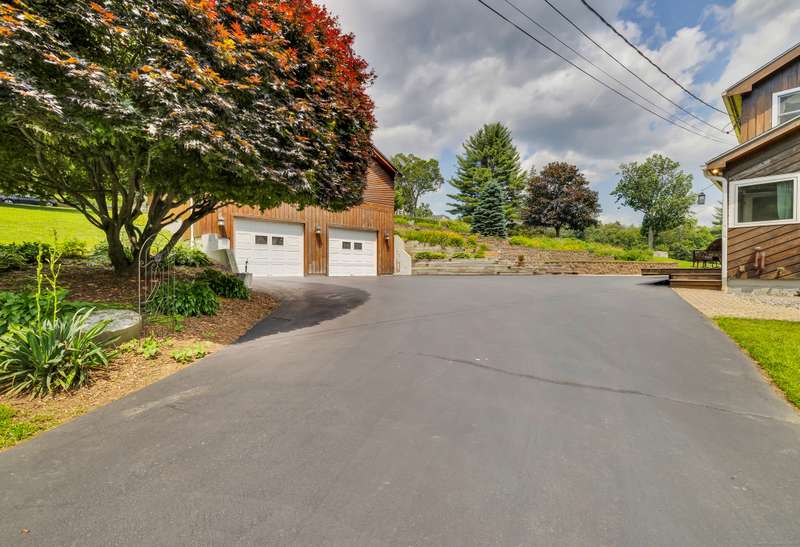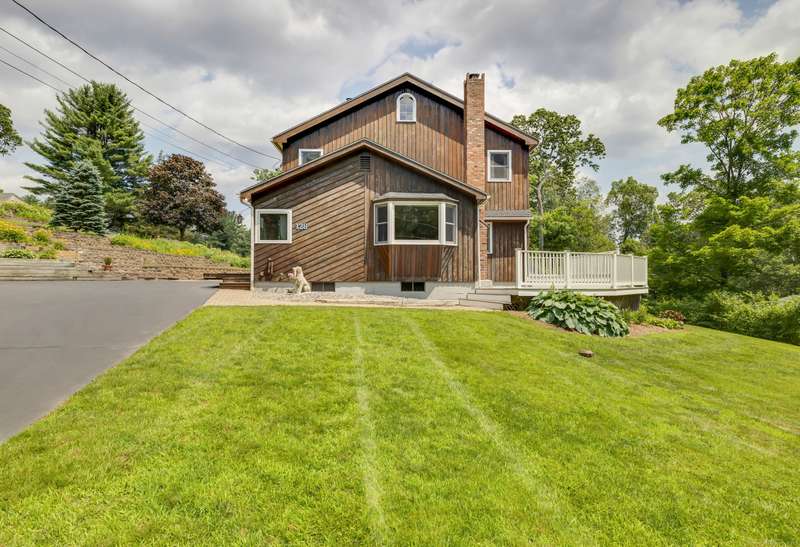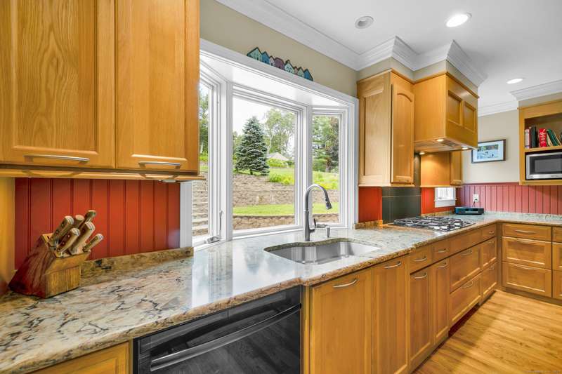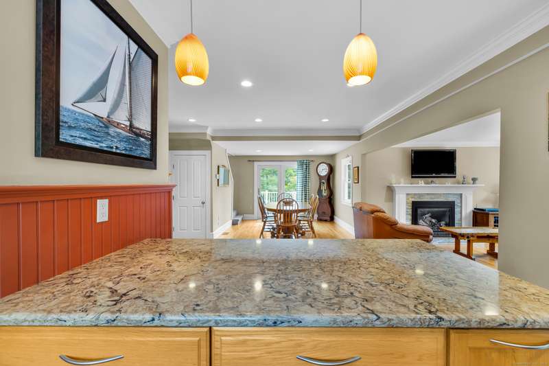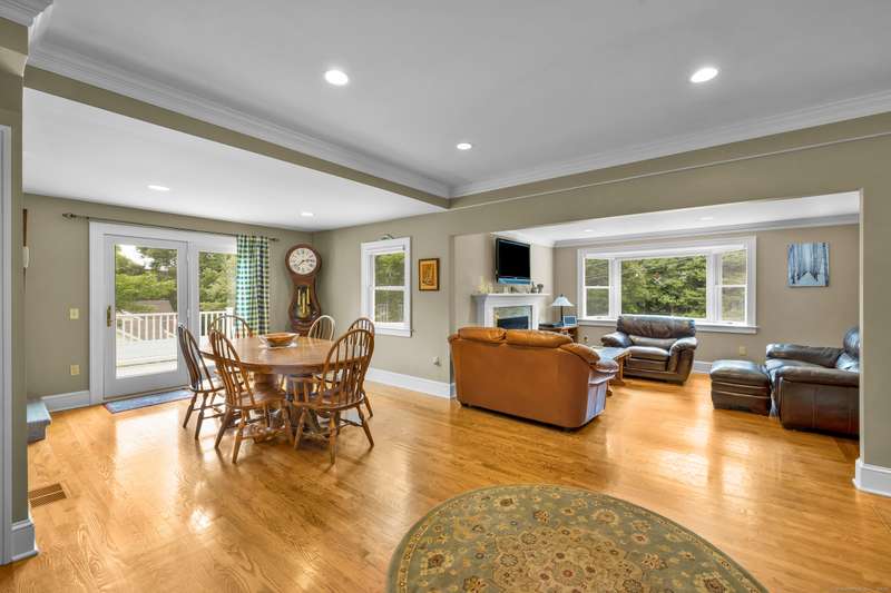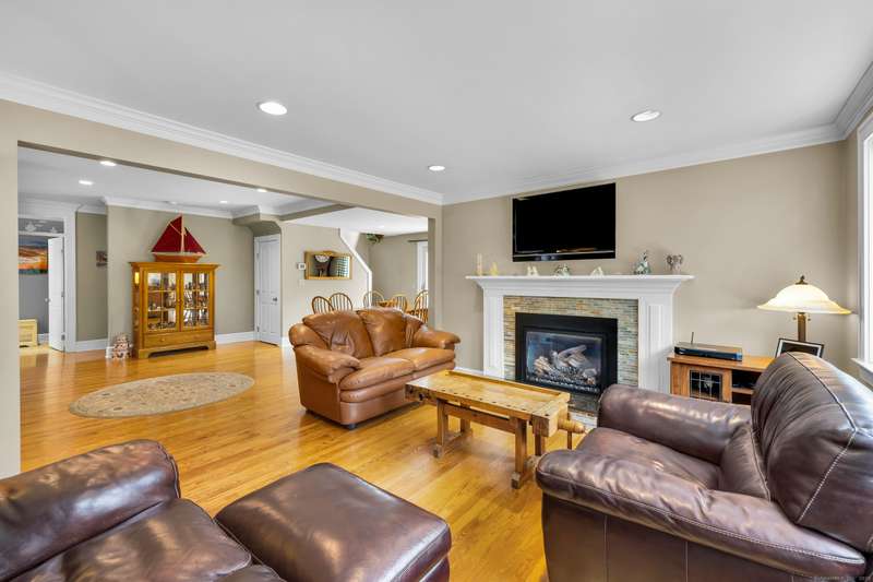 Welcome to 128 Holcomb Hill Road-a truly pristine and meticulously maintained property with significant updates and an unbeatable blend of comfort, style, and functionality. Major upgrades include a new roof (2024), boiler (2021), resealed driveway ( 2023), whole-house generator, first-floor remodel and plumbing (2014), attic insulation (2015), and much more! Step inside and be welcomed by a spacious tiled mudroom featuring wainscoting, dual closets, and an inviting atmosphere that leads into the beautifully remodeled Great Room. This open-concept space seamlessly combines the kitchen, living room, and dining area, enhanced by hardwood floors, crown molding, and recessed lighting throughout-ideal for both everyday living and entertaining. The kitchen is a chef's dream, complete with a breakfast bar, quartz countertops, bow window, double ovens, gas cooktop, and ample cabinetry. It flows effortlessly into the living room, where a cozy gas fireplace and bay window create a warm and invit