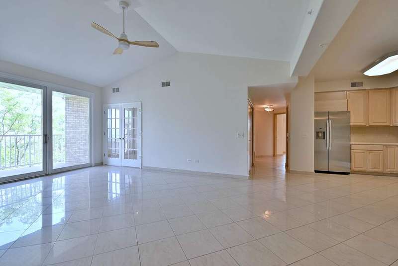 Welcome to this exquisite three-bedroom, two-bath corner unit condo, ideally situated on the top floor to provide maximum privacy and abundant natural light. Enjoy picturesque, unobstructed views of a serene, swan-filled pond from multiple vantage points throughout the home. The open floor plan features soaring ceilings and a spacious living area that flows seamlessly into the dining and kitchen space-perfect for everyday living or entertaining. Inside, you'll find elegant marble flooring, freshly painted walls, updated kitchen appliances, and the convenience of in-unit laundry. The kitchen offers generous cabinet and counter space, making meal prep a breeze. The luxurious primary suite includes its own private balcony, perfect for relaxing and taking in the scenic surroundings. Two additional, generously sized bedrooms offer flexible options for guests, a home office, or additional living space. With two private balconies, you'll enjoy plenty of outdoor space to unwind. The well-maintained community features walking paths, a tranquil pond with a charming gazebo, beautifully landscaped grounds, and the convenience of a heated garage with additional storage. Combining comfort, style, and natural beauty, this rare top-floor unit is a true gem. Don't miss your opportunity to make it your new home!
