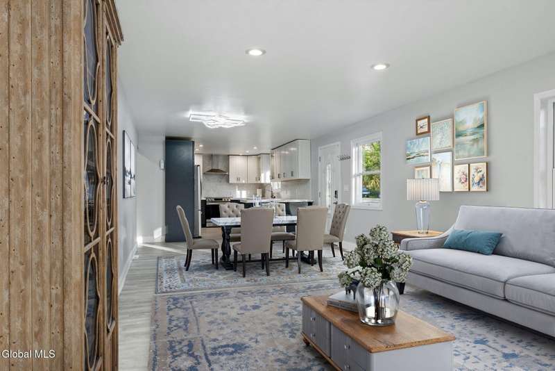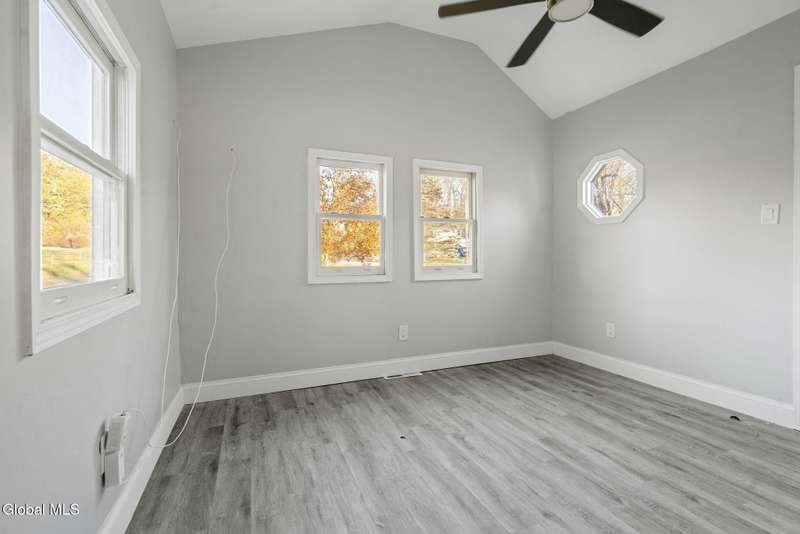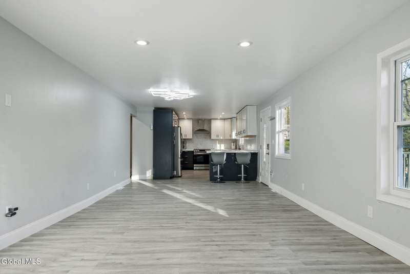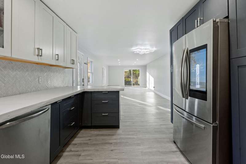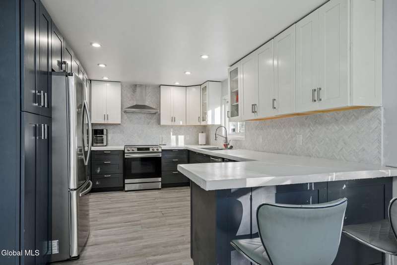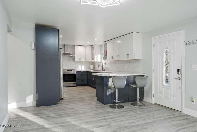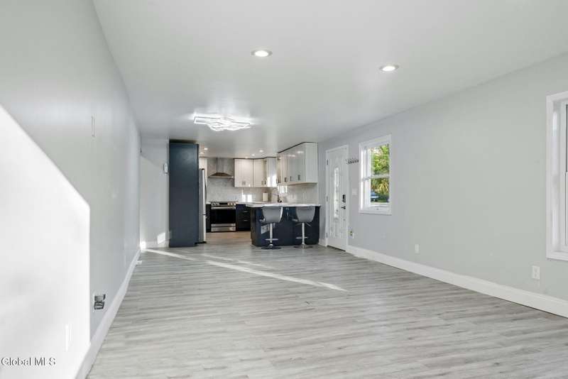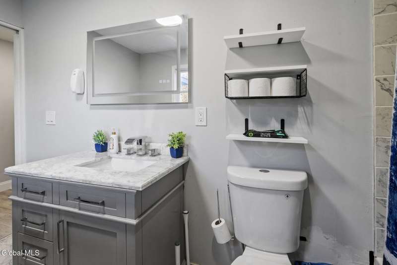 MOVE-IN READY! This stunning home in North Troy was renovated from the studs in 2022 and offers an open-concept layout designed for modern living. The brand-new kitchen is a true showstopper, featuring custom concrete countertops, beautiful recessed lighting, a stylish backsplash, sleek cabinetry, and stainless steel appliances. This house includes a NEW roof, plumbing, flooring, electrical, furnace, hot water tank, and many new windows, giving you peace of mind for years to come! The oversized primary suite is your private retreat, boasting a large walk-in shower and dual vanities with his-and-her sinks. Both bathrooms have been meticulously renovated with tasteful, contemporary finishes. Upstairs, you'll find a cozy bedroom with a charming skylight window that fills the space with natural light. Set on a 0.66-acre lot with plenty of road frontage, this property offers great outdoor space, complete with an above-ground pool (brand new liner) and a large basement for extra storage. Located just five minutes from shops/stores, this home blends privacy and convenience. Schedule your showing today!