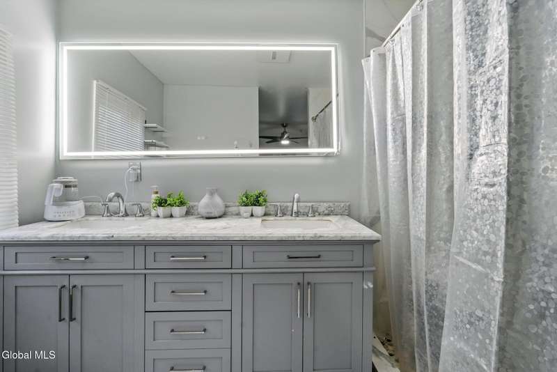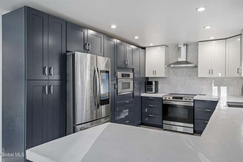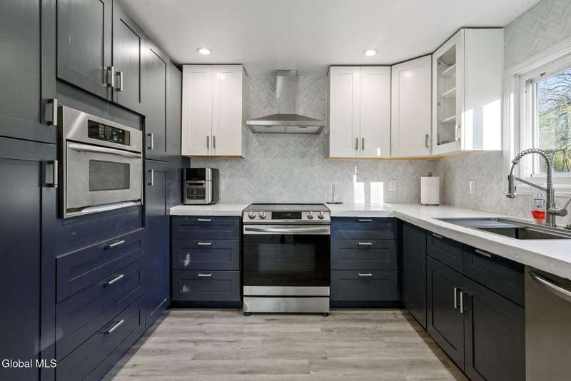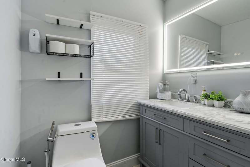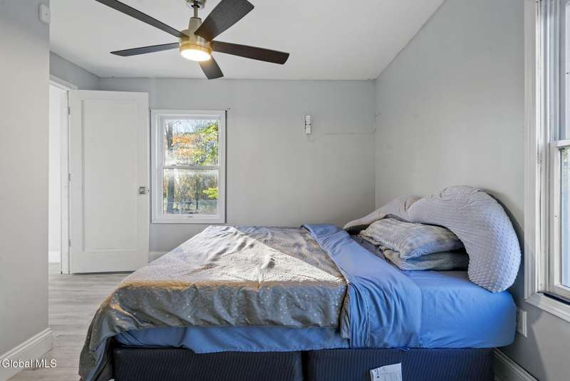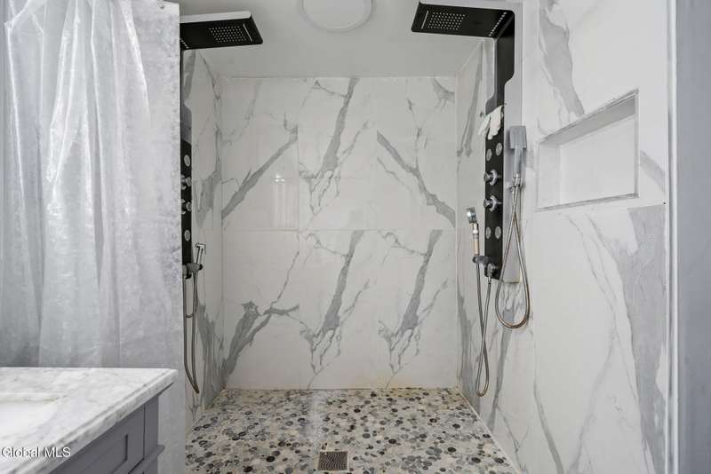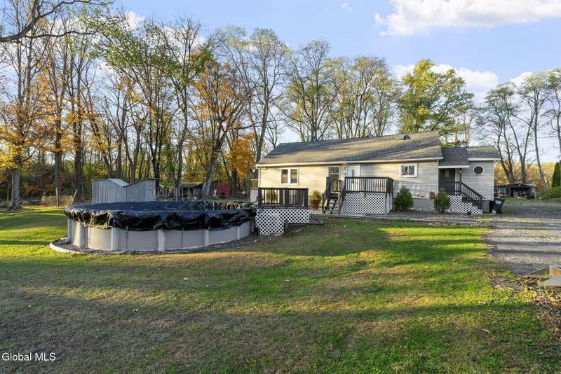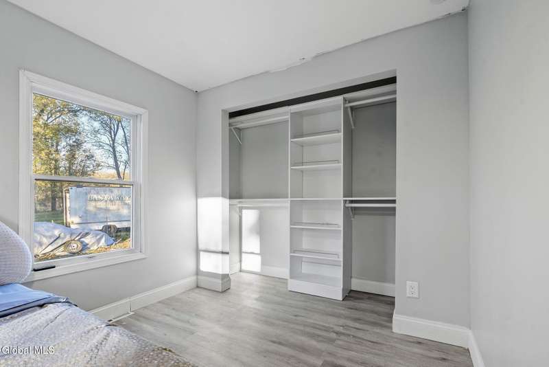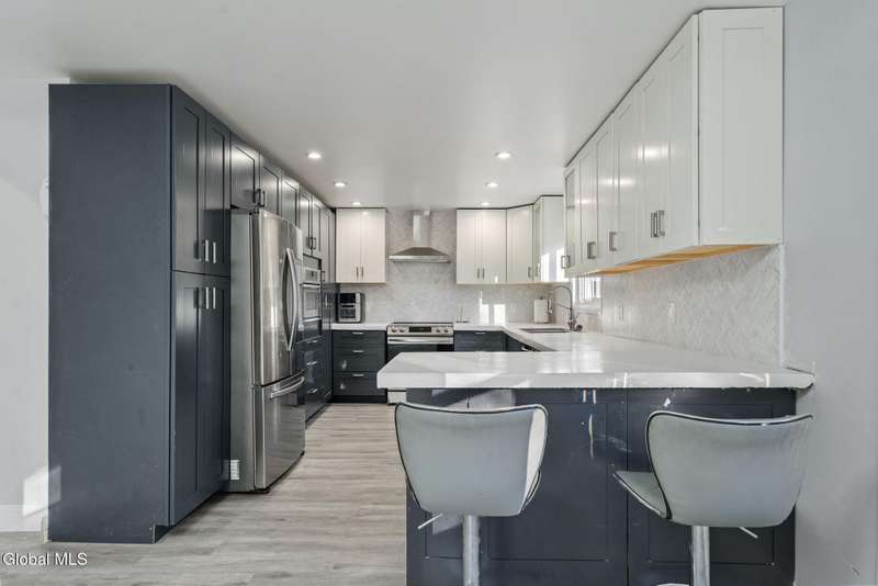 MOVE-IN READY! This stunning home in North Troy was renovated from the studs in 2022 and offers an open-concept layout designed for modern living. The brand-new kitchen is a true showstopper, featuring custom concrete countertops, beautiful recessed lighting, a stylish backsplash, sleek cabinetry, and stainless steel appliances. This house includes a NEW roof, plumbing, flooring, electrical, furnace, hot water tank, and many new windows, giving you peace of mind for years to come! The oversized primary suite is your private retreat, boasting a large walk-in shower and dual vanities with his-and-her sinks. Both bathrooms have been meticulously renovated with tasteful, contemporary finishes. Upstairs, you'll find a cozy bedroom with a charming skylight window that fills the space with natural light. Set on a 0.66-acre lot with plenty of road frontage, this property offers great outdoor space, complete with an above-ground pool (brand new liner) and a large basement for extra storage. Located just five minutes from shops/stores, this home blends privacy and convenience. Schedule your showing today!