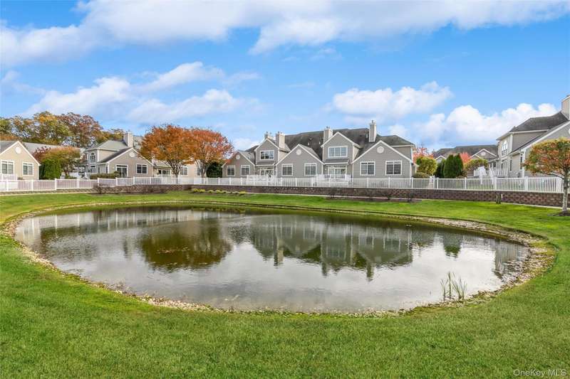 Welcome to 95 Cove Lane. True pride in ownership shines through in this beautiful sundrenched pond front condo located in the exclusive gated community of Setauket Meadows. The property offers 2 bedrooms, 2.5 baths, grand two story entry foyer, eat in kitchen with Lariat Cherry Wood cabinets, Bianco Romano granite counter tops and stainless steel appliances, formal dining area / living room with hard wood flooring, floor to ceiling Castle stone Fireplace with wood mantel - an amazing focal point- and vaulted ceilings. This impeccably maintained space has a first floor primary en-suite with walk in closet, updated full bathroom ( 2023) and wood floors. Second floor bedroom, second floor full bath, den/loft area gazing down into your living space and second floor bonus study. Efficient natural gas for heat (2022) and cooking, full basement w/ 10 foot ceilings, 1 car garage, Central air (2022) and sewers. Additional amenities include 46 high hats, three ceiling fans, central vacuum, full house humidifier & humidistat and full house Aprilaire air cleaner. Home is situated on quiet street with lovely deck with awning and privacy screen for entertaining. Deck overlooks a scenic pond with fountain. Community offers amazing amenities with club house, indoor / outdoor pools, tennis courts, walking trails, and water features. Setauket Meadows lends itself to amazing local amenities and services. Three hospitals within minutes, Stony Brook, Mather and St. Charles hospitals. Cultural opportunities abound, Stony Brook University with its Wang and Stellar Centers, The Reboli Center, The Jazz Loft and the Long Island Museum. Natural wonders await... Stony Brook beach, West Meadow and Cedar Beach, Avalon Nature preserve, The Greenway Trail, The Frank Melville Memorial Park and countless other local natural spaces. Minutes to historic Stony Brook Village and the nautical New England village of Port Jefferson, where you can hop on the ferry and whisk yourself off to New England. Restaurants and boutique shopping abound. Did I mention two Long Island Railroad stops? Jump on the train and head into the most exciting city in the world. If you are looking for a lifestyle community with the very best in 55+ living look no further than Setauket Meadows.... Life long memories will be made here!