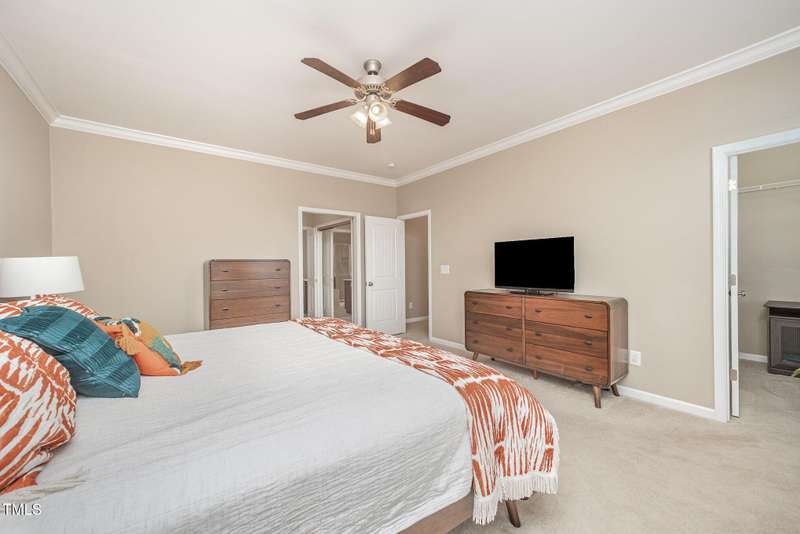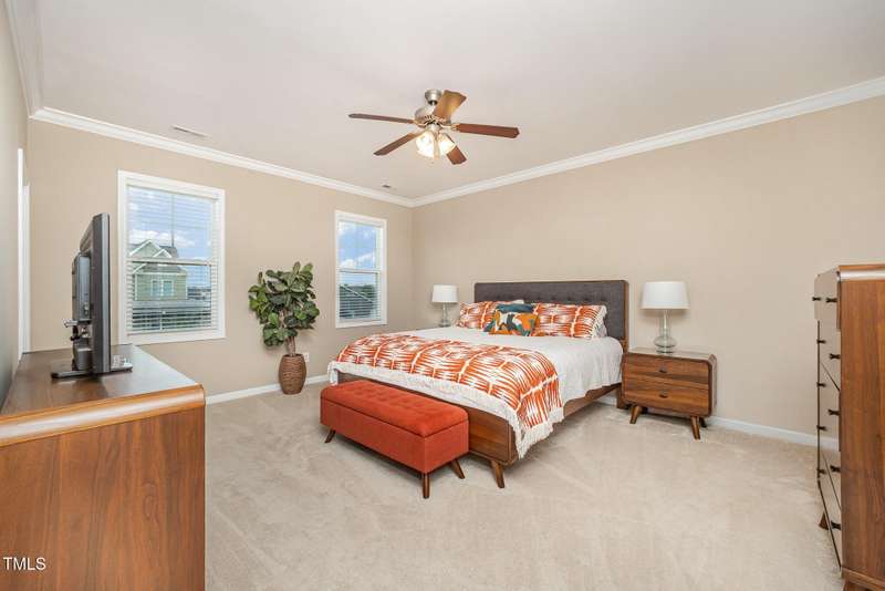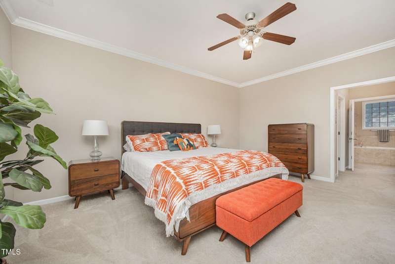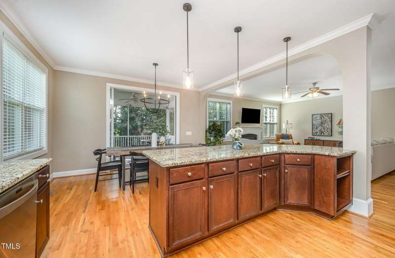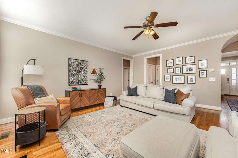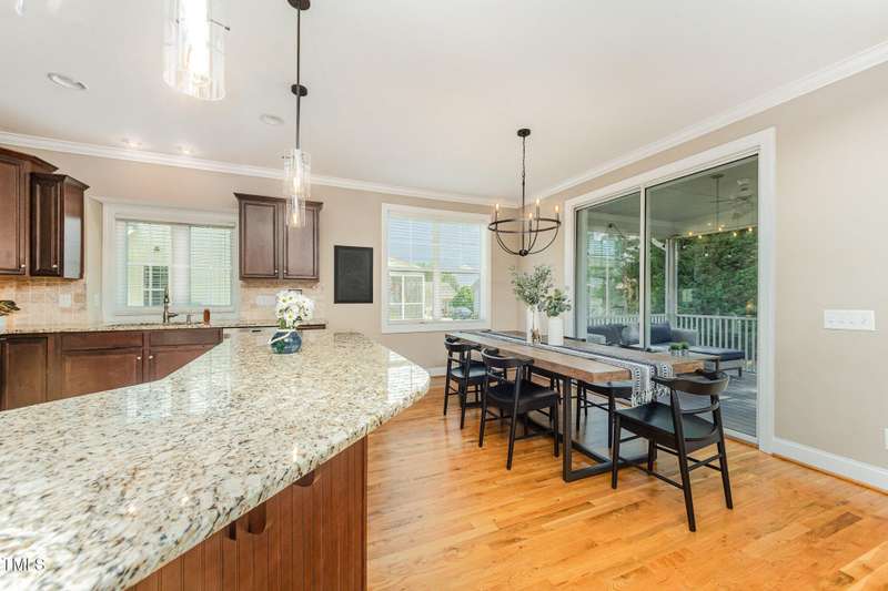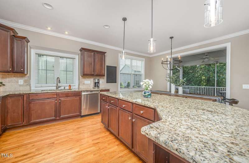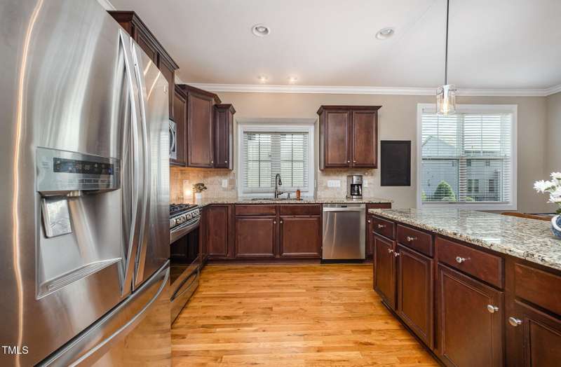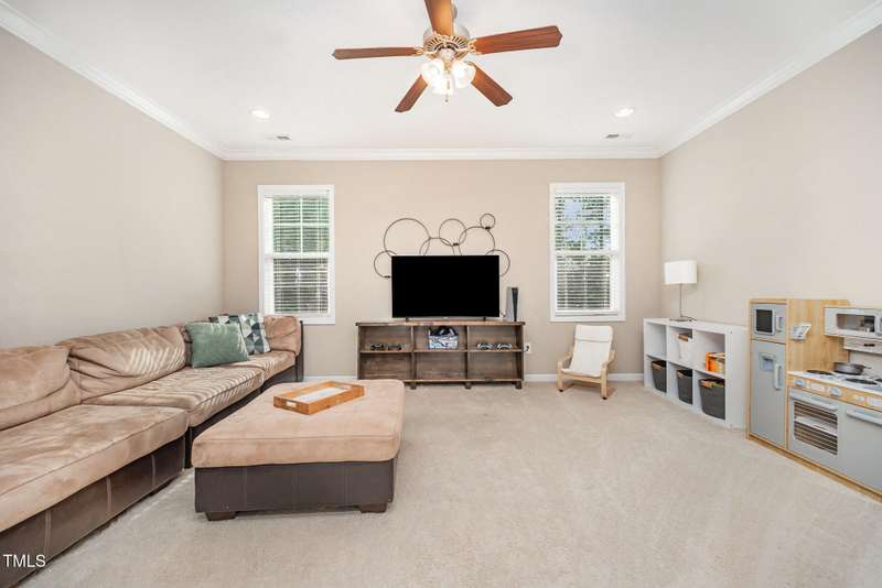Welcome to this beautifully maintained 5-bedroom, 3-bath home with a spacious bonus room in the sought-after Carlton Pointe neighborhood! First-floor guest suite with full bath. Stunning kitchen with granite, stainless appliances, and a large island. Gorgeous screened-in porch with pocket sliding doors brings the outdoor in. Cozy family room with gas fireplace. Custom built-ins & wood beams in the dining/office area, could also be used as a home office. Spa-like primary suite with 3 closets, 2 are walk-in's, and a luxurious bath. Fully fenced backyard and meticulously landscaped. Enjoy the paved walking trail around the neighborhood for relaxing strolls or exercise! Fantastic location! Walk to the new Wallbrook Shopping Center & Publix - and quick access to Hwy 401 & I-540! This home truly has it all - style, space, and a prime Rolesville location!