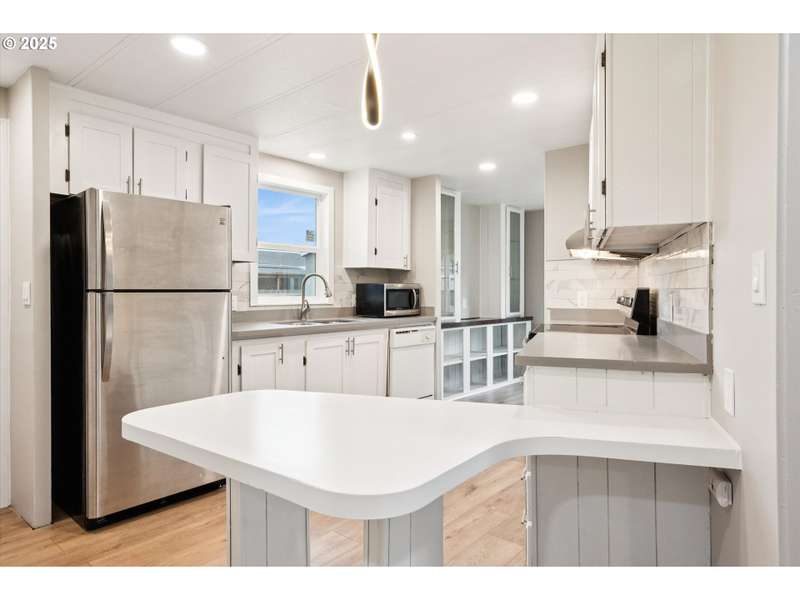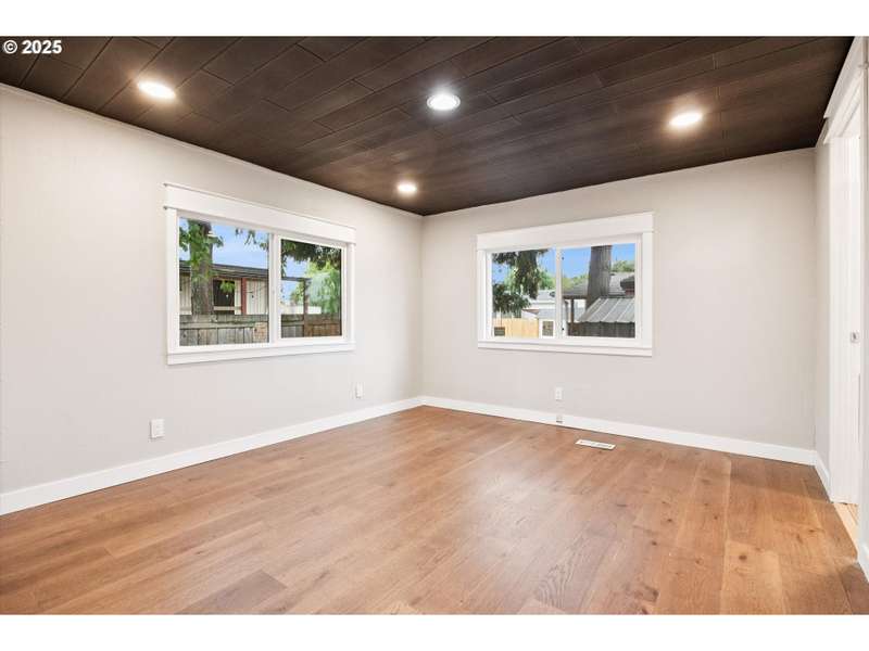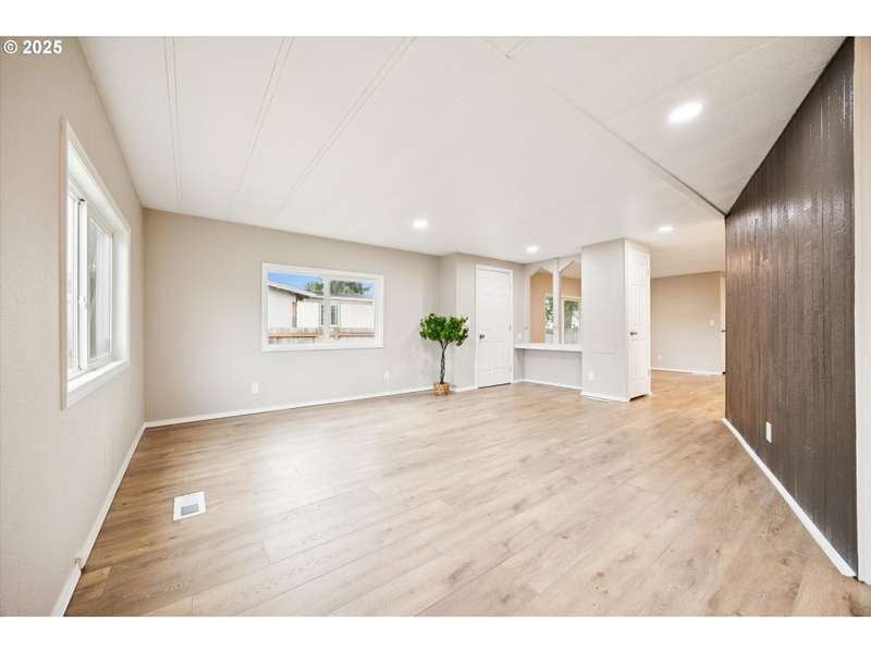 Spacious and fully remodeled manufactured home in the excellent community of Oak Acres Mobile Home Park. Covered deck leads you into the beautifully updated kitchen with ss appliances and built in bar. Formal dining space with built ins. Large family room with accent wall and access to private and partially fenced backyard. 2nd family room/dining with wet bar could easily be converted into a 3rd bedroom. Both bedrooms are set up as suites with beautifully updated full baths. Primary suite has a soaking tub and walk-in shower. Both bedrooms have stunning accent ceilings. New heat pump, washer and dryer included, new flooring, new decks, new siding and fresh interior and exterior paint. Back and side yard are private and include a tool shed. Tool shed could be moved or removed for more parking. Space rent is $929/month includes a rentable venue space in a historic 1920s barn, large pool and laundry. Greenspaces throughout for recreation, basketball courts and pets. Don't miss this incredible opportunity to live in the Oak Acres community.