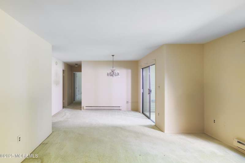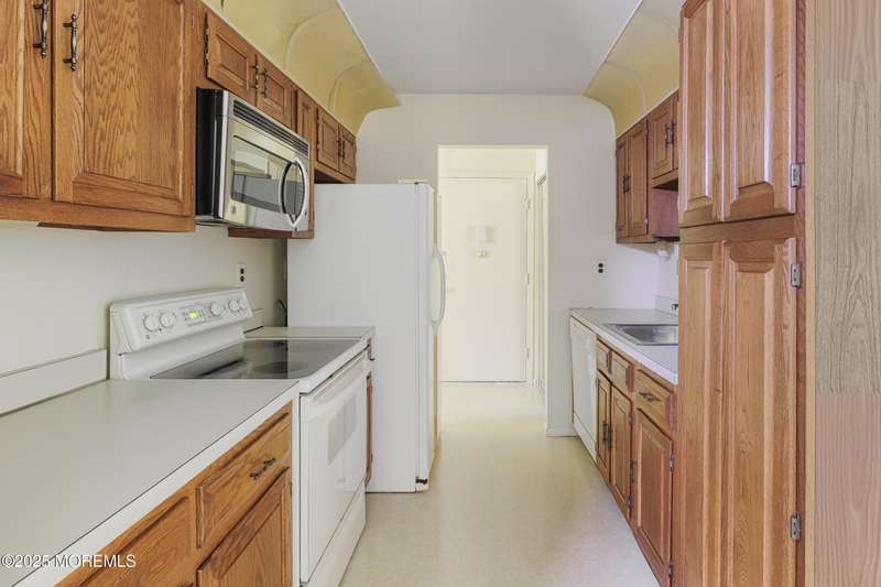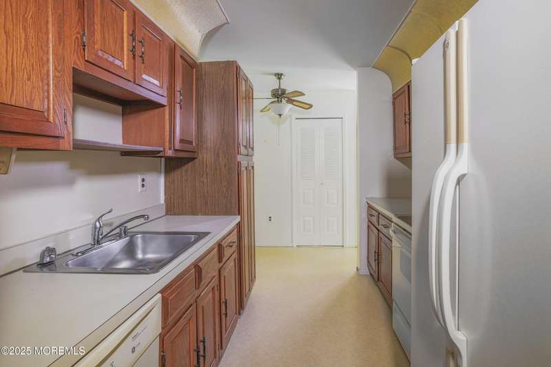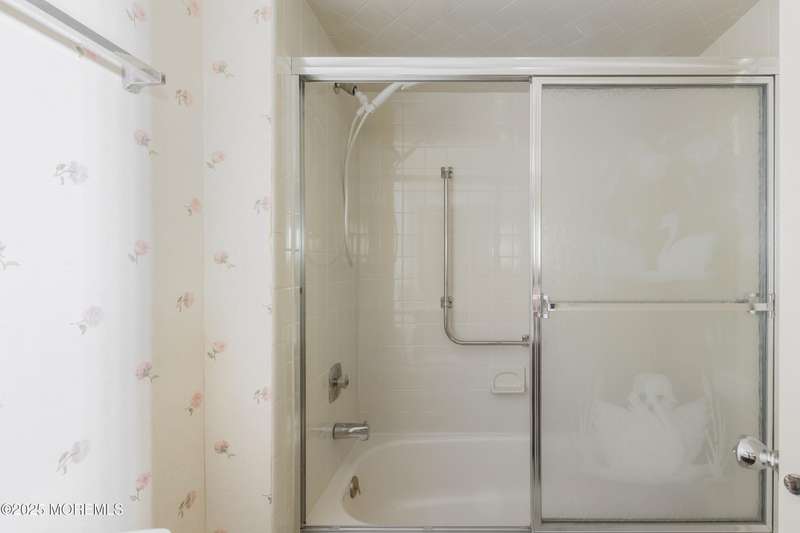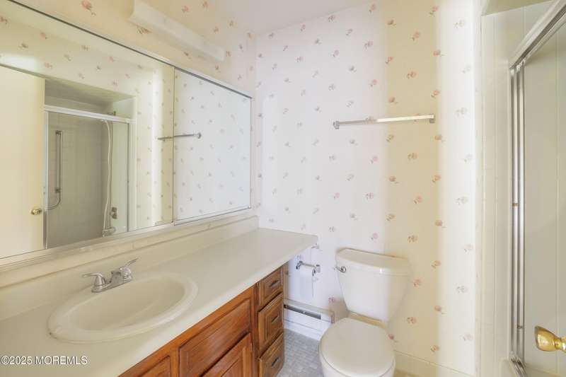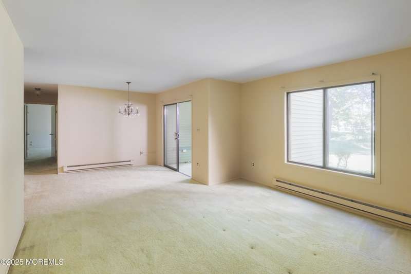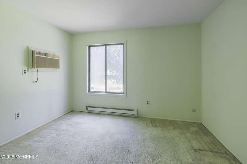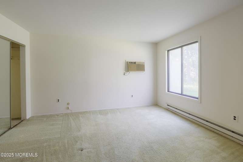 Ground level living in 55+ Covered Bridge II with two bedrooms and two full baths. No stairs. The sunroom looks out to a quiet wooded backdrop for slow mornings and easy evenings. In-unit laundry adds everyday ease, there is one assigned parking space, and low HOA fees. Interiors are ready for your updates. Life here comes with a long list of amenities. Two clubhouses, outdoor pools, fitness rooms, tennis and bocce, shuffleboard, billiards, arts and crafts, a woodworking shop, library, gardening plots, and walking paths, plus a full calendar of clubs and activities. Everyday shopping and dining along Route 9 are minutes away.