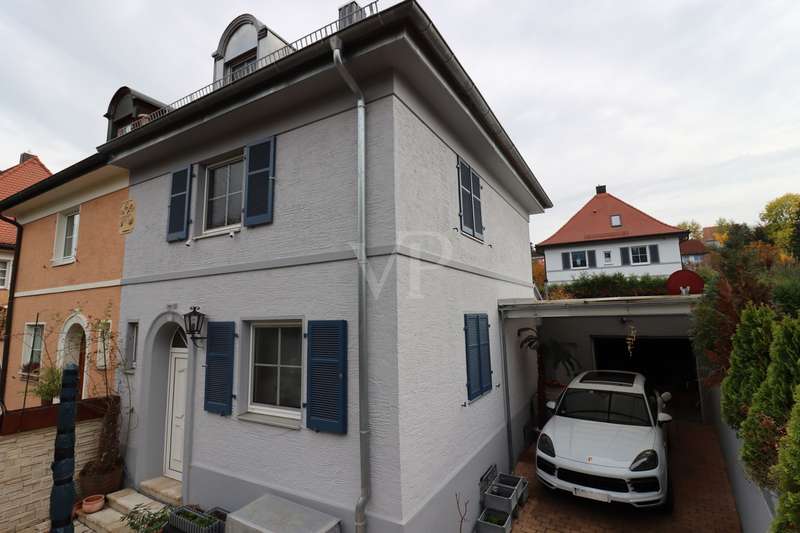 Welcome to your new home directly in Ansbach! A semi-detached house with a full basement and many extras awaits you on a plot of approx. 280 m² with a beautifully landscaped garden. The property offers a surprising amount of space on approx. 100 m² of compact living space spread over four levels. Built in 1927, this gem impresses with its magnificent exterior. The mansard roof, the shutters and the round entrance door make the property a real eye-catcher. The owners have adapted the house to current requirements with various modernizations in recent years. The first floor consists of the entrance area, the bedroom, the guest WC, the pantry and the spacious kitchen with a modern fitted kitchen and access to the terrace. The covered and sheltered terrace with a view of the mature garden is the absolute highlight of this floor. On the upper floor is the spacious living room with a Swedish stove, which provides cozy warmth in the colder months. The custom-made built-in wardrobes offer plenty of storage space. Opposite is the spacious daylight bathroom with shower, WC, double washbasin and bathtub. The converted attic is ideal as a retreat, guest room or teenager's room. It consists of a bedroom, a storage or dressing room and a cozy hallway. There is plenty of storage space in the fully tiled basement. The laundry room is also located here. The garden becomes your own idyll in the middle of the city of Ansbach. The shrubs and trees also provide privacy for the covered arbor behind the garage. There is another seating area on the south side of the house. Here you can enjoy the sun, protected from view by the natural stone wall. You can park your car conveniently in the garage with wallbox or in the carport in front of it. The building was constructed in solid construction and offers plenty of living quality for couples or a small family. The property has been constantly maintained and modernized by the owners. All the furniture can be taken over. See the unique location and the quality of this house for yourself at a personal viewing appointment.