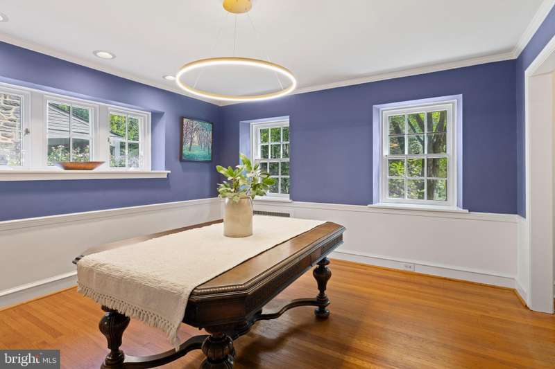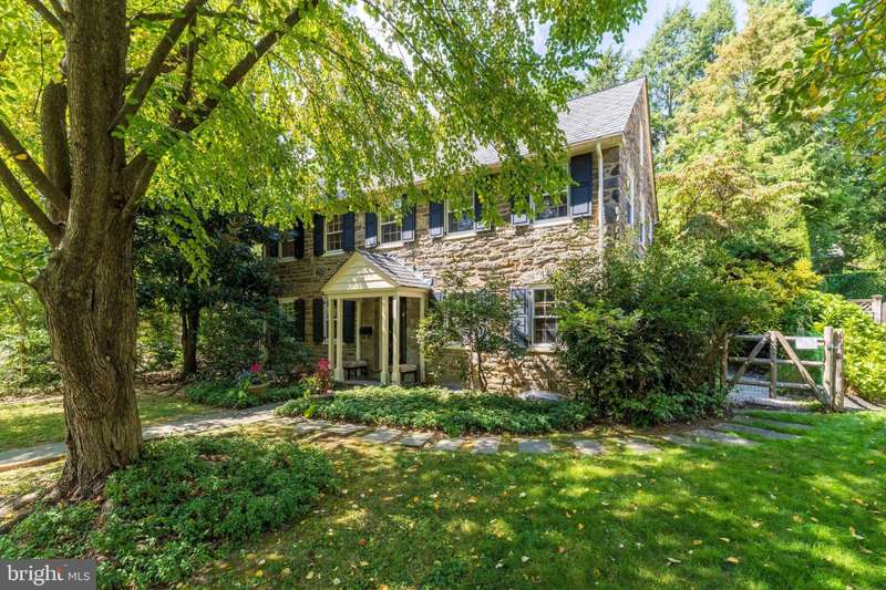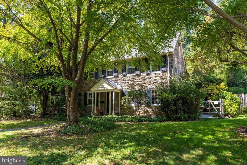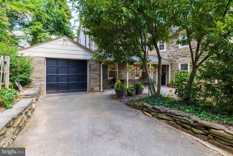 Extraordinary Wissahickon Schist Colonial Across from McMichael Park. This stately Center Hall Colonial offers timeless character, generous living space, and an unbeatable location in East Falls. Beautiful oak floors flow throughout, greeting you upon entry. The spacious living room spans the full depth of the home, filled with natural light from three exposures and anchored by a handsome gas fireplace. Across the hall, the formal dining room features chair rail, abundant windows, and a new chandelier. The bright, modern kitchen opens to a comfortable family room and breakfast nook, complete with granite counter tops, double wall ovens, stainless steel cooktop, dishwasher, disposal, and breakfast bar. A convenient powder room is tucked behind the dining nook. The Steinway Grand Piano in the family room is available for sale. From the side mudroom, enjoy easy access to the fenced patio and covered porch-perfect for entertaining or relaxing. This side yard also includes the driveway and attached garage, while a second, expansive fenced backyard behind the garage offers endless gardening or play space amid mature specimen trees and shrubs. Upstairs, you'll find four generously sized bedrooms, including a spacious primary suite that spans the entire side of the house with windows on three exposures and an ensuite bath. Each additional bedroom is bright with windows on two sides, and one serves as a walk-through room. A full, floored attic with built-in storage and brand-new central A/C equipment provides exceptional storage or expansion possibilities. The finished lower level adds even more flexible living space, along with abundant storage. Freshly painted throughout, this home blends original details-woodwork, floors, and deep windowsills-with thoughtful updates for modern living. Set directly across from McMichael Park playground, the home enjoys serene views and walkable access to Midvale Train Station, East Falls' shops and restaurants, Jefferson University, Penn Charter, and just minutes to Center City.