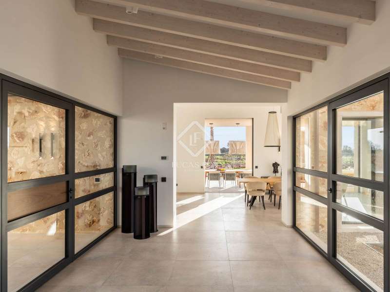 Experience Timeless Elegance in the Heart of Santanyí Discover this exceptional finca nestled in the peaceful countryside just outside the picturesque village of Es Llombards, in the sought-after southern region of Mallorca. Only 10 minutes from the island’s most breathtaking beaches — Caló del Moro and Cala S’Almonia — this property offers the perfect blend of tranquil living and coastal charm. Set on an expansive 17,000 m2 plot, this stunning estate boasts 431 sqm of beautifully designed living space, where every detail speaks of quality and comfort. Inside, you’ll find 4 luxurious en-suite bedrooms and a guest restroom, ideal for hosting family and friends. The master suite is a true retreat, featuring a cozy lounge area, walk-in dressing room with workspace, elegant bathtub, and a private terrace with panoramic countryside views. The open-concept living room invites you in with its warm stone fireplace, exposed wooden beams, and contemporary design, seamlessly connecting to a state-of-the-art COCINART kitchen — perfect for both everyday living and entertaining. Enjoy modern comforts all year round with centralized air conditioning, underfloor heating, and a smart home system for effortless control of your environment. A double garage completes the home, offering secure space for your vehicles and storage. Whether you’re dreaming of a serene family residence, a Mediterranean escape, or a refined investment in one of Mallorca’s most desirable locations — this finca delivers on every level. Luxury. Tranquility. Lifestyle. Schedule your private viewing today and step into your future home in Santanyí.