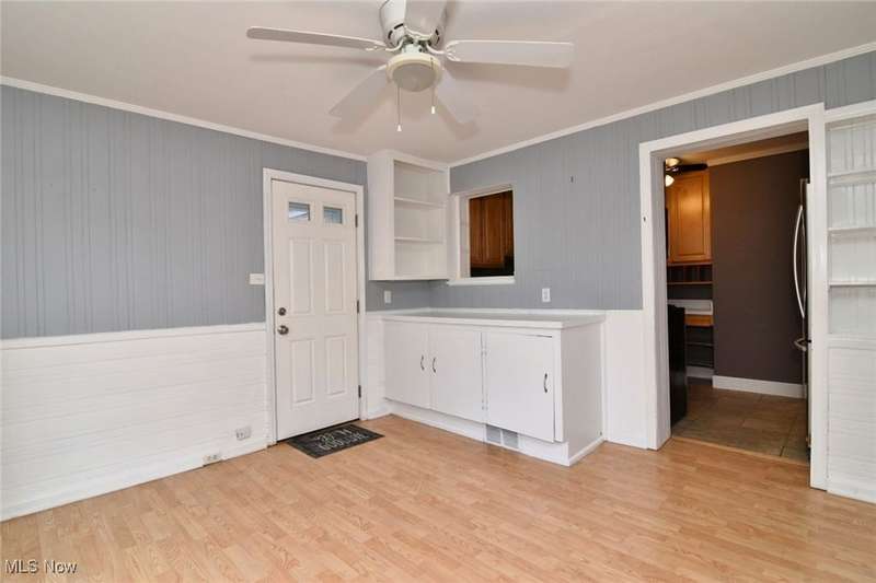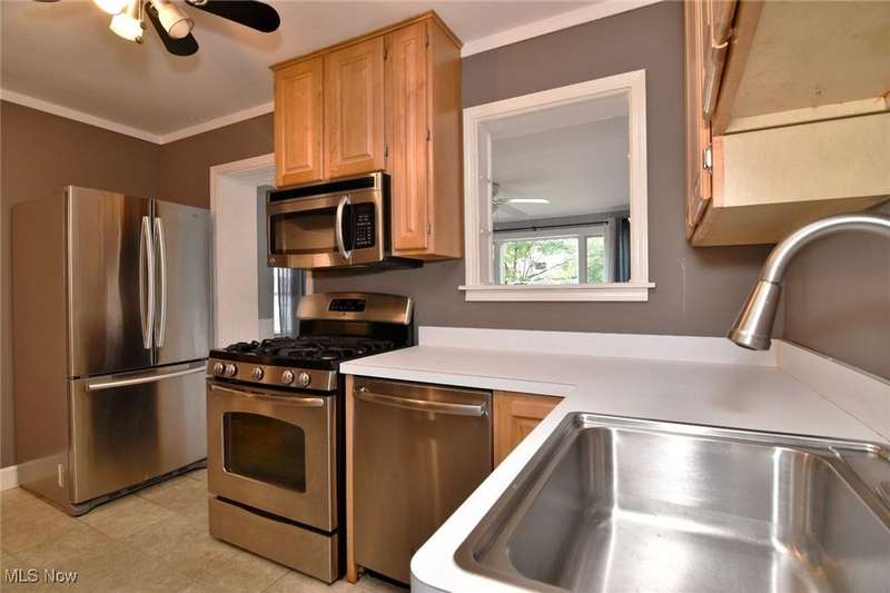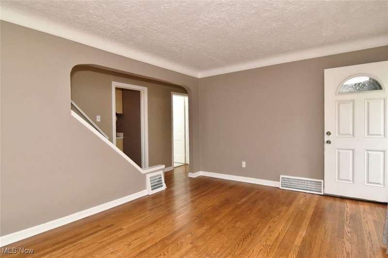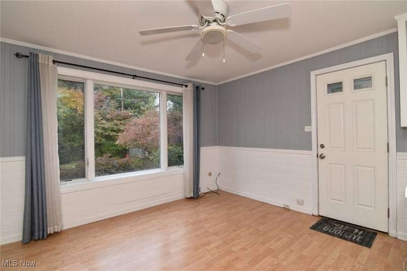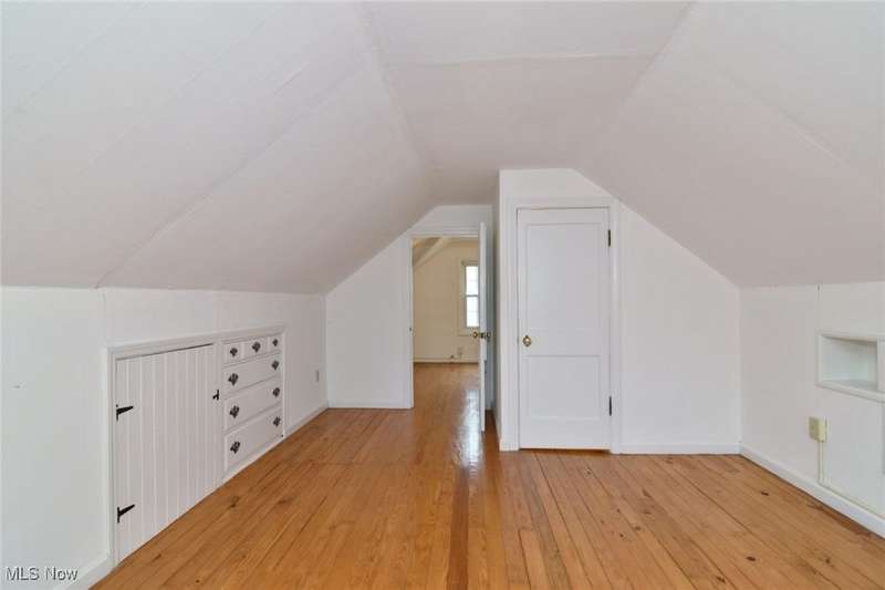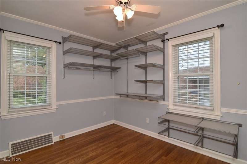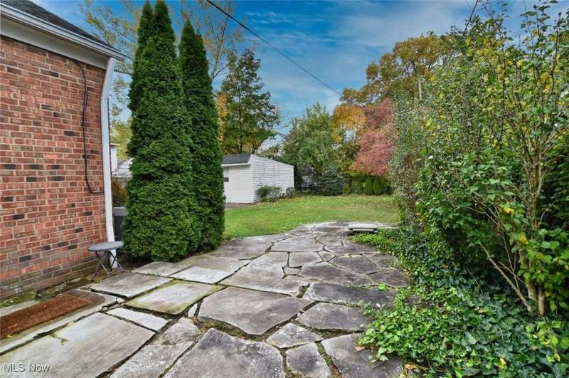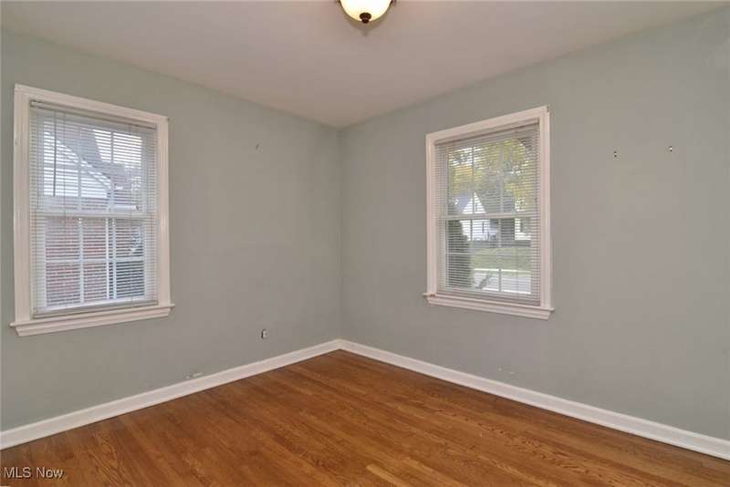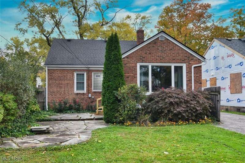Classic South Euclid brick Cape Cod featuring natural light, hardwood floors, and a fenced backyard. The living room includes a large picture window that brightens the space. The kitchen connects to a dining/sunroom with access to the stone patio and yard, ideal for outdoor enjoyment. Two bedrooms are on the first floor, including one currently used as a dressing room. The third bedroom is upstairs and offers additional living space and storage. The full bath has been updated and the half bath adds convenience. Neutral decor and a full basement complete this inviting home located close to shops, restaurants, parks, and schools.