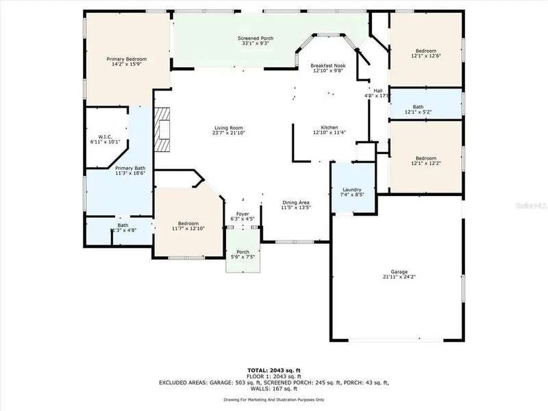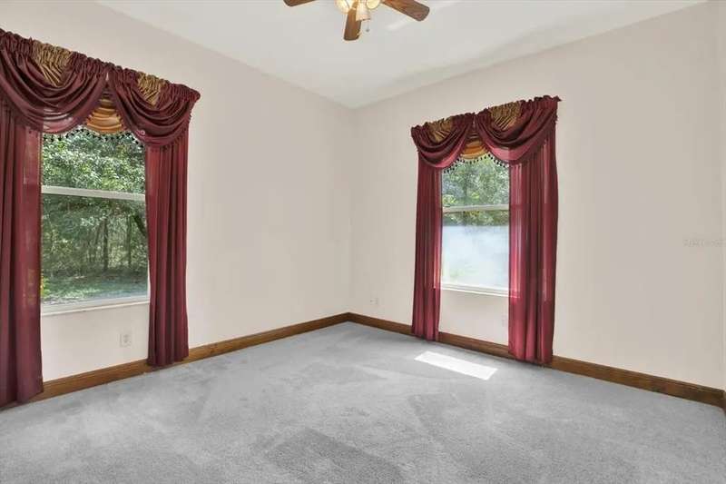 Welcome to this beautifully maintained 3BR/2BA home on 3.42 acres, offering 2,242 sq ft of comfortable living space. Major updates include a new roof (2024) and HVAC system (2025), providing peace of mind for years ahead. The kitchen is designed with wood cabinetry, stainless steel appliances (2022), and tile flooring, with the washer and dryer included. The owner’s suite features luxury vinyl plank flooring and a jacuzzi tub, while the secondary bedrooms and living areas are finished with soft carpeting. A separate laundry room with tile flooring adds everyday convenience. Step outside and enjoy a property built for lifestyle and leisure. Expansive acreage is ideal for four-wheeling, gatherings around the newer fire pit, or simply enjoying the privacy of your own retreat. Additional features include RV hookup with water and electric, plus a separate storage shed. Blending modern updates with the freedom of acreage living, this home offers a unique opportunity to enjoy both comfort and adventure.