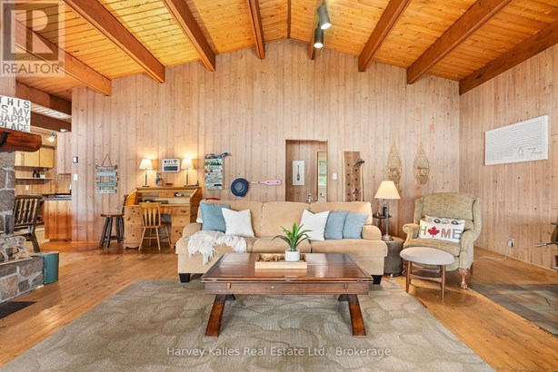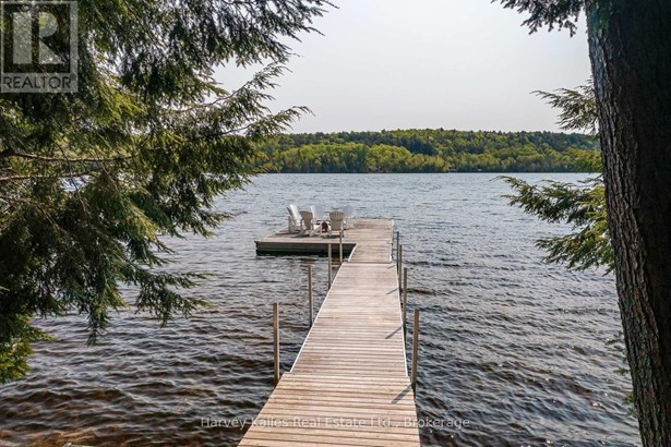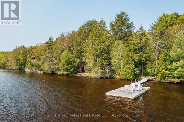 Endless possibilities surround this classic Muskoka cottage on Oxbow Lake. Offering 390' of frontage and a sizeable, level lot, this property is host to a charming 3-season cottage with soaring ceilings, spectacular views and generously sized rooms to easily entertain guests. Three large bedrooms will comfortably accommodate large families and the sprawling family room is a perfect spot to gather. The Muskoka room creates a fantastic space to enjoy the sights and sounds of the outdoors while escaping the elements. Spend long summer days at the waters edge just steps from the cottage and take advantage of the sandy entry to the lake, the large dock for your boat or lounging and the peaceful surroundings of Oxbow Lake. Being sold completely turn-key with most furnishings included, this cottage is ready for your next summer vacation or explore the option to convert the space to a year round getaway. The electrical has been updated, so the property is ready if you want to explore the option to rebuild and a new storage garage has been constructed to easily store toys and lawn equipment. Ample parking, year round access, just a short distance to the Limberlost Forest and Wildlife Reserve, 30 minutes to Algonquin Park and less than 25 minutes to downtown Huntsville. (id:16999)