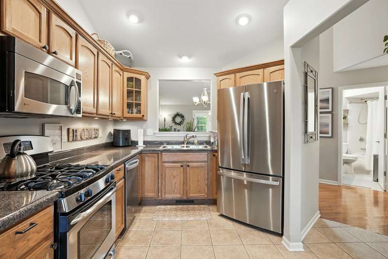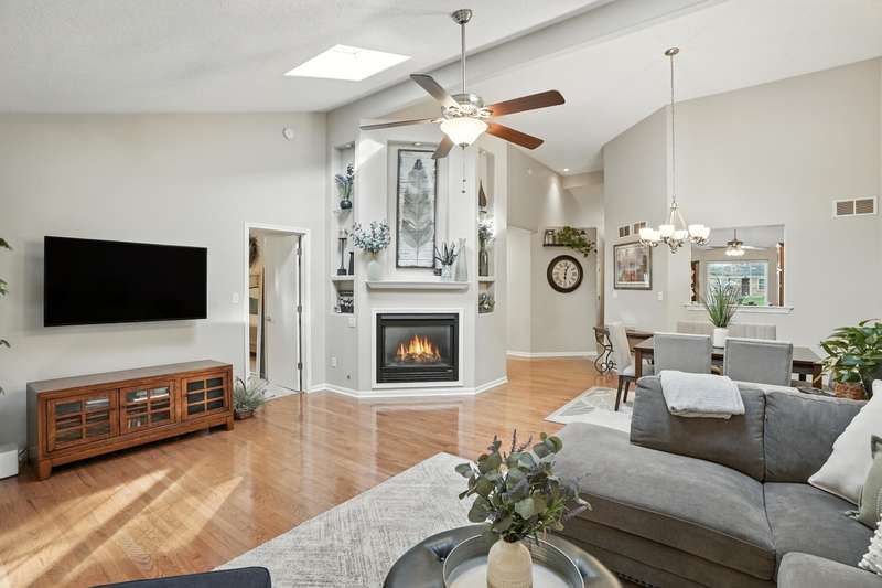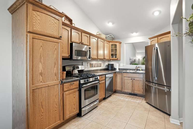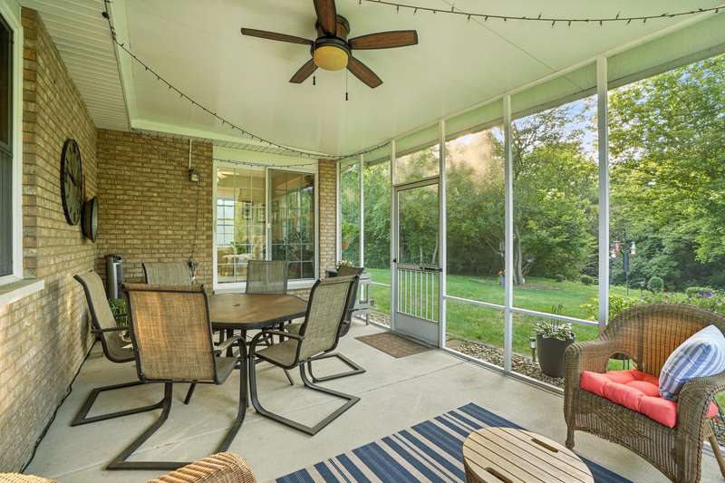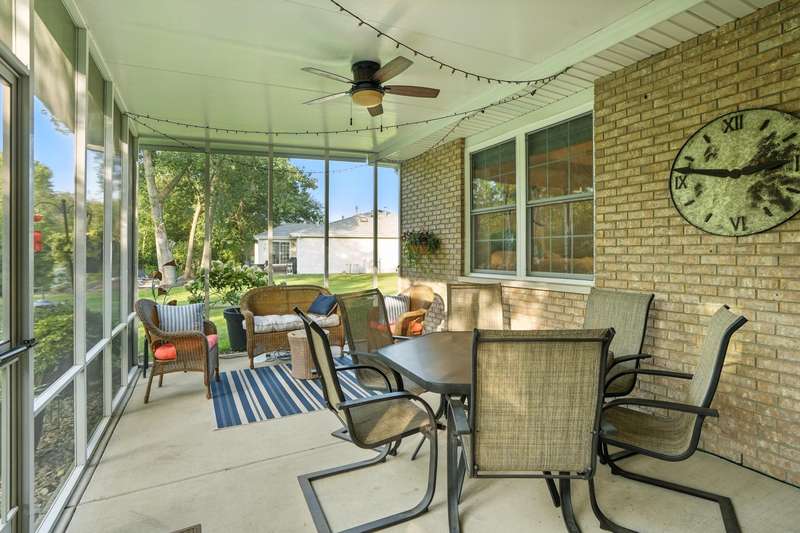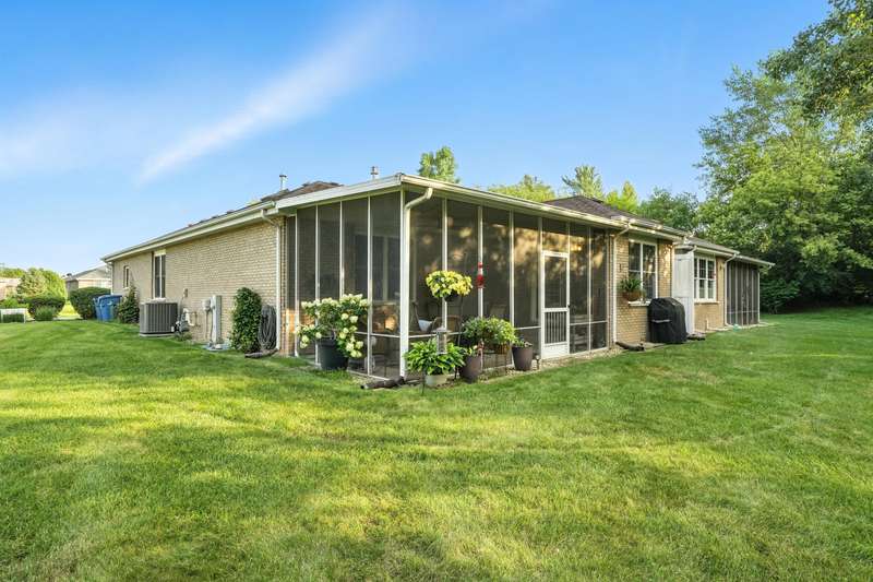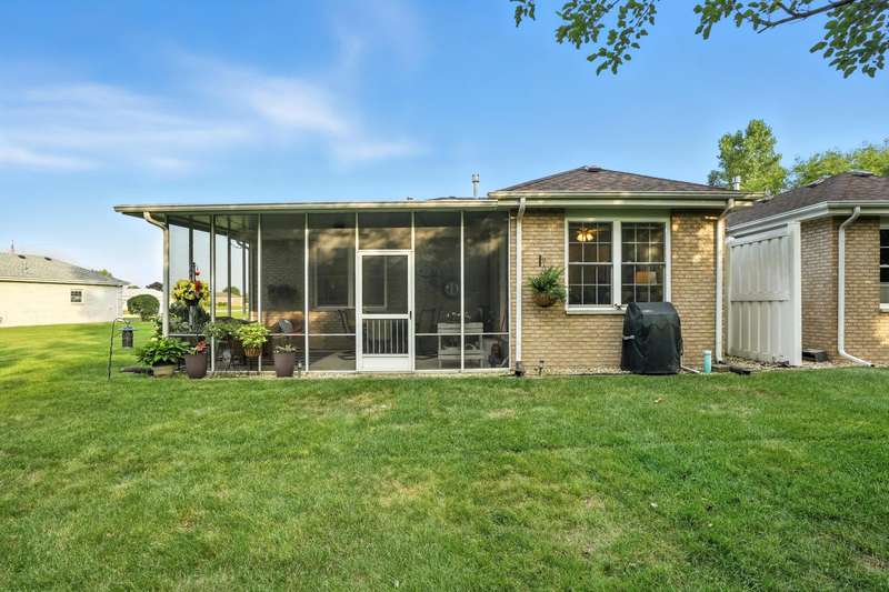 A Beautifully updated 2 Bed/ 2 Bath paired villa with full Unfinished basement on a PRIVATE WOODED Lot located in the White Hawk golfing community. This MOVE-IN READY home is full of charm and comfort, offering low-maintenance living with LOW HOA FEES that covers lawn maintenance & snow removal. The spacious eat-in kitchen features stainless steel appliances and ample cabinets. The open concept living & dining area showcases wood flooring, cathedral ceilings, and a cozy gas fireplace -perfect for quiet nights in. A bright and airy SUNROOM adds a flexible bonus space, ideal for morning coffee. Step into the 20 x 20 screened - in porch that showcases your peaceful backyard. NO rear neighbors! Back inside, the large primary suite includes a WALK-IN CLOSET and Private bath. The guest bedroom and second full bath offer comfort for guests or work-from home flexibility. An unfinished basement offers abundant storage or the potential for added living space. The basement is equipped with a Water Commander, waterpower back up sump pump for peace of mind. Plus, recent updates include a 2.5 yr-old roof, 3-yr old HVAC and A/C, a brand-new dishwasher, a 1-yr old refrigerator plus a 3-yr old garage door & opener. You will find this home is tucked away inside a Well -Maintained Golf Course Community ideally located just minutes from shops, restaurants, commuter routes and the Historic Crown Point Square. Do not let this gem pass you by.
