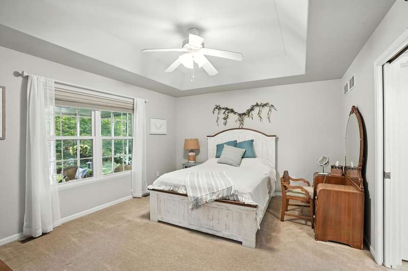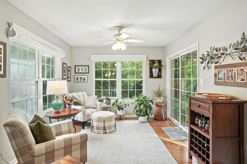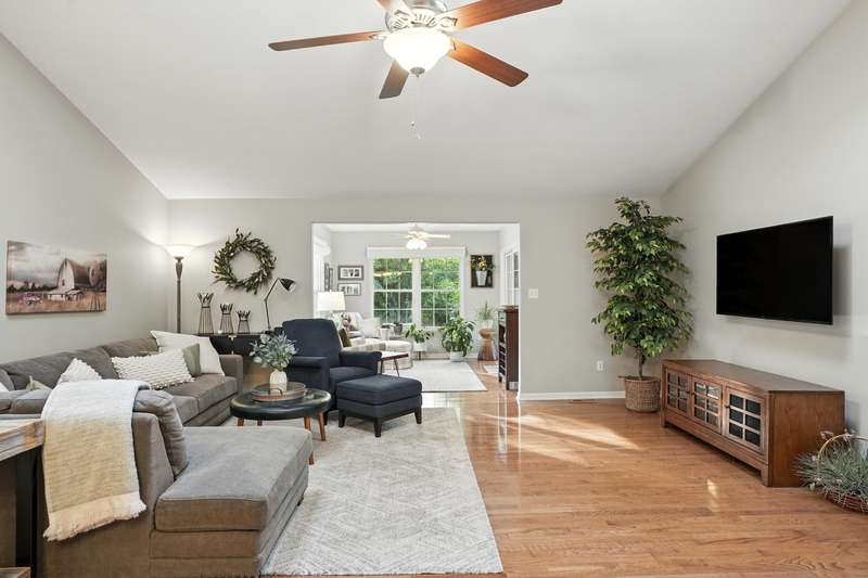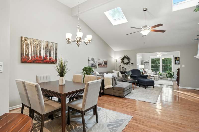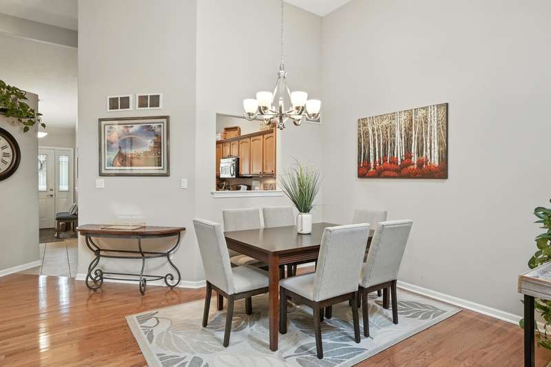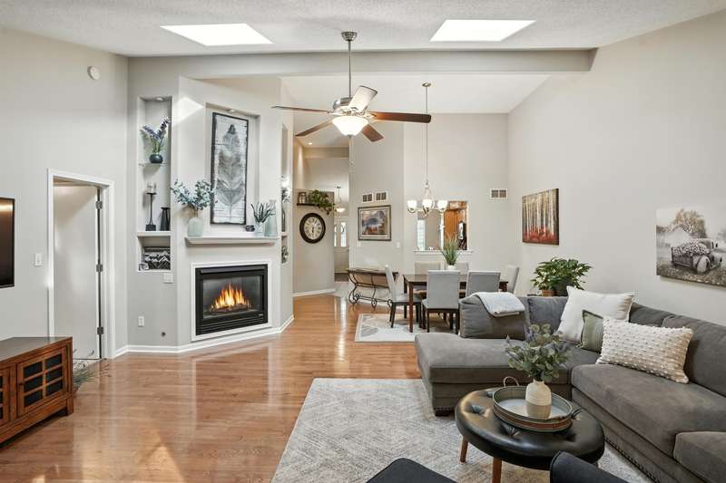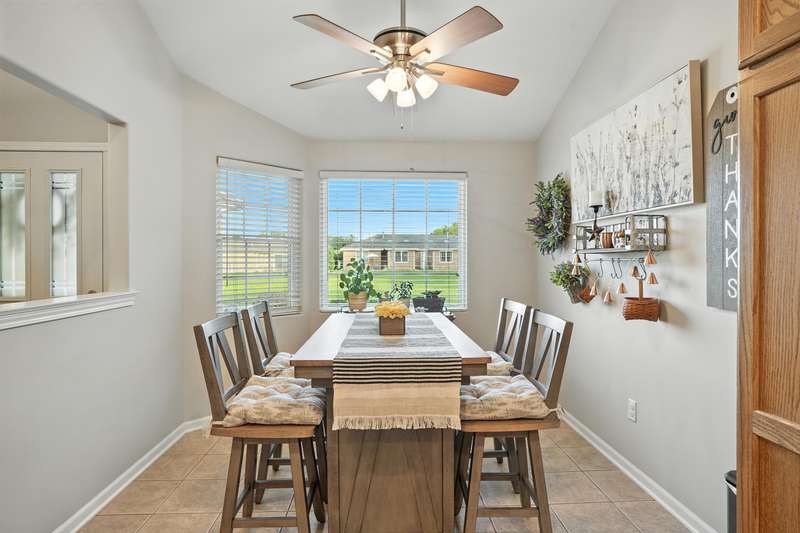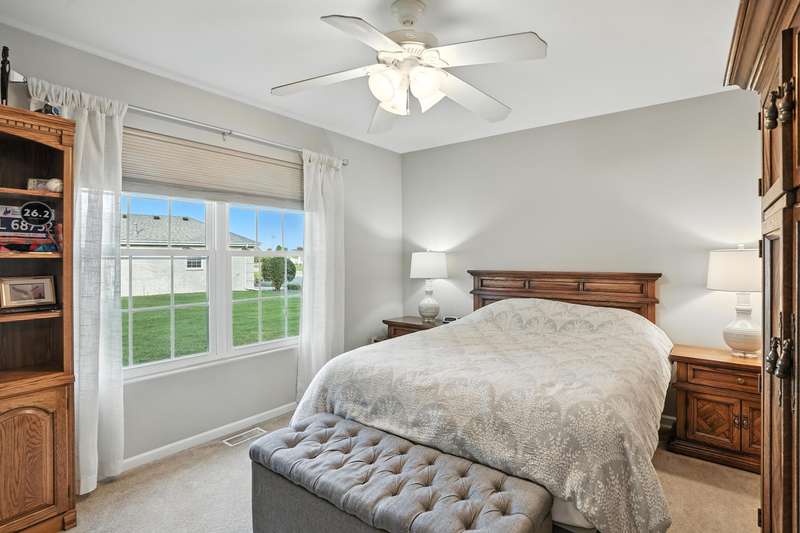 A Beautifully updated 2 Bed/ 2 Bath paired villa with full Unfinished basement on a PRIVATE WOODED Lot located in the White Hawk golfing community. This MOVE-IN READY home is full of charm and comfort, offering low-maintenance living with LOW HOA FEES that covers lawn maintenance & snow removal. The spacious eat-in kitchen features stainless steel appliances and ample cabinets. The open concept living & dining area showcases wood flooring, cathedral ceilings, and a cozy gas fireplace -perfect for quiet nights in. A bright and airy SUNROOM adds a flexible bonus space, ideal for morning coffee. Step into the 20 x 20 screened - in porch that showcases your peaceful backyard. NO rear neighbors! Back inside, the large primary suite includes a WALK-IN CLOSET and Private bath. The guest bedroom and second full bath offer comfort for guests or work-from home flexibility. An unfinished basement offers abundant storage or the potential for added living space. The basement is equipped with a Water Commander, waterpower back up sump pump for peace of mind. Plus, recent updates include a 2.5 yr-old roof, 3-yr old HVAC and A/C, a brand-new dishwasher, a 1-yr old refrigerator plus a 3-yr old garage door & opener. You will find this home is tucked away inside a Well -Maintained Golf Course Community ideally located just minutes from shops, restaurants, commuter routes and the Historic Crown Point Square. Do not let this gem pass you by.