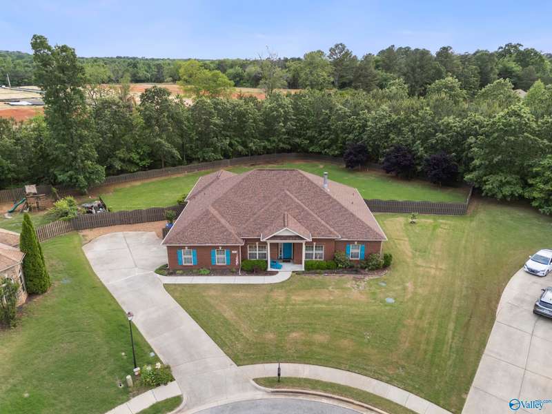 Move in ready! Beautiful and spacious 4 bedrooms, 4 bath home tucked into a cul-de-sac. Gather in the spacious, fireplaced family room. The large kitchen features double ovens, granite counters, breakfast nook, abundant cabinets, and pantry. Entertain in a formal dining room and enjoy a living/flex room. Private owner’s suite has luxury bath and dual closets. Second bedroom is en-suite and two large bedrooms share Jack-and Jill bath. Private, tree-lined, and fenced yard has sprinkler system ideal for relaxing, gardening, and play space. Swim at the community pool with clubhouse. Just 20 minutes to Redstone Arsenal. 5% Owner financing available for qualified buyers.